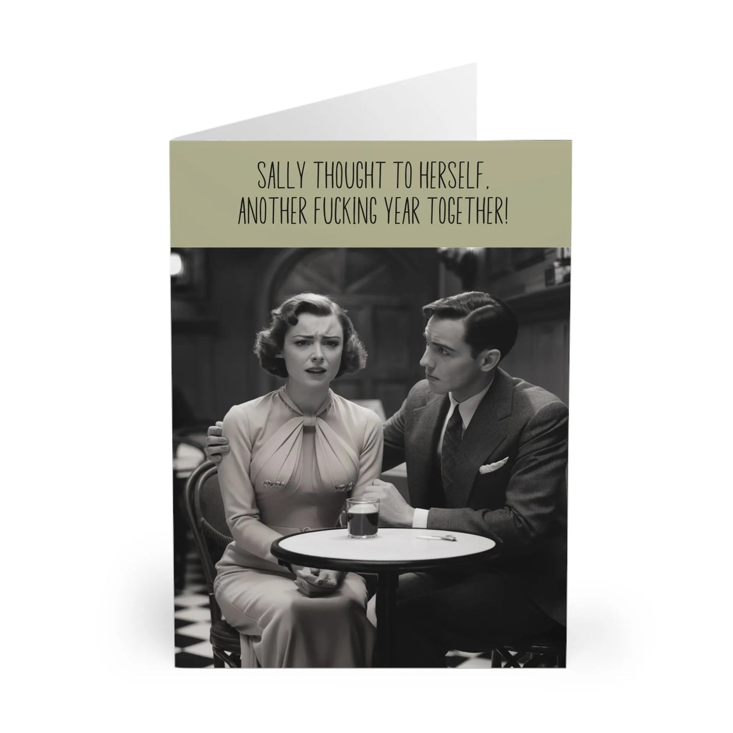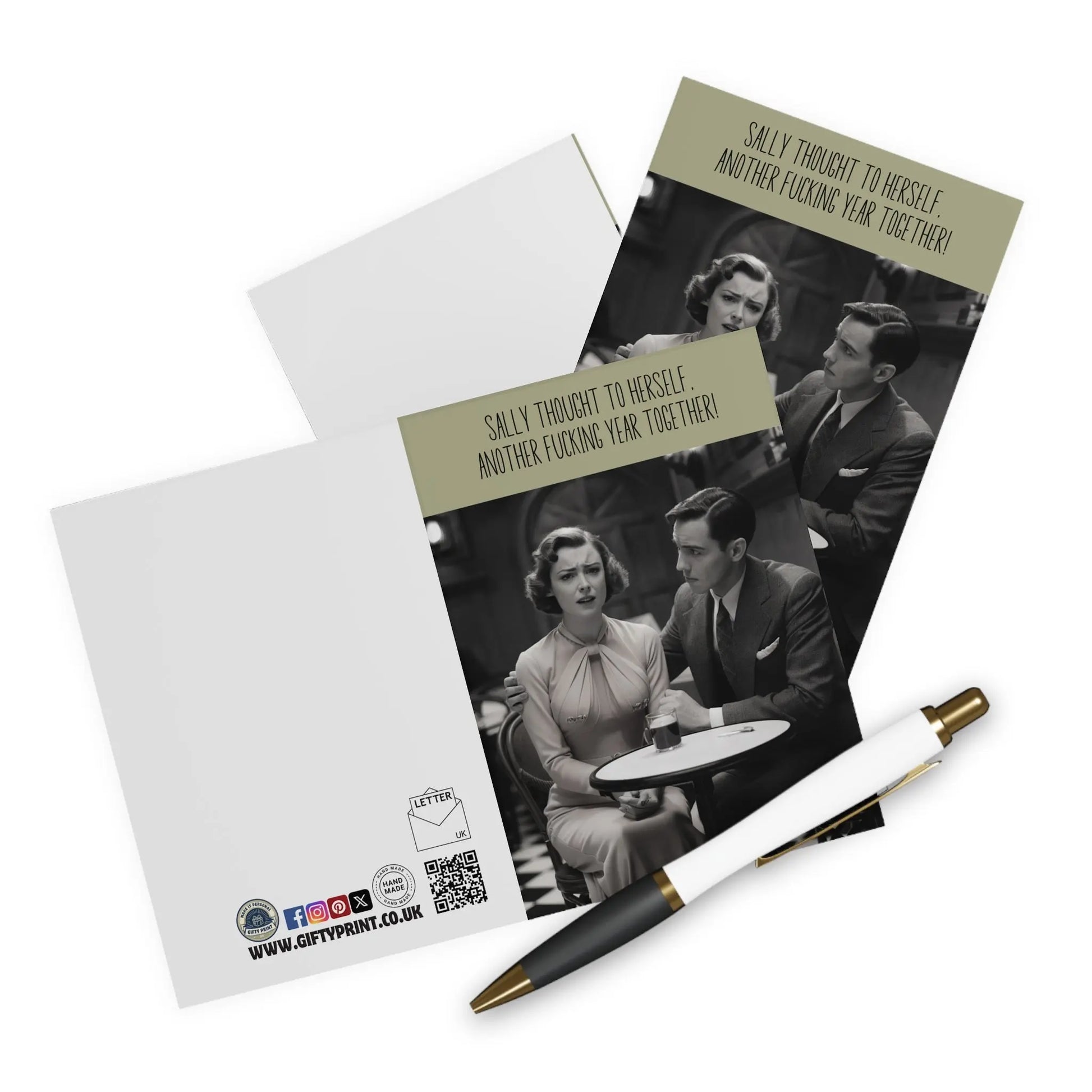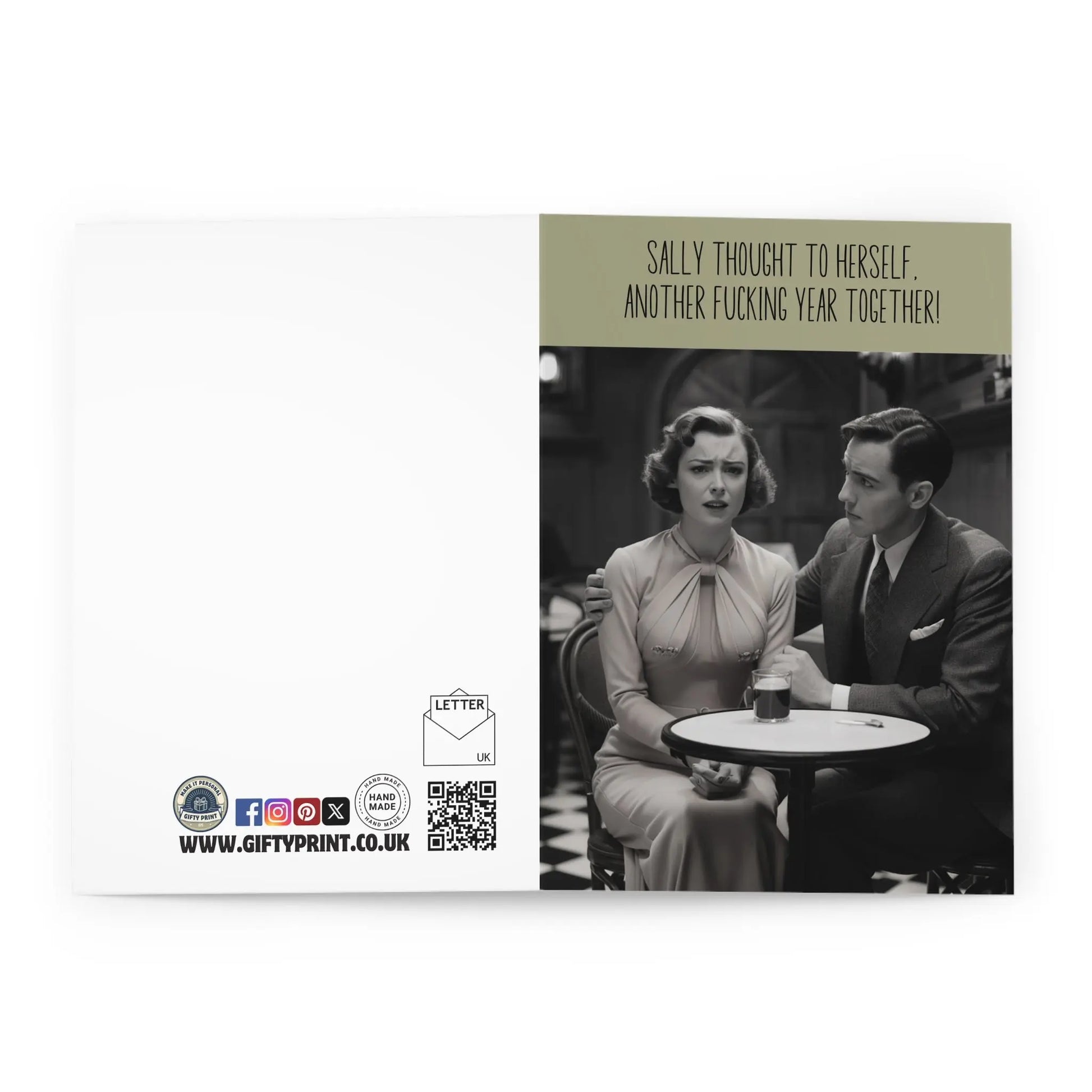 Funny Anniversary Card, Celebrate another year of love with our Personalised She Thought Another Fucking Year Together! This quirky and fun card features customisable options for a unique touch, making it the perfect present for a significant other or friend. Show them that love can still be playful and humorous with this one-of-a-kind Card.