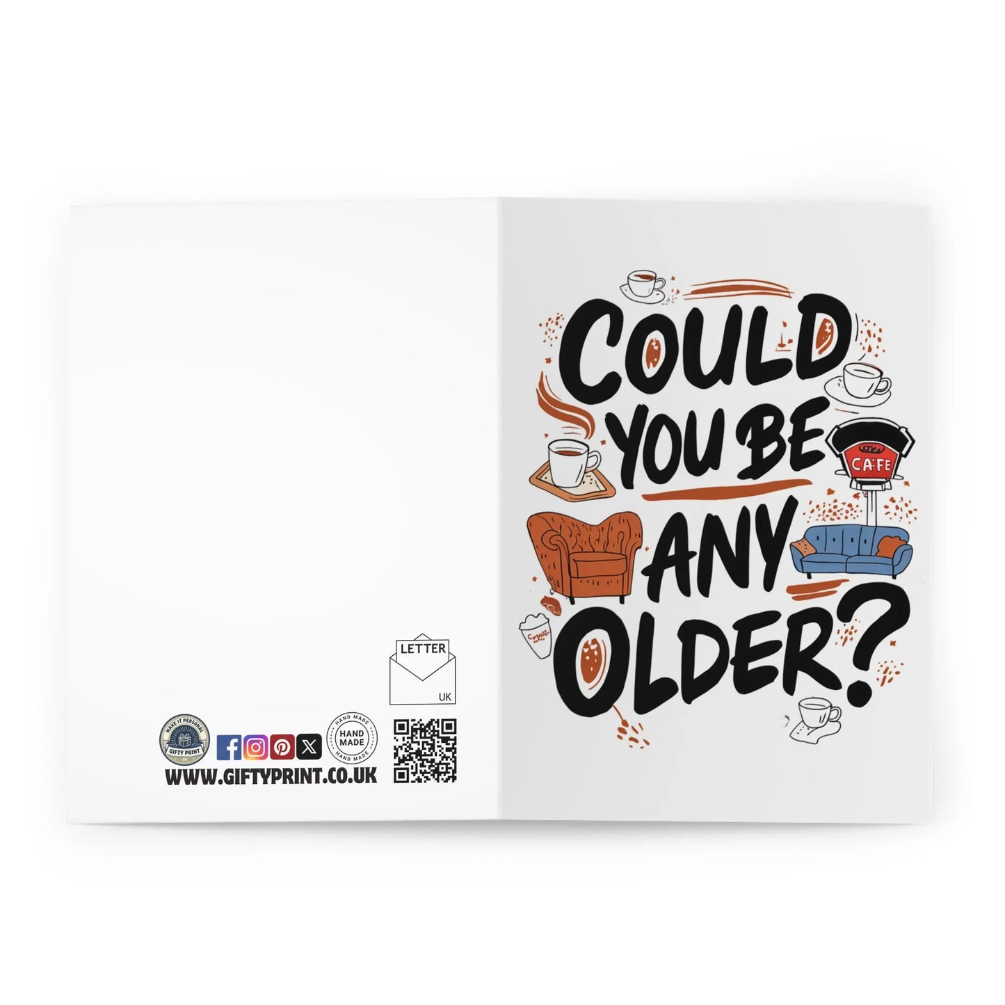 Funny Birthday Card This birthday card playfully pokes fun at getting older with the iconic phrase "Could You Be Any Older?" The perfect card for the most playful and humorous of birthday celebrations.