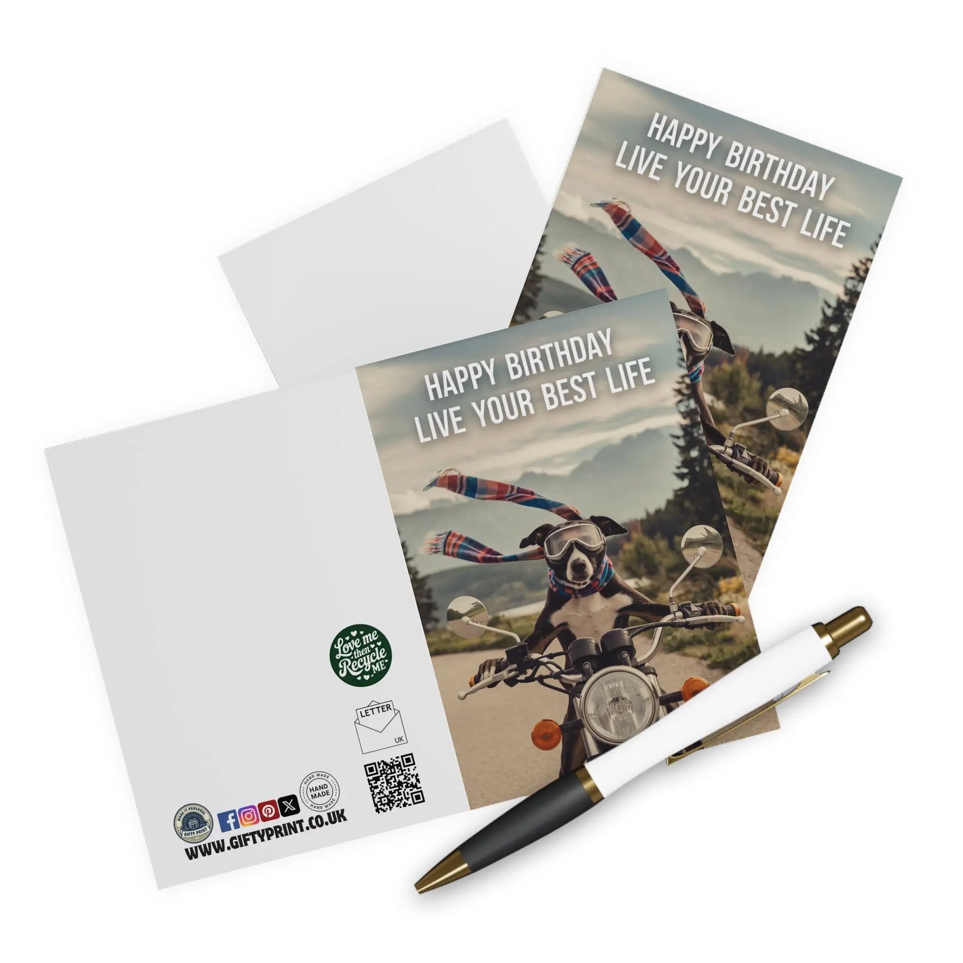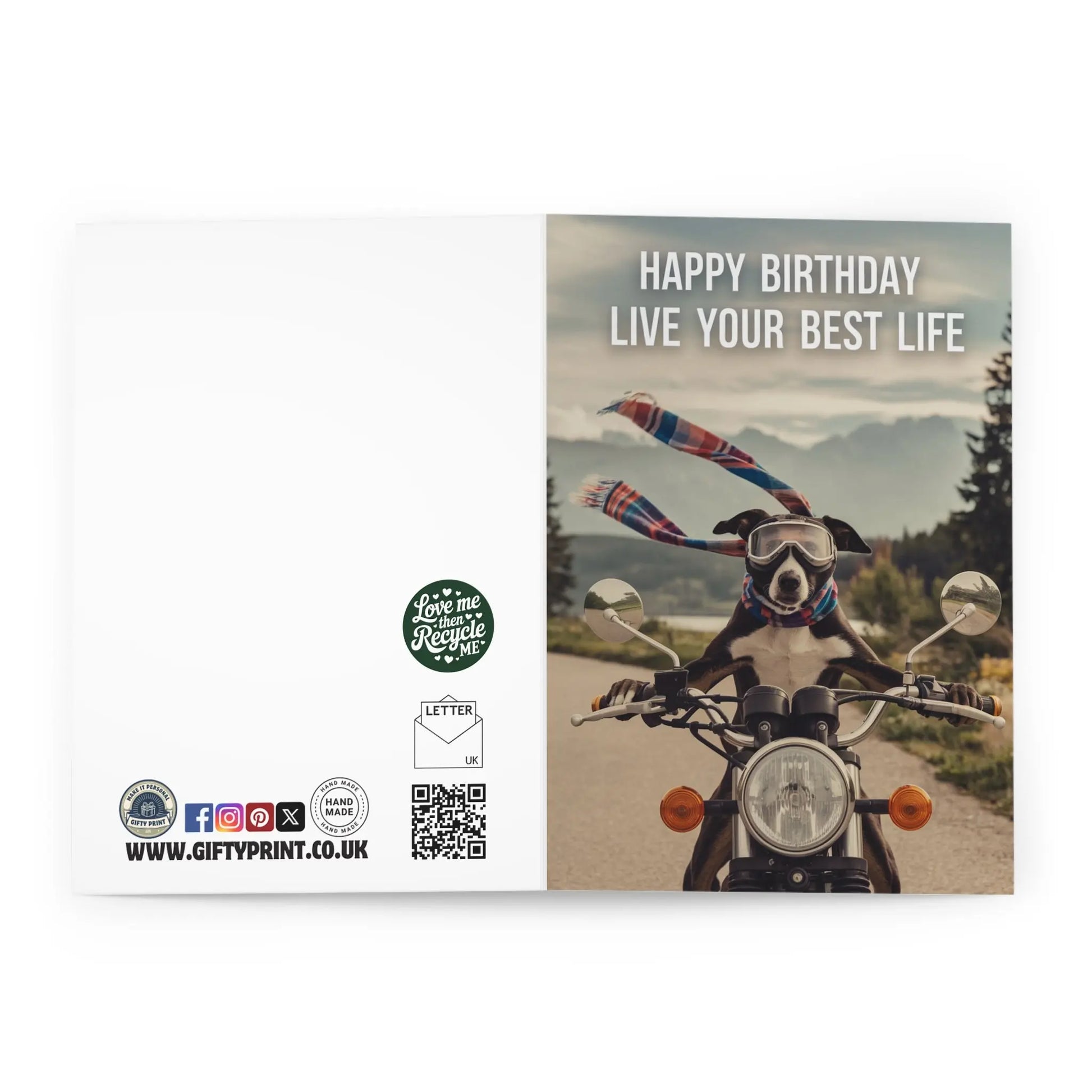 details of Funny Birthday Card Dog Live Your Best Life Motorbike