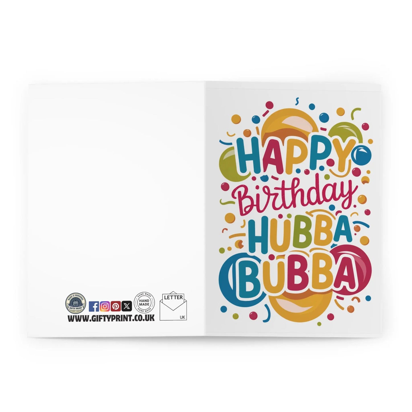 Funny Birthday Card, Celebrate your favorite Hubb Bubba's special day with this playful and quirky birthday card! With a humorous tone and word play, it's sure to bring a smile (or a laugh) to their face. Don't miss the chance to make their birthday even more special with this Happy Birthday Hubb Bubba card!