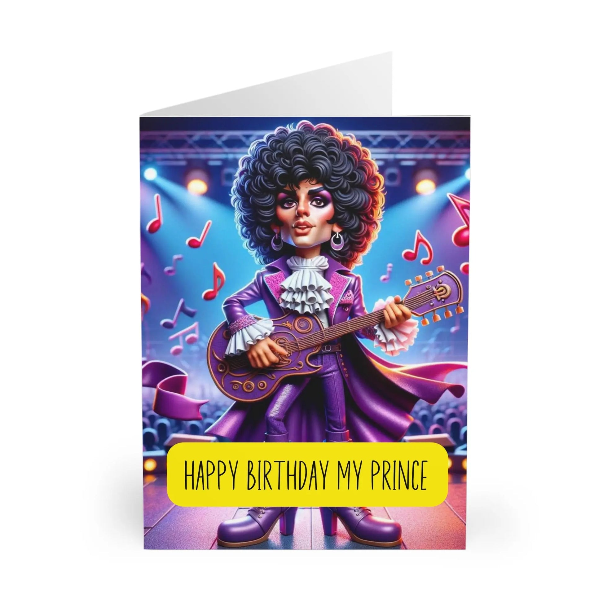 Funny Birthday Card, Send Music royalty birthday wishes with this hilarious prince-themed card. Featuring a playful tone and funny word play, this card is sure to make the birthday person feel like a true prince on their special day. Don't settle for a boring card - make them laugh with this quirky and fun option!