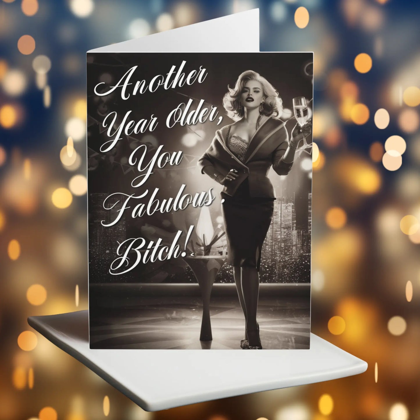Funny Birthday Card. Celebrate your fabulous bitch with this birthday card! A playful and humorous way to show your love and appreciation on their special day. Don't be afraid to add a little sass and attitude with this quirky card. Go ahead, make them smile!