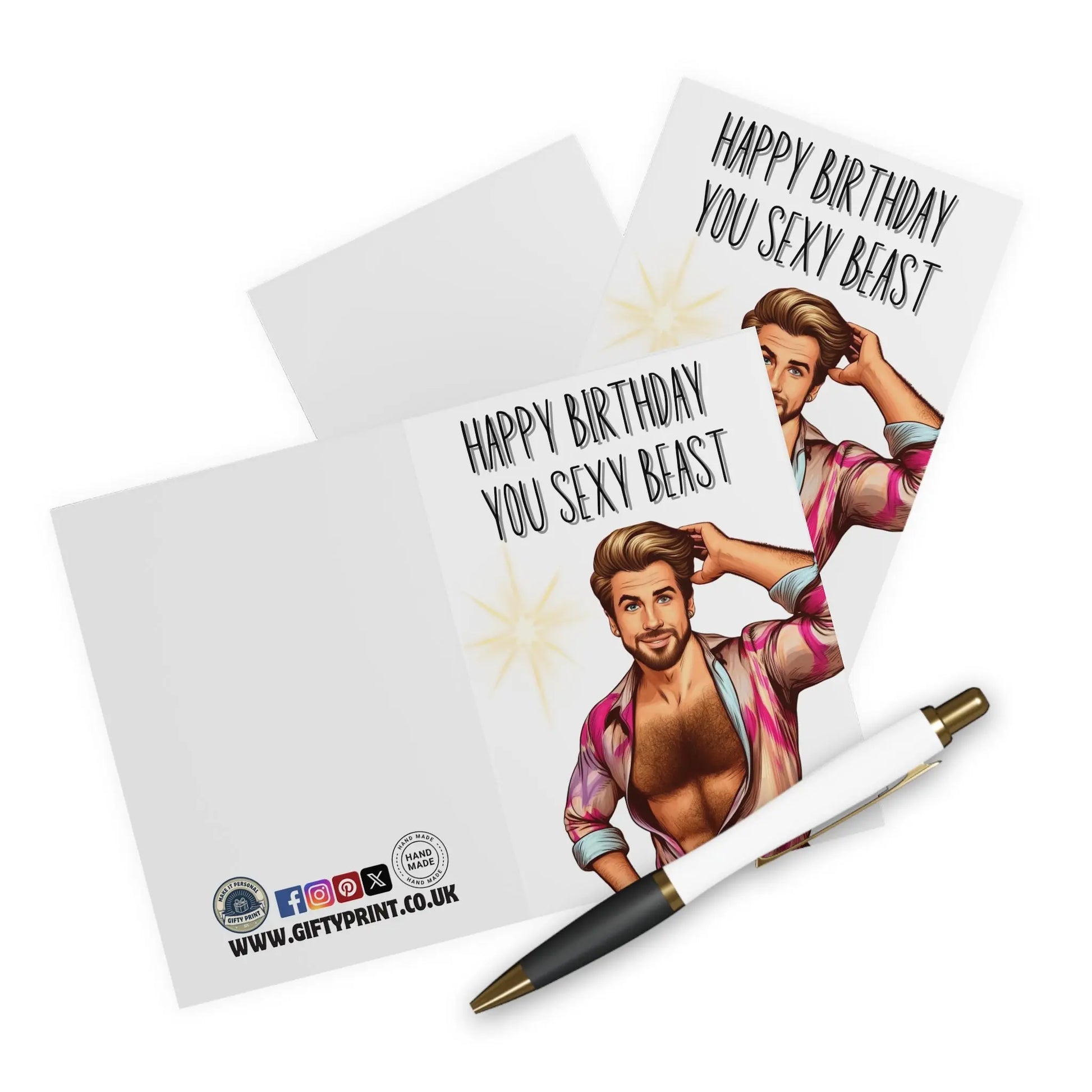 Funny Birthday Card, Get ready to make their day with our Happy Birthday You Sexy Beast Birthday Card! Perfect for that special someone who is both fierce and fabulous. Give the gift of laughter and love with this quirky and fun card. Suitable for any birthday celebration.