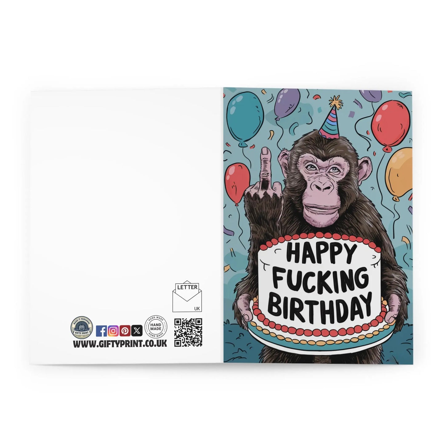 Funny Birthday Card, Celebrate their birthday with a bang with our Rude Birthday Card! Featuring a swearing monkey, this card is perfect for those who don't take themselves too seriously. Send some playful, quirky, and humorous wishes their way with this card. (Warning: may cause laughter and inappropriate words.)