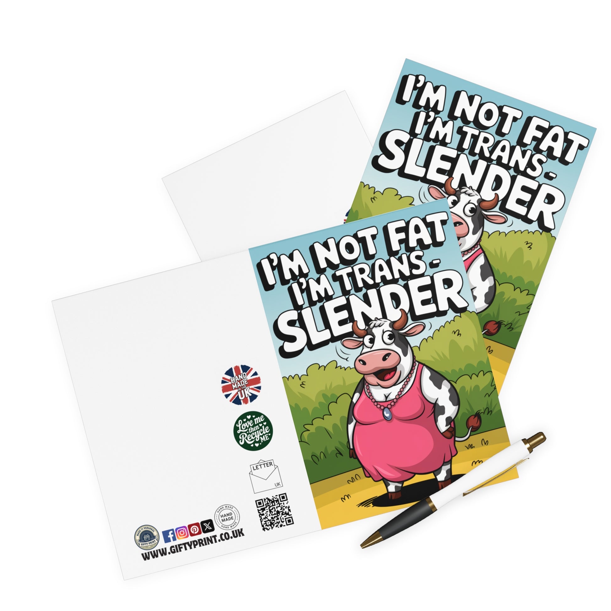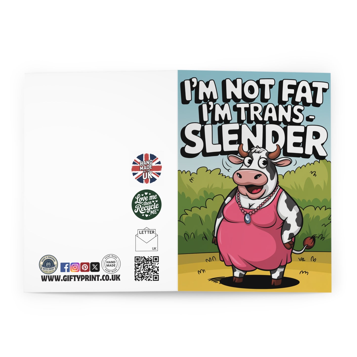 Funny Birthday Card, Celebrate with humour! This Funny Birthday Card features a playful cow and the message "I'm Not Fat, I'm Trans-Slender". Perfect for those who appreciate a good laugh and a healthy perspective. Don't settle for boring, this card is sure to make their day!