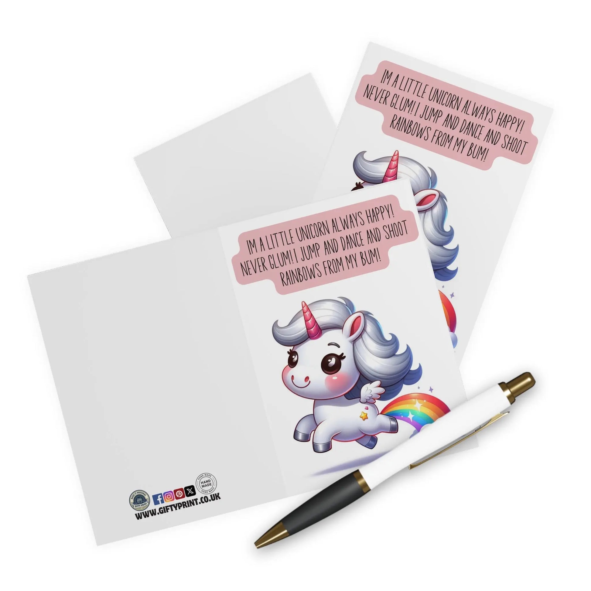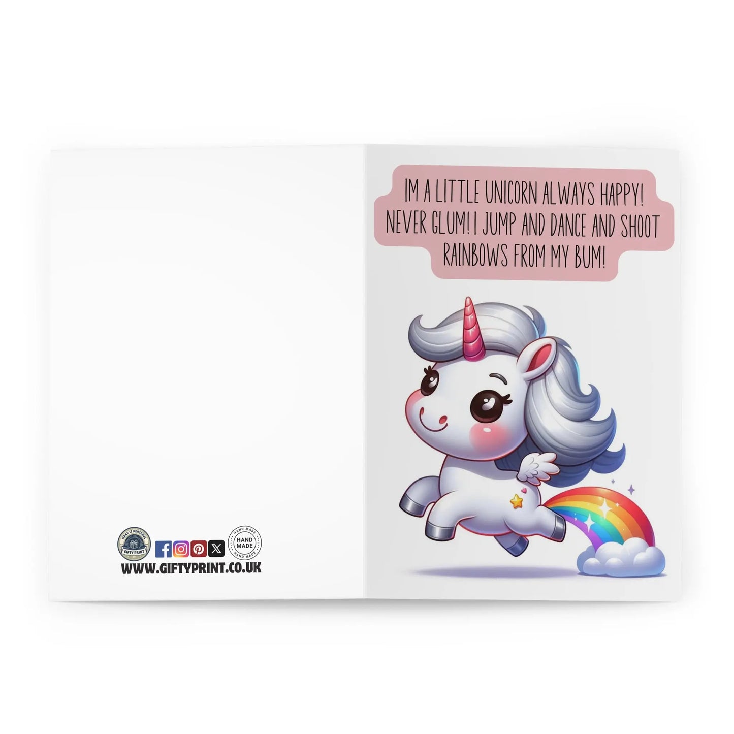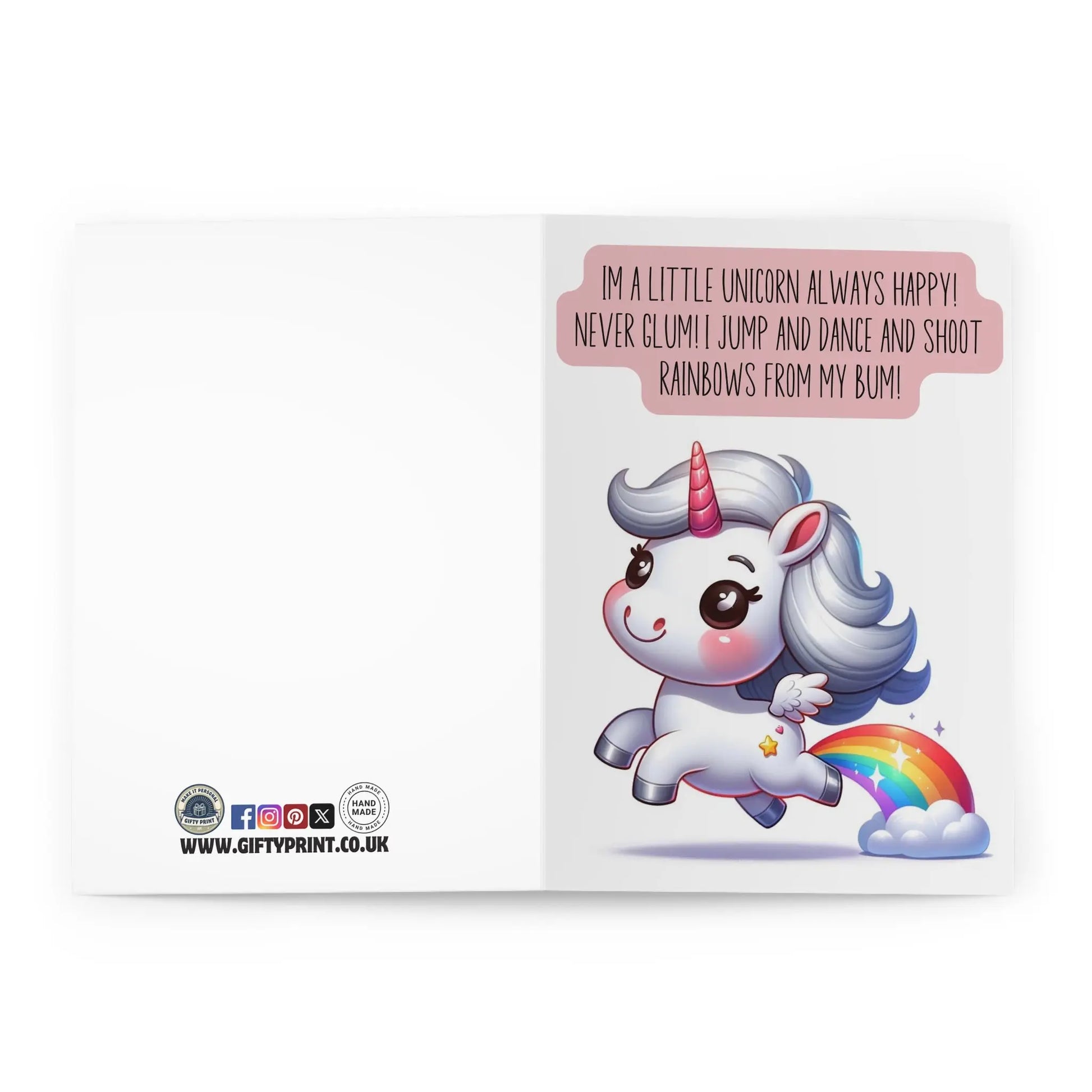 Funny Birthday Card, Unleash the magic of laughter with our Birthday Cards Funny Little Unicorn Rhyme! This adorable card features a quirky rhyme and playful artwork, perfect for bringing a smile to anyone's special day. Spread joy and celebrate in style with this unique and humorous card. (Happiness and laughter guaranteed!)