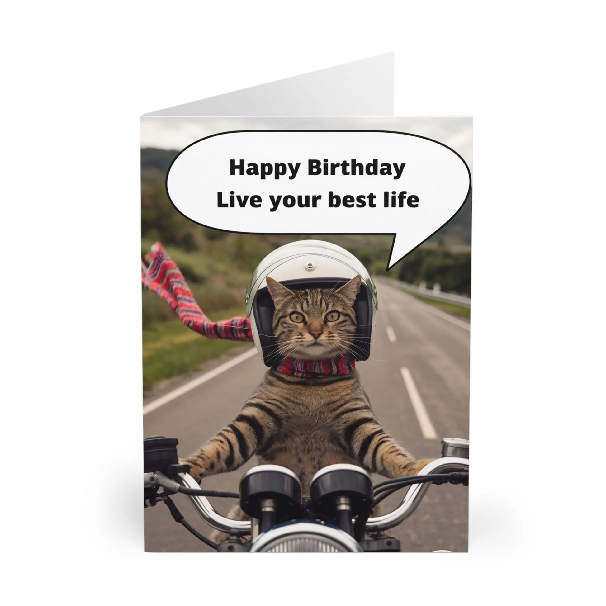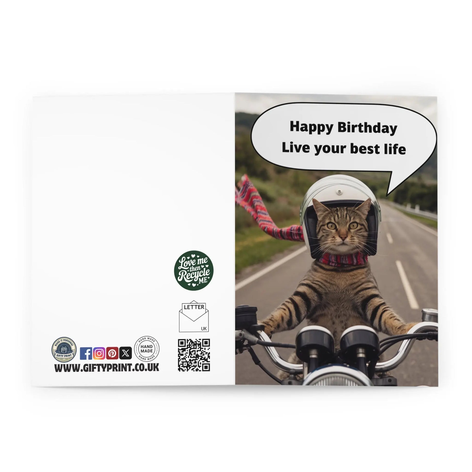 Live your best nine lives with this hilarious cat-themed birthday card. Featuring a funny feline and a playful message, it's the purr-fect way to celebrate someone's special day. Don't be afraid to be a little catty - send this card and make them laugh!