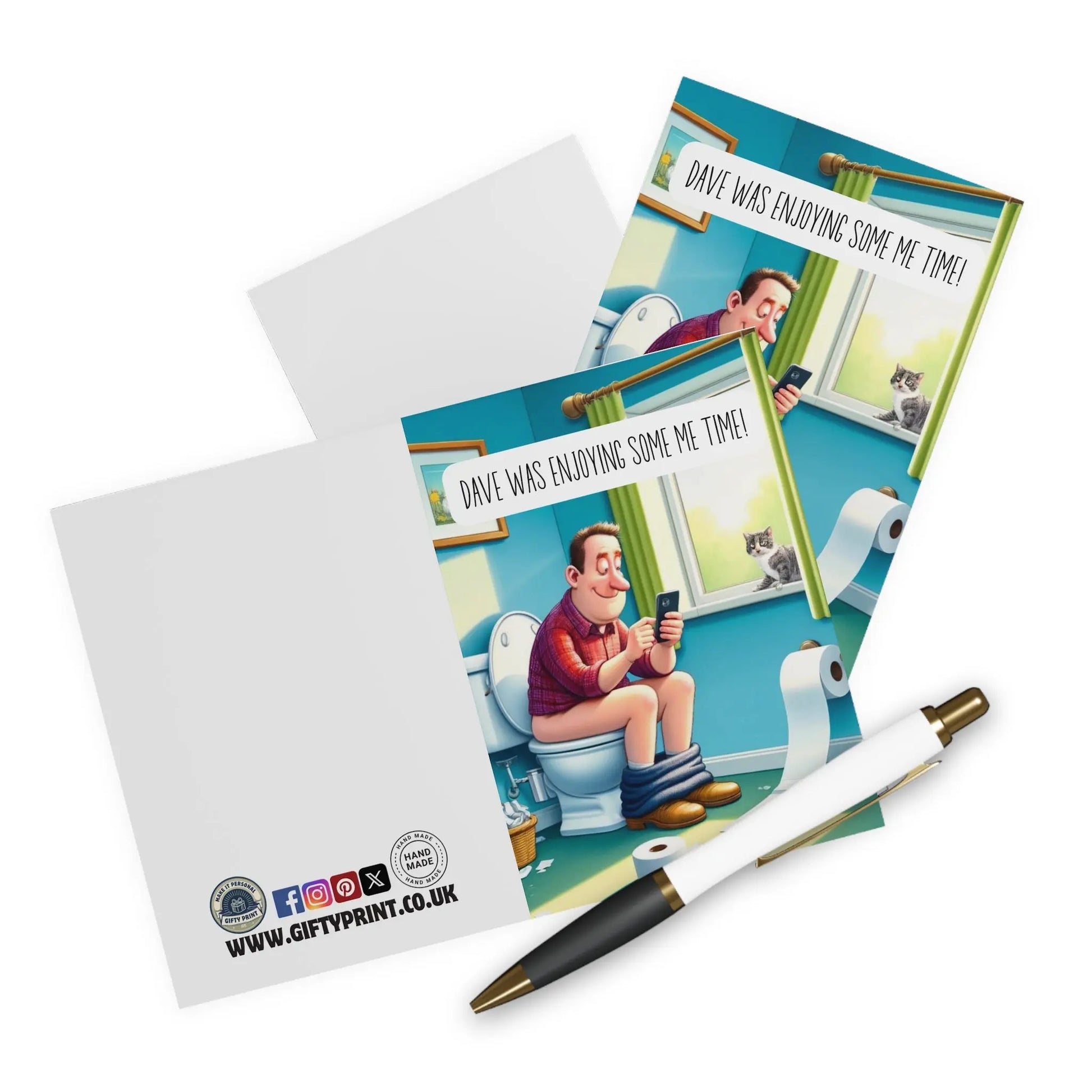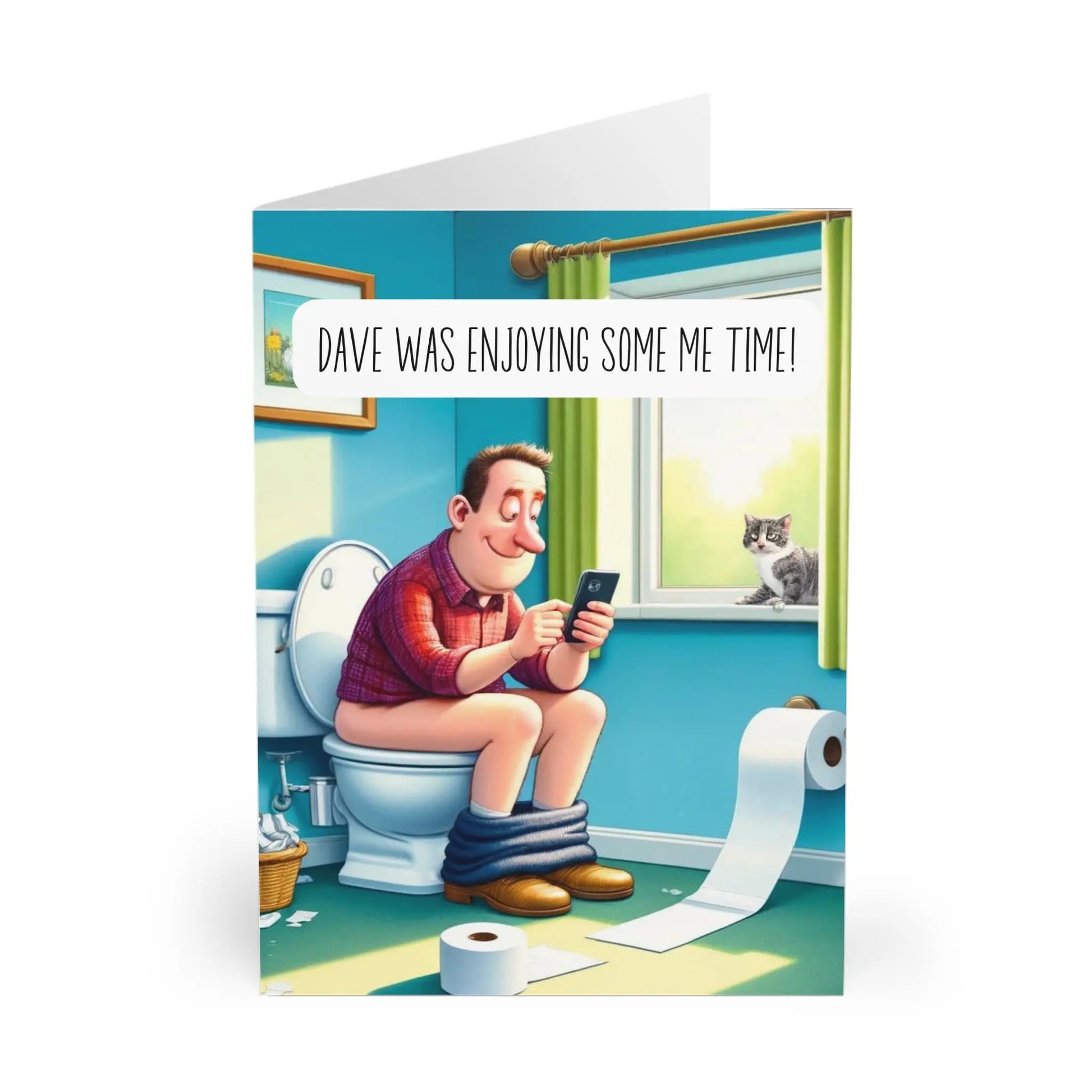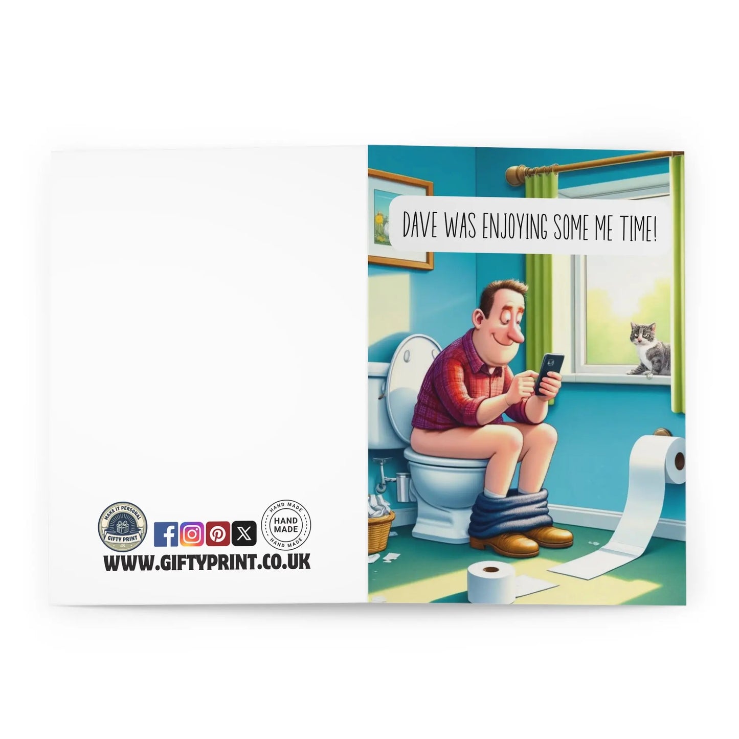 Funny Birthday Card, Surprise your friend with this hilarious personalised birthday card featuring a man on the toilet with his phone. Perfect for the tech-savvy, bathroom-loving birthday boy. (Potty humour never gets old!) Customise your own name for an even more personal touch.