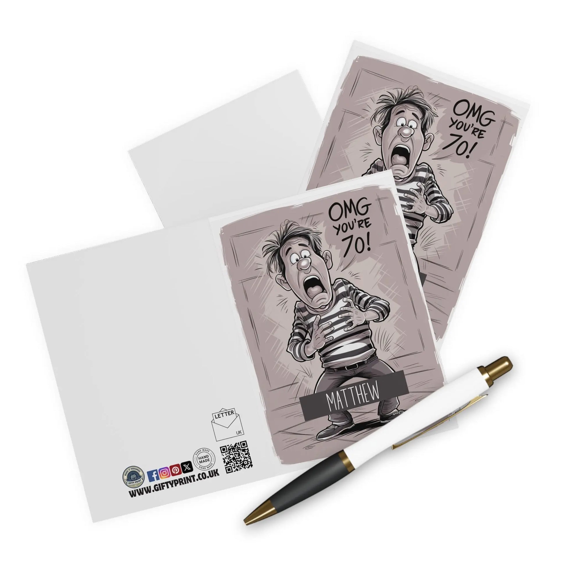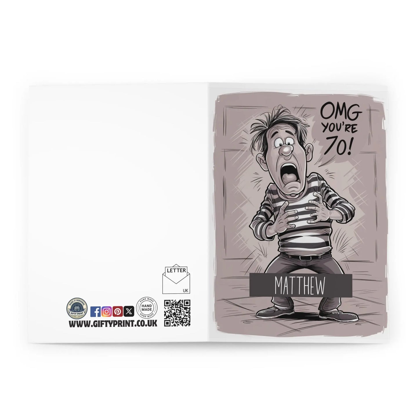 Funny Birthday Card Personalised OMG You're 70 Shocked Man