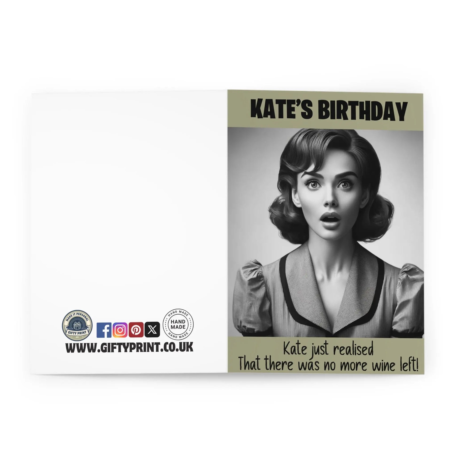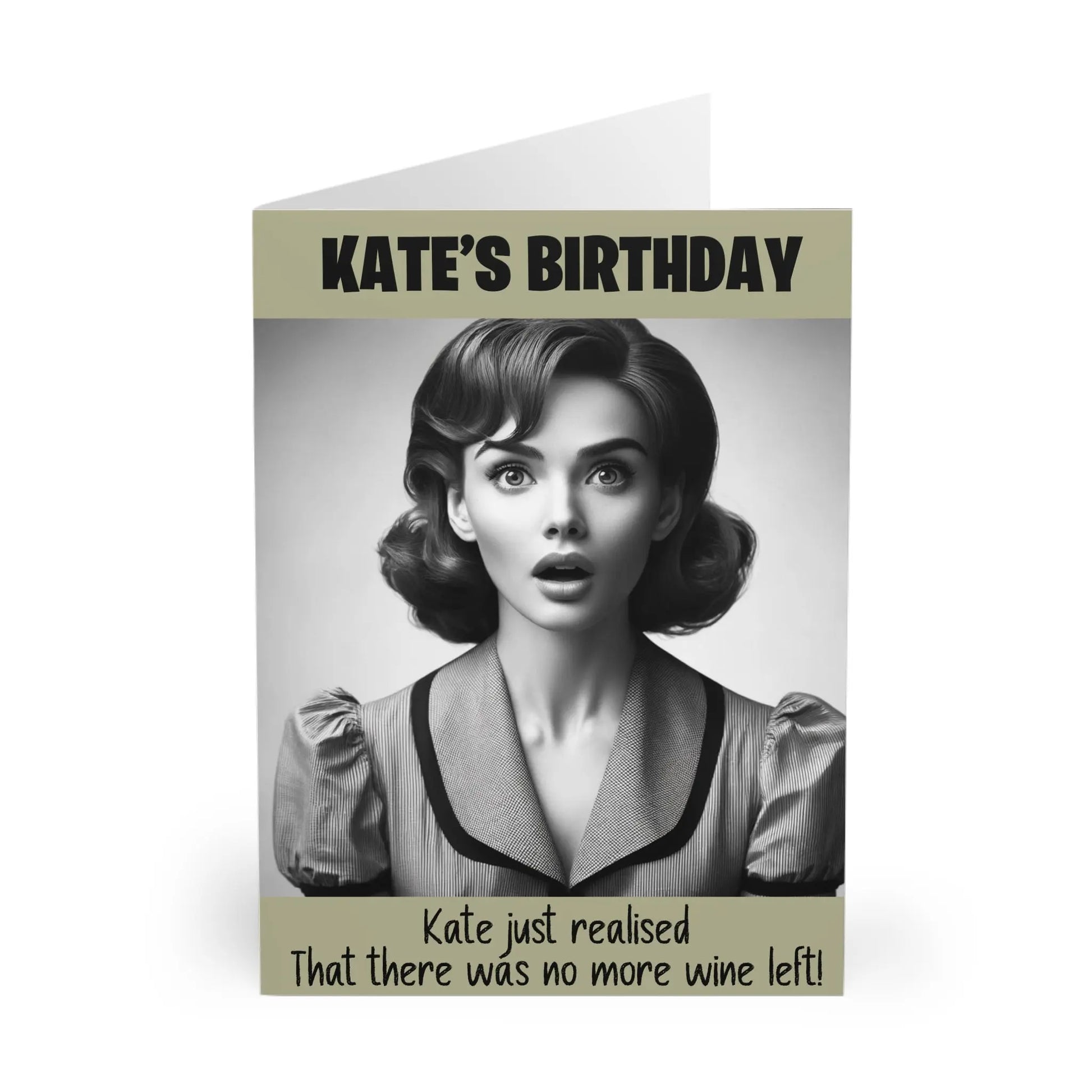 Funny Birthday Card Personalised She Realised That There Was Wine