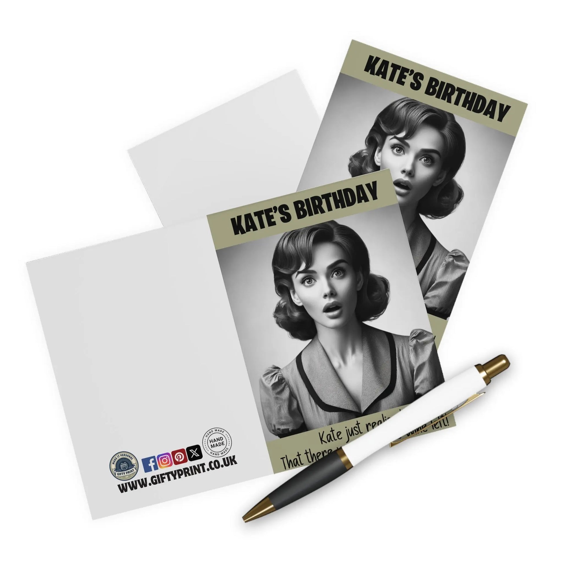 Funny Birthday Card Celebrate with a personalised touch! This unique birthday card features a fun and quirky design with a humorous pun. Show someone you care with a card that's as one-of-a-kind as they are. (Wine not included!) Cheers to another year!