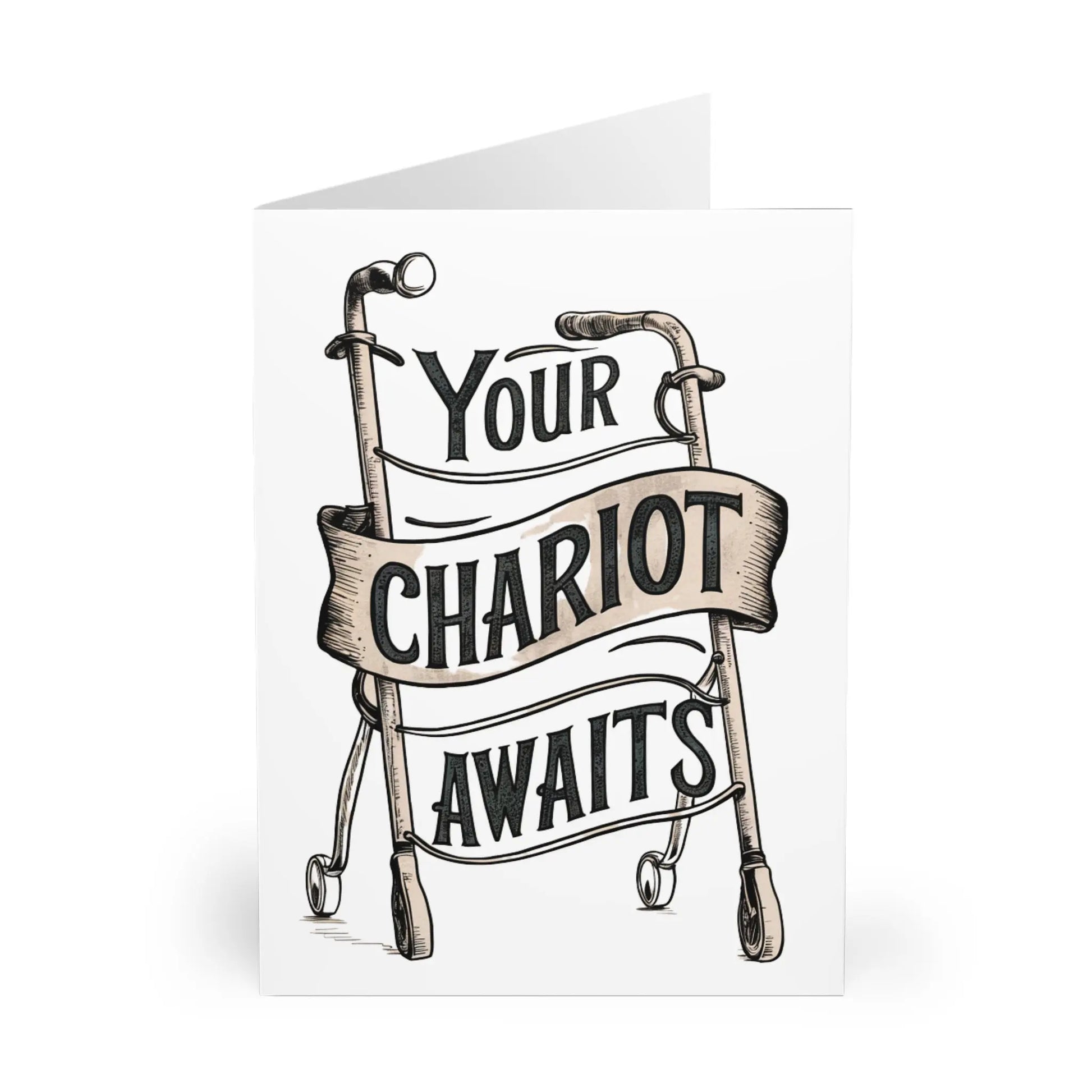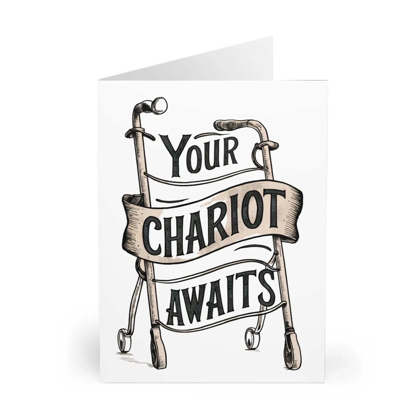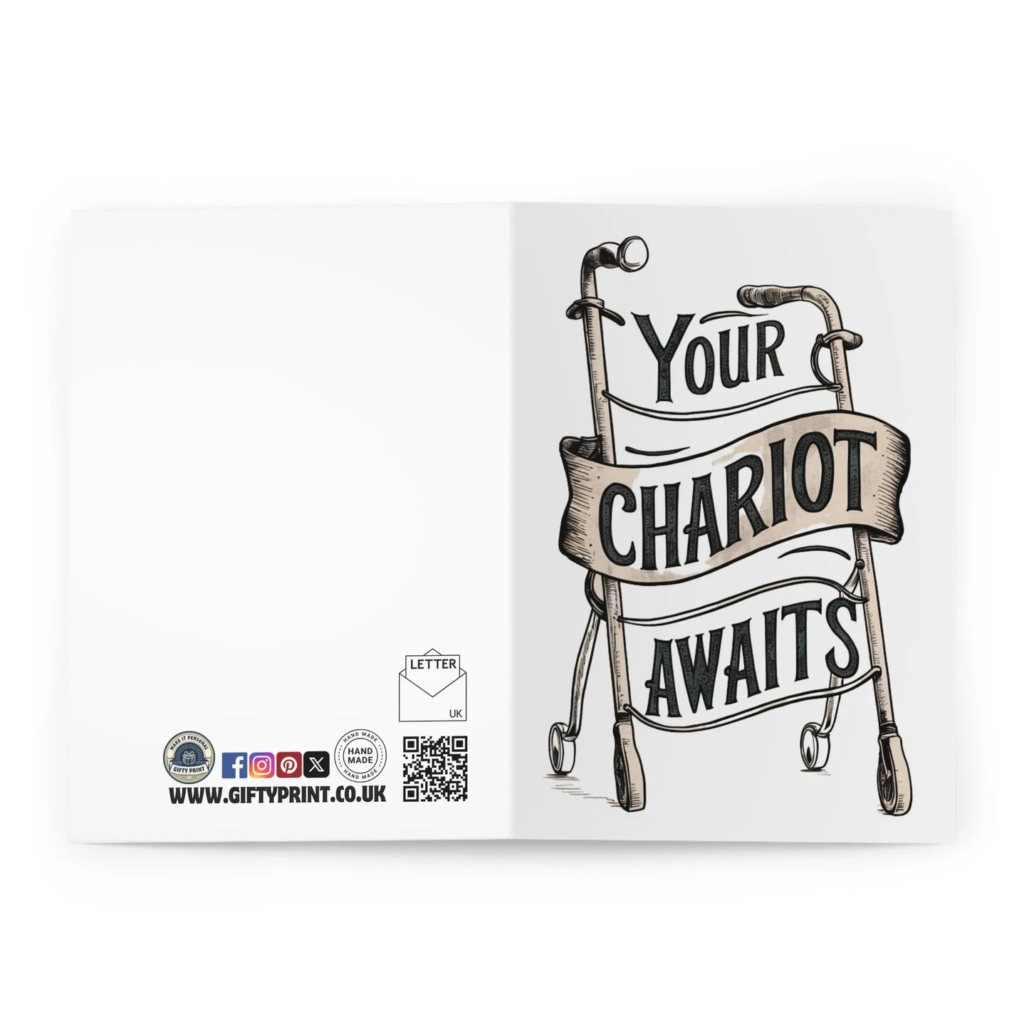 Funny Birthday Card Your Chariot Awaits Walking Frame
