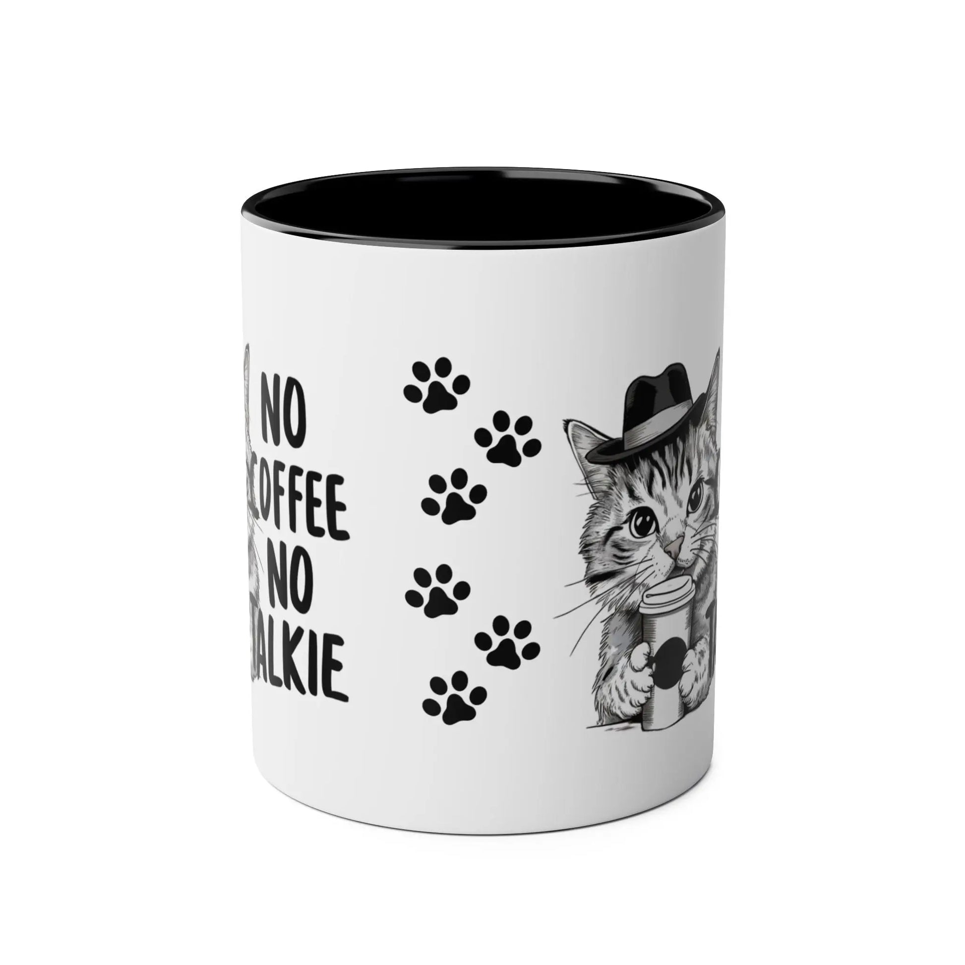 Funny Cat Mug, Add some humour to your morning routine with our Funny Cat No Coffee No Talkie Black Mug! This mug features a quirky cat design with the phrase "No Coffee No Talkie", perfect for any cat lover or coffee enthusiast. Stay caffeinated and sassy with this fun and unique mug!