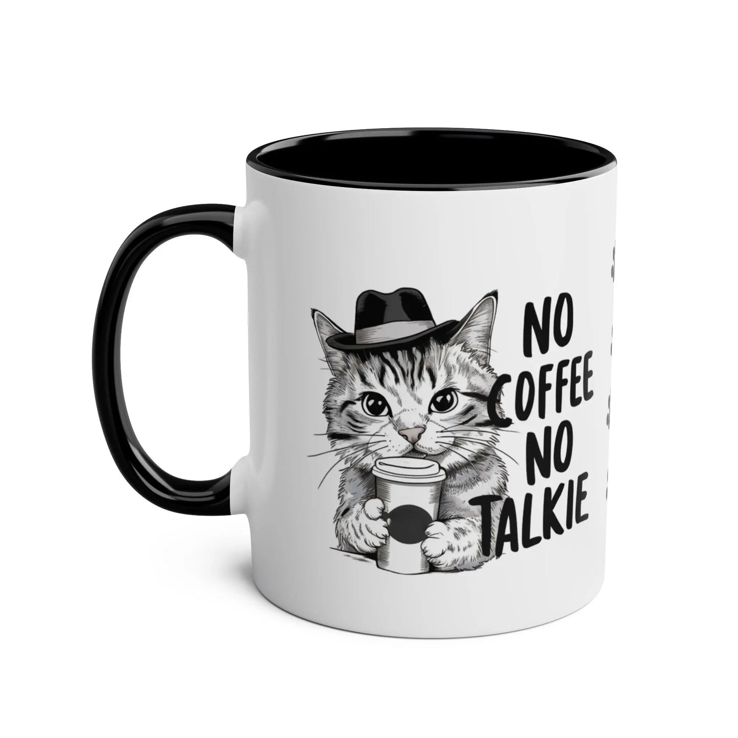 Funny Cat Mug No Coffee No Talkie Black Mug