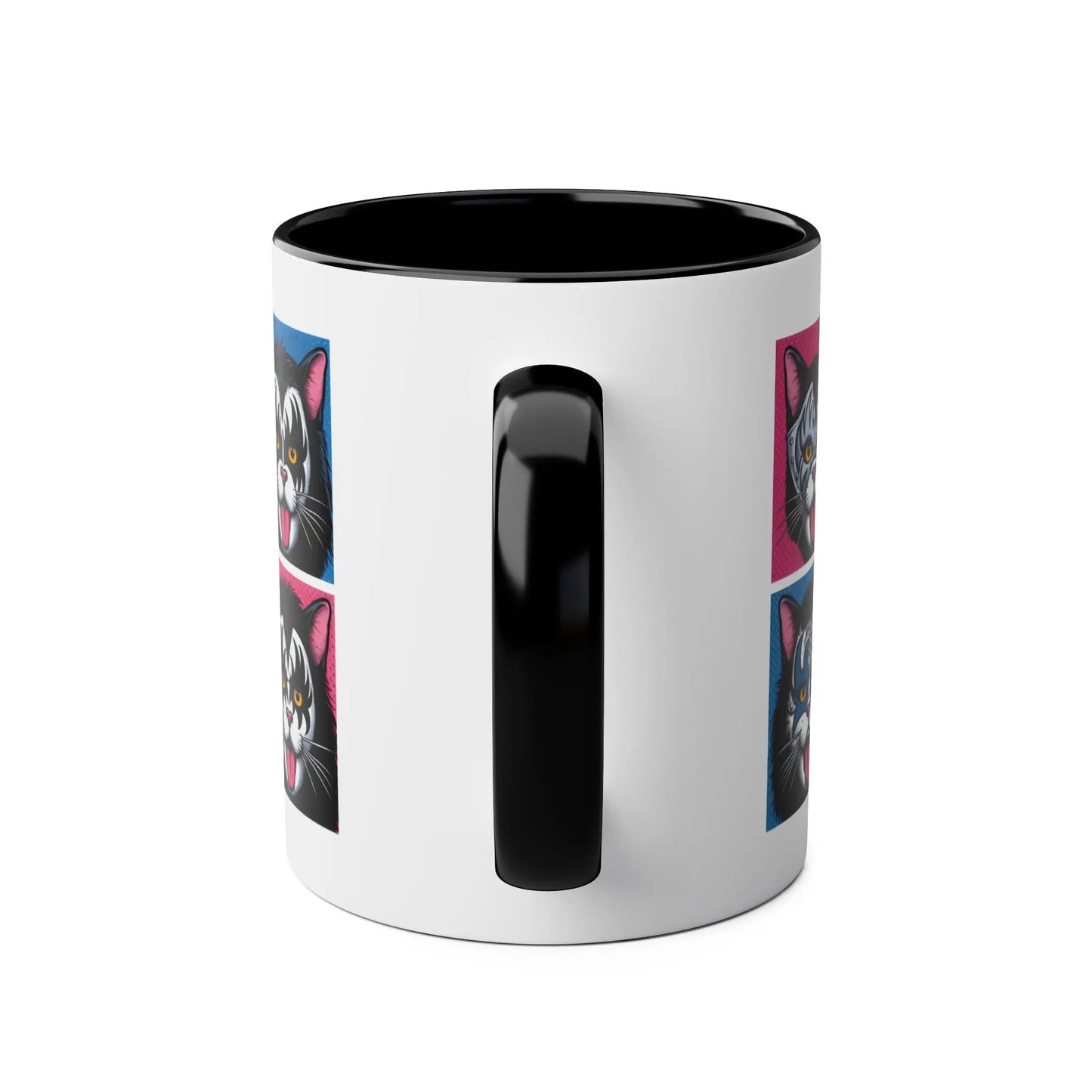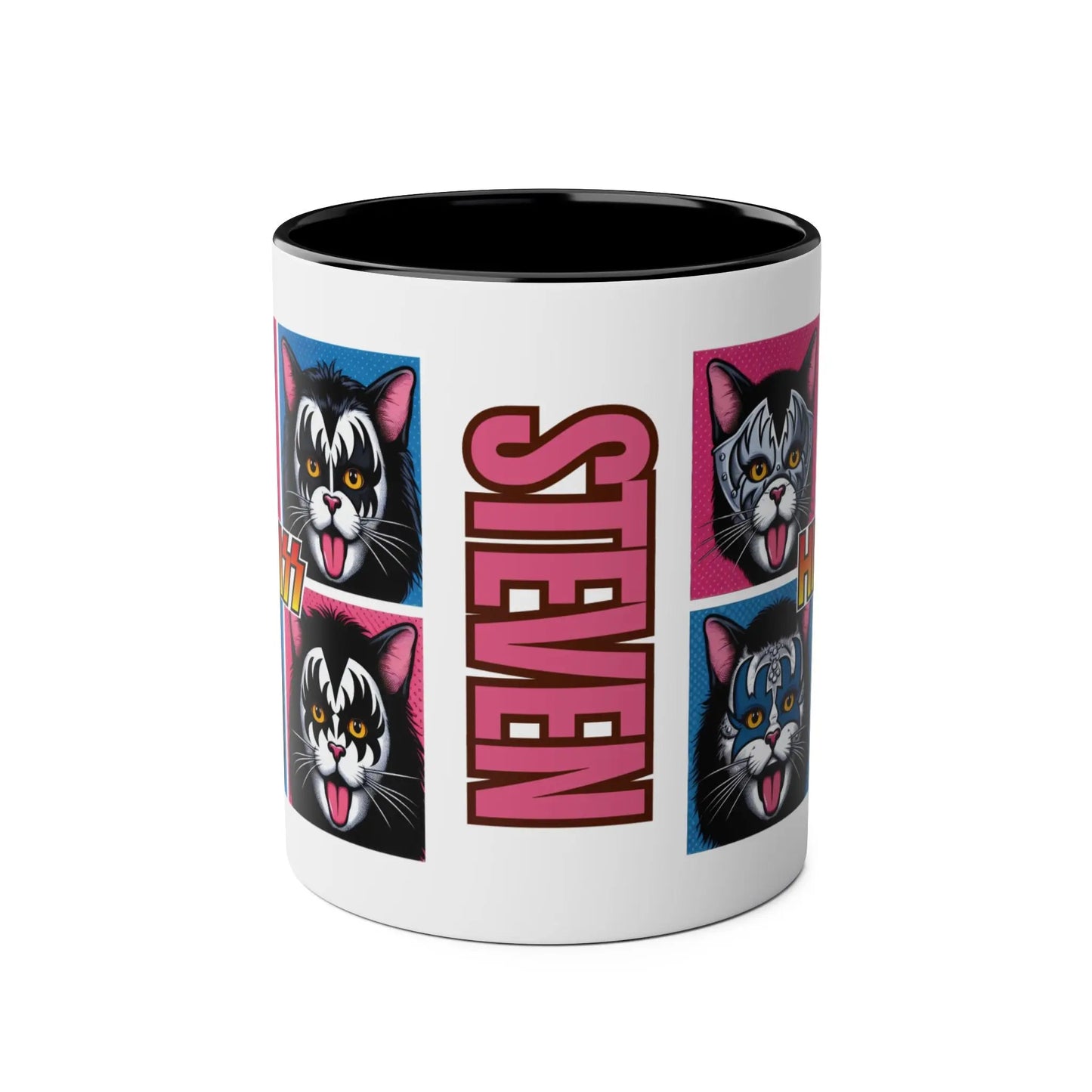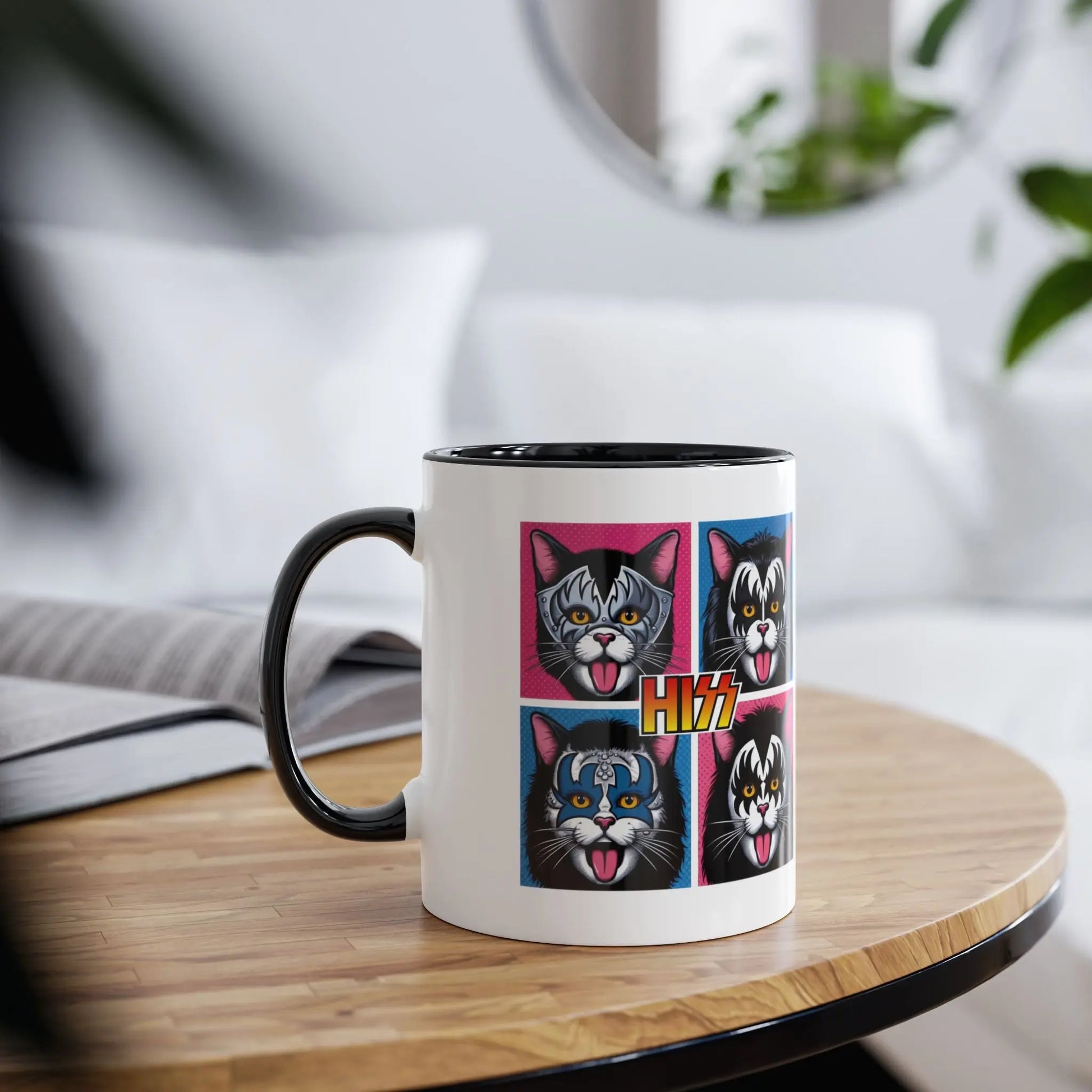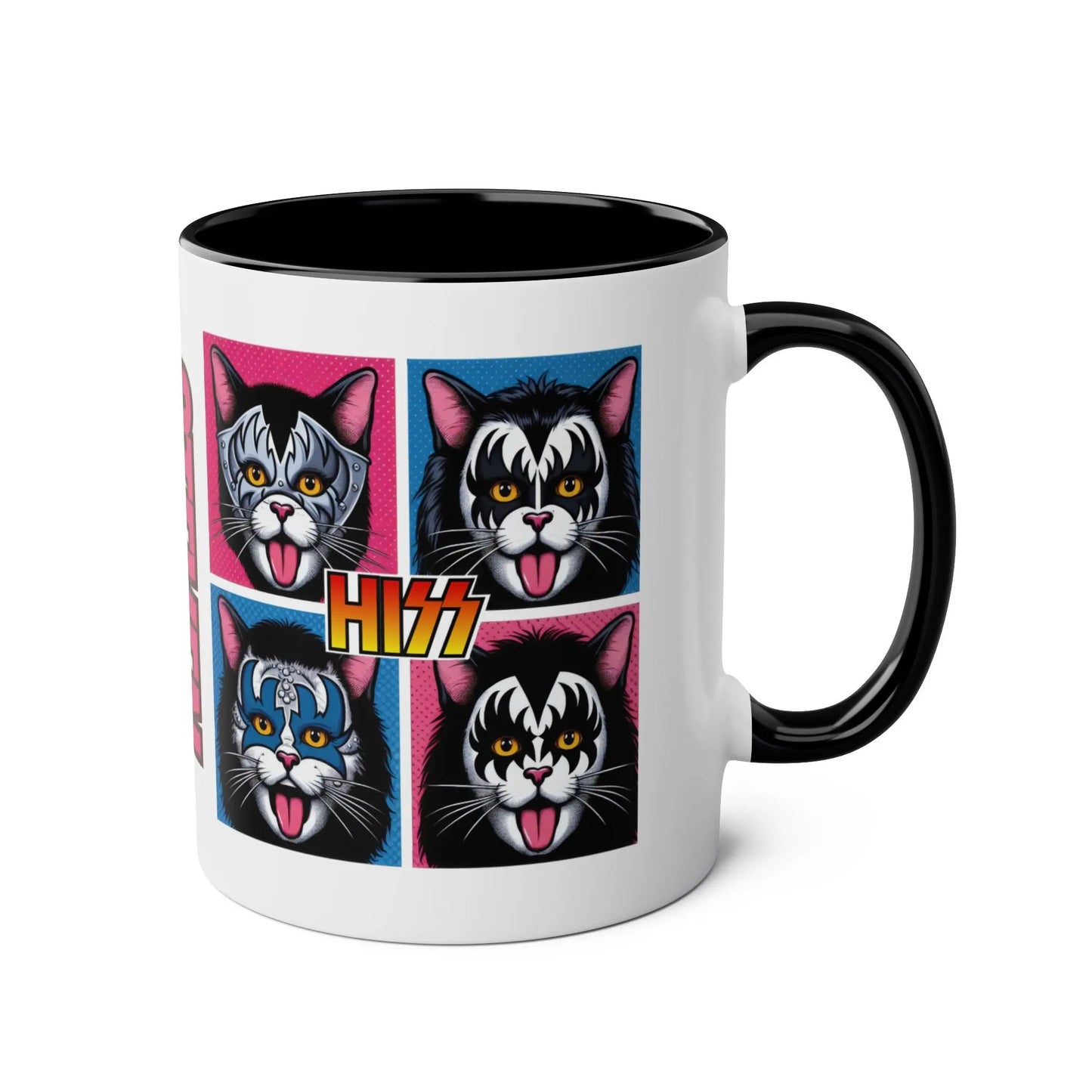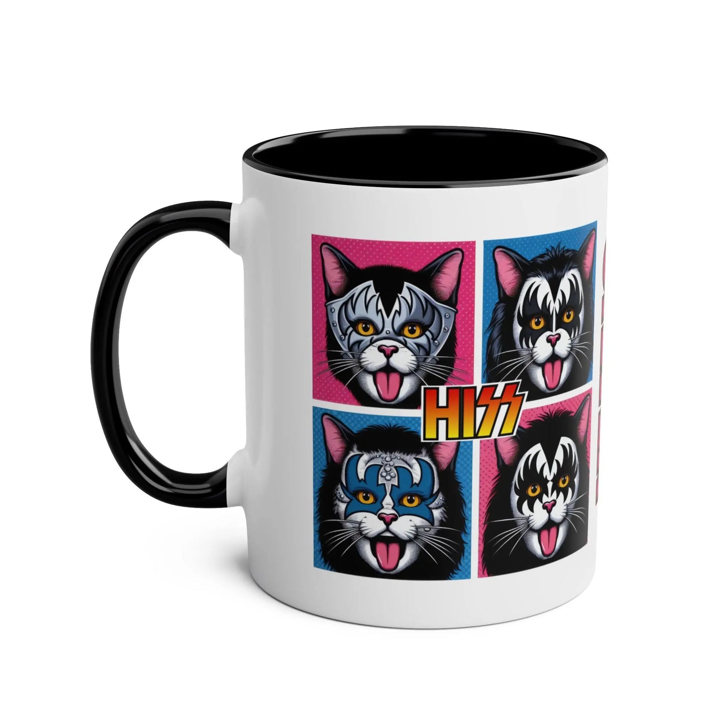 Funny Cat Mug, Get ready to rock with your own Personalised Hiss Cats mug! With a vibrant colour block design and your name added, every sip will be purrfect. You'll be the coolest cat in town, drinking from this mug. (Plus, it makes a great gift for any music and cat lover.)