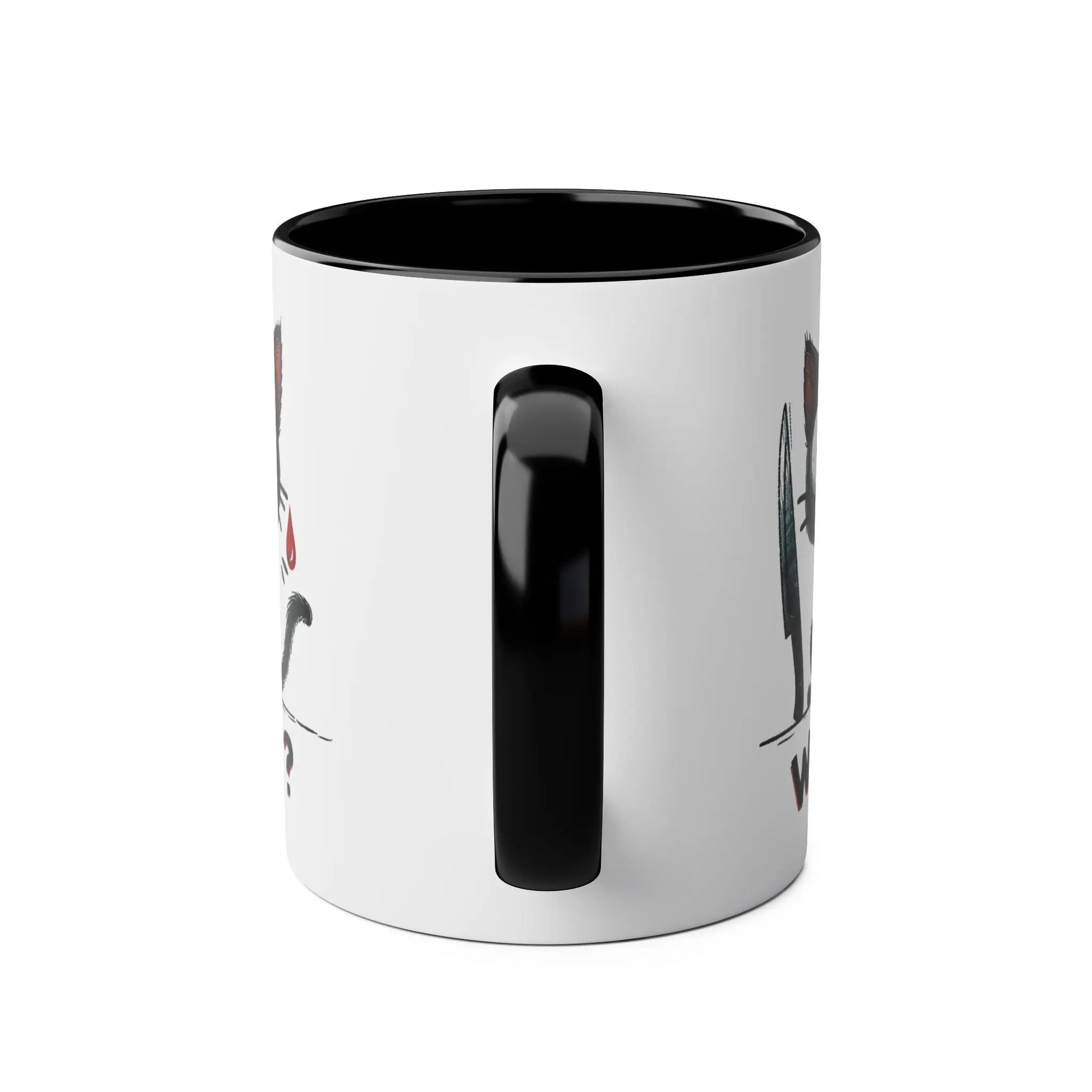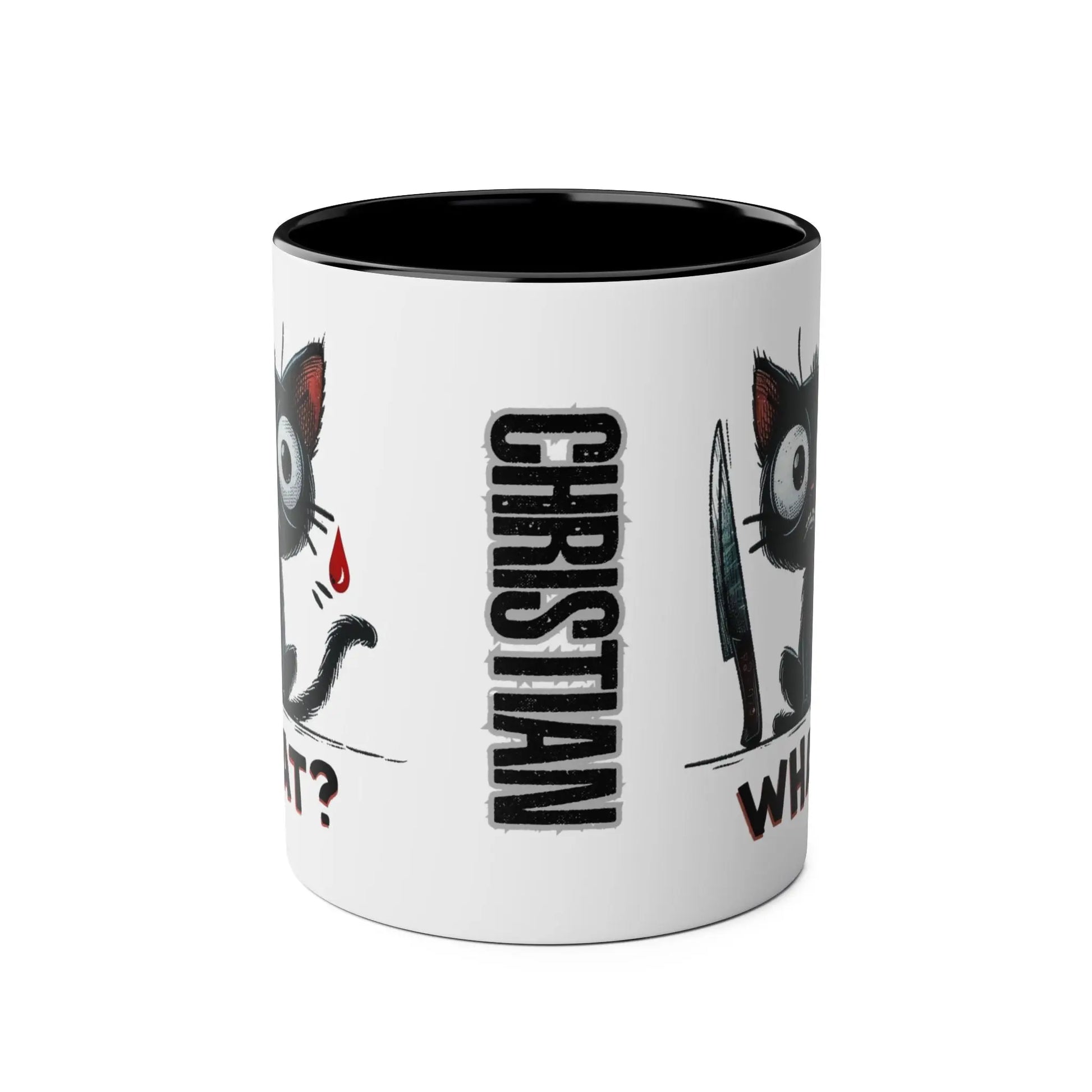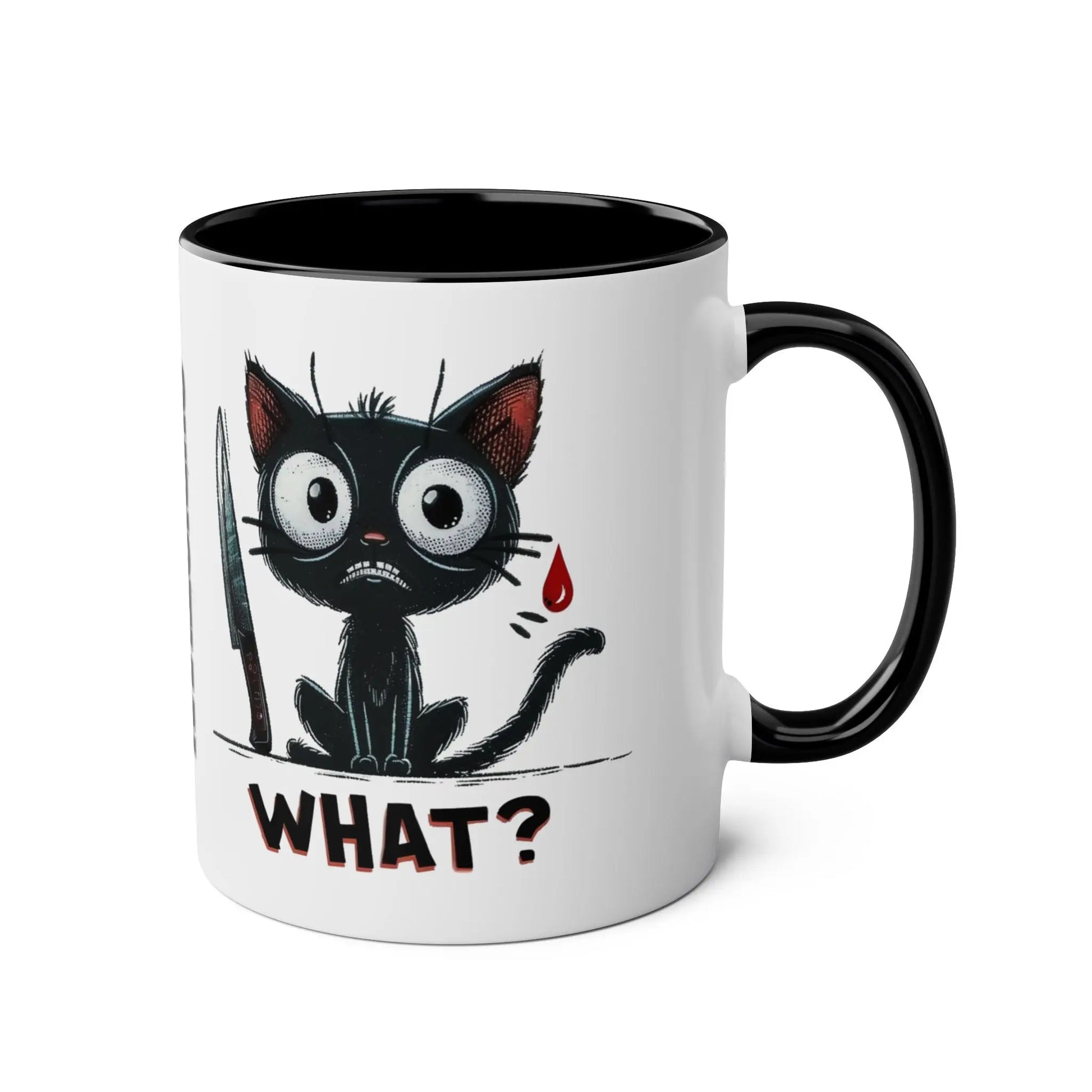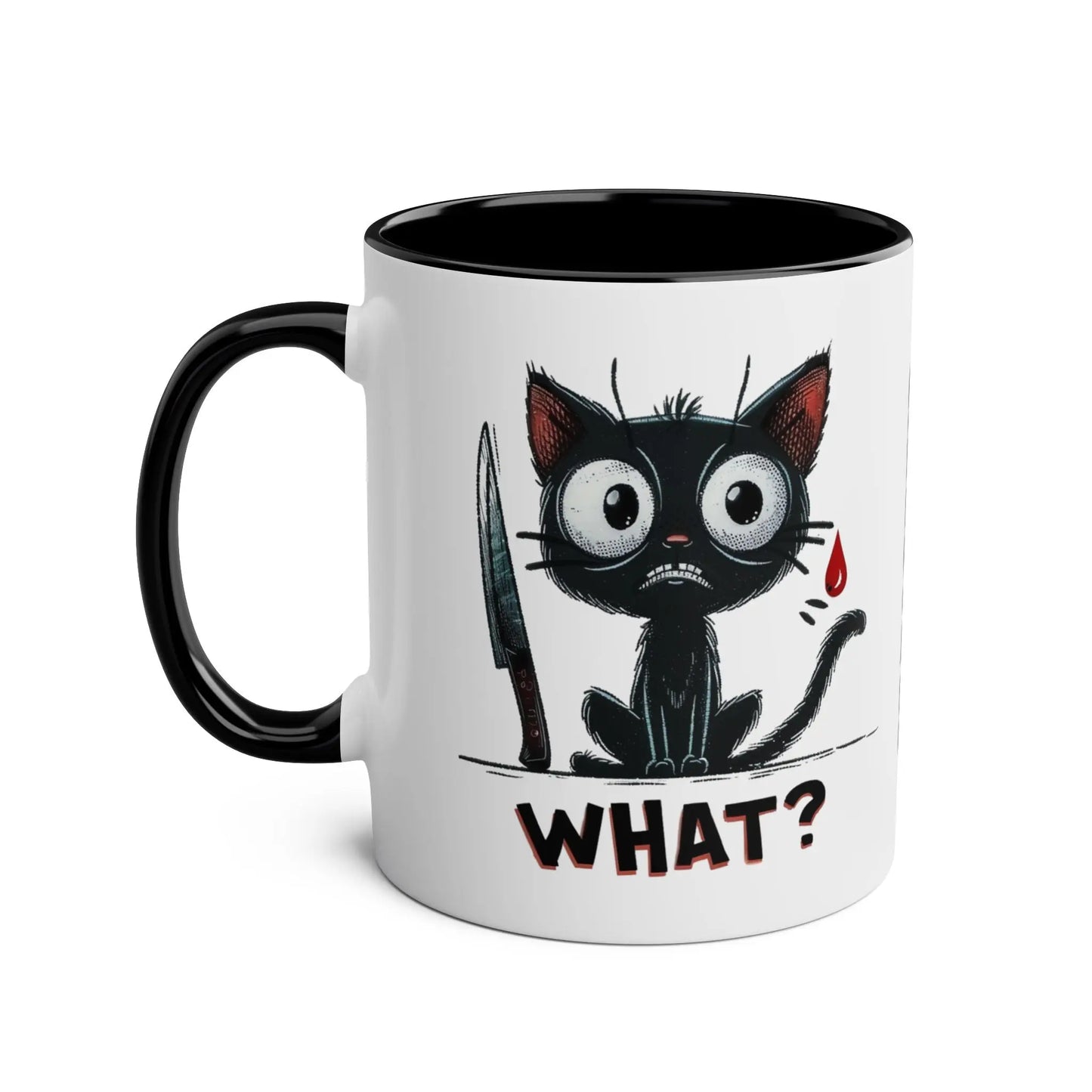 Funny Cat Mug, Let your sense of humour shine with the Personalised Murder Cat What? Funny Quotes Cat Mug. This quirky mug can be personalised for a truly unique touch. Sip your coffee or tea with a side of laughter with this fun and playful mug. Makes a great gift for the cat lover in your life.