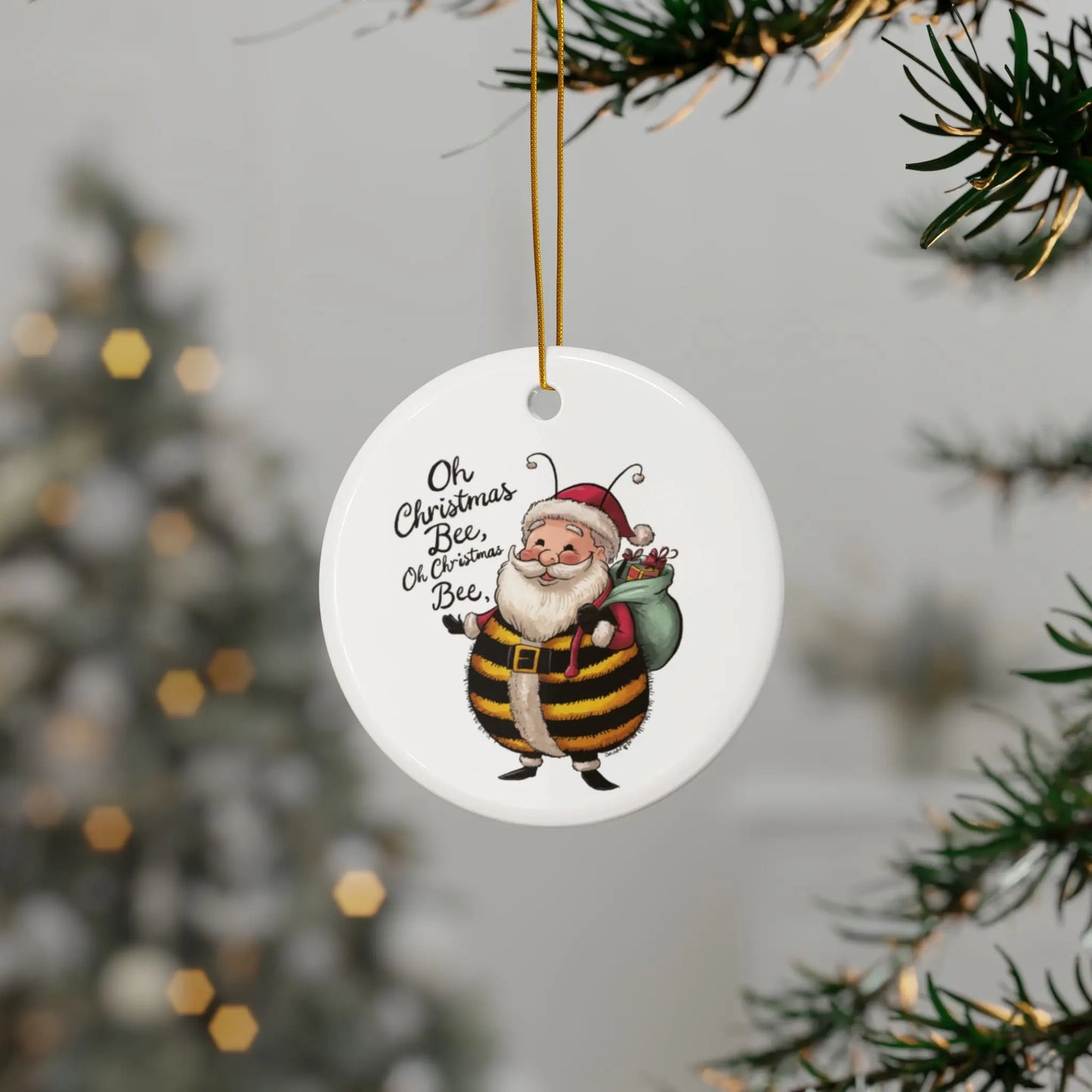 Funny Christmas Bauble Get into the holiday spirit with the Oh Christmas Bee Christmas Ornament! This adorable ornament features a festive bee design, perfect for adding a fun touch to your Christmas tree. Buzz with joy as you decorate and celebrate the season!