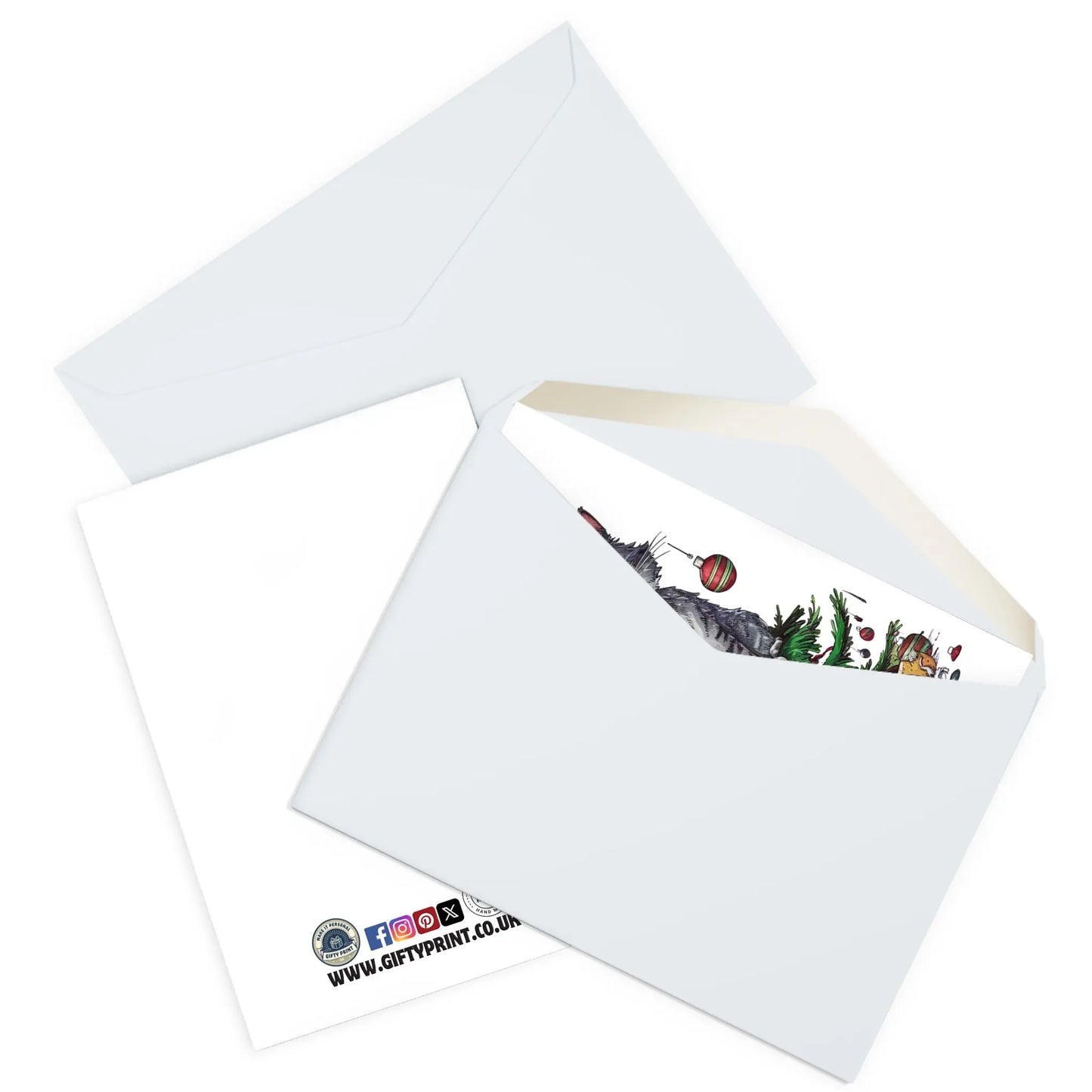 Funny Christmas Card, Unleash some holiday mischief with this quirky Christmas card featuring a guilty-looking cat and a toppled tree. Guaranteed to bring a mischievous smile to any recipient's face!