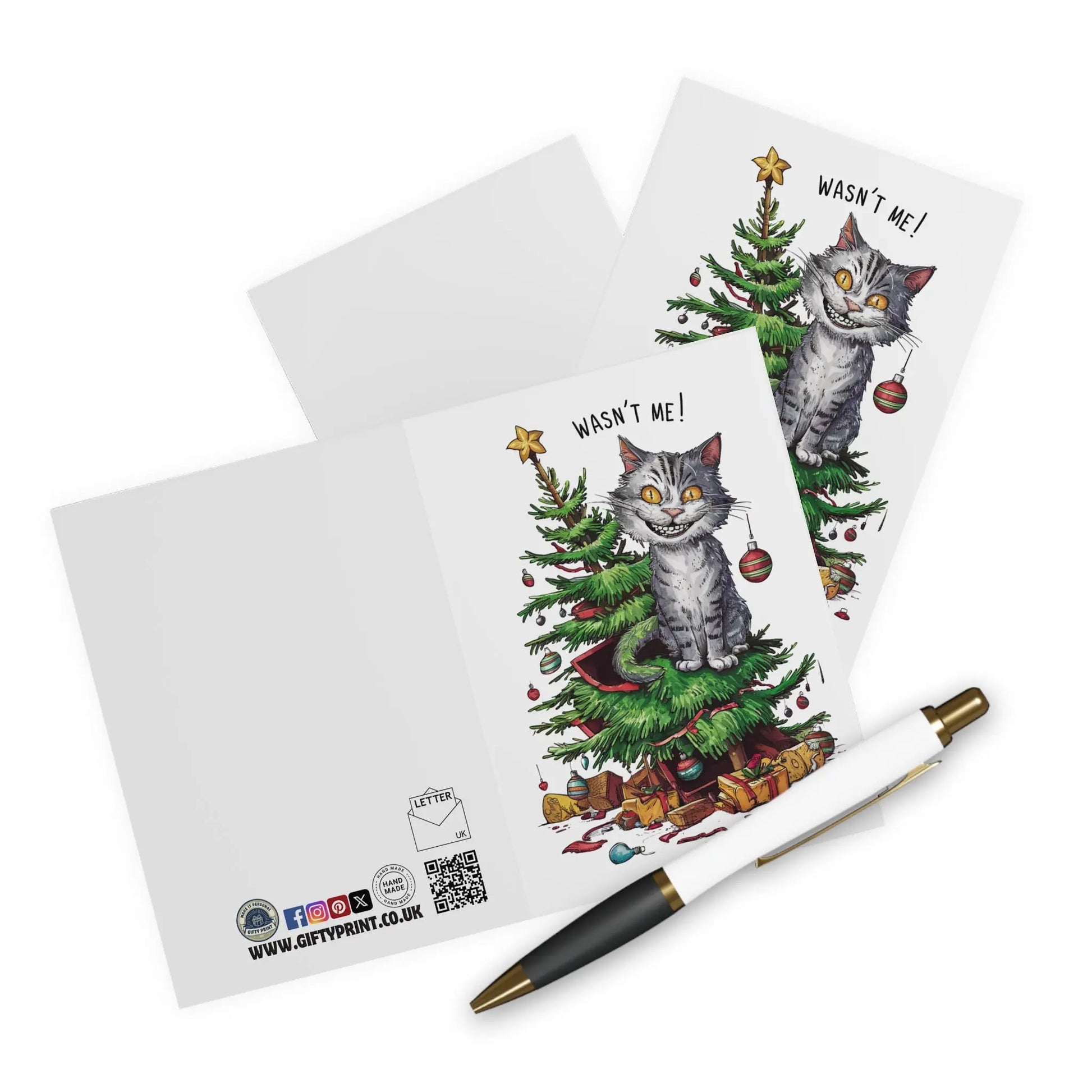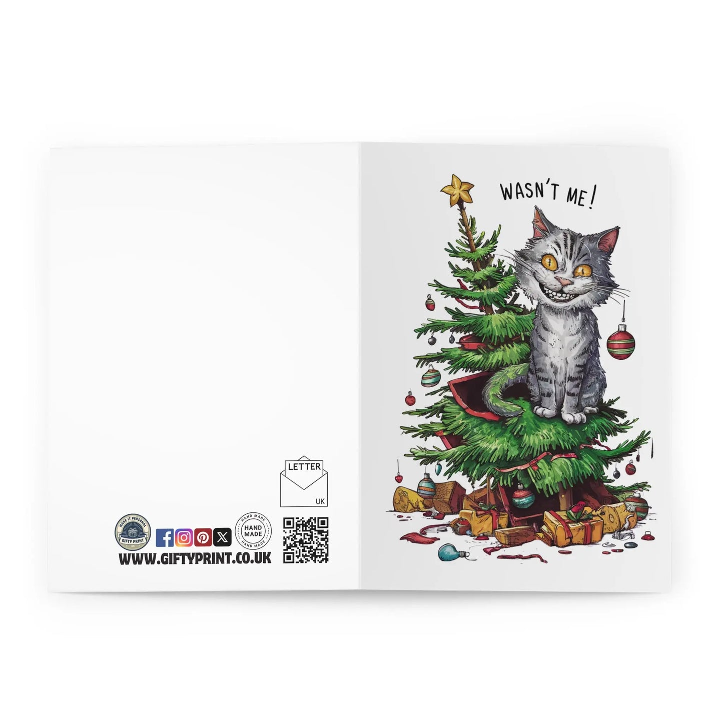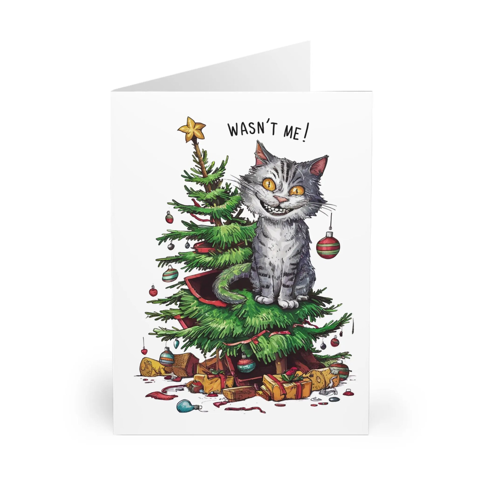 Funny Christmas Card Cat Destroying Christmas Tree Wasn't Me