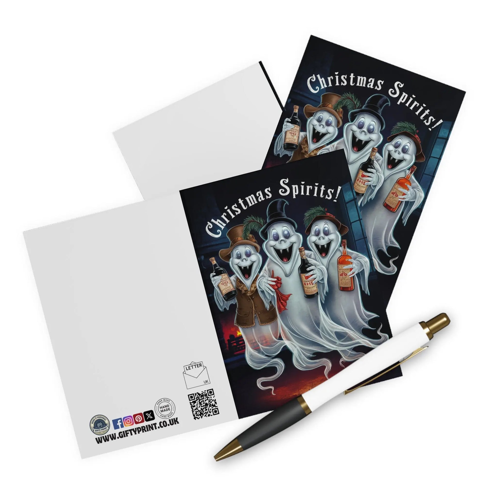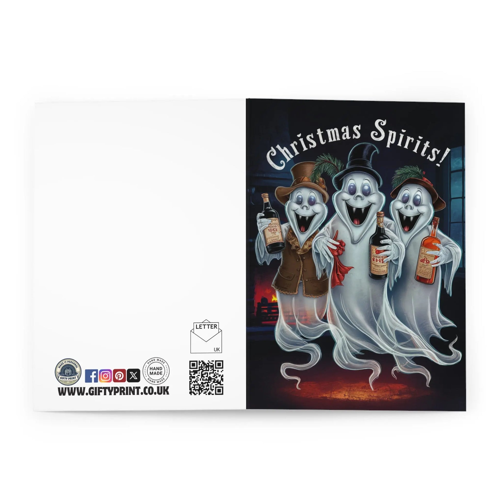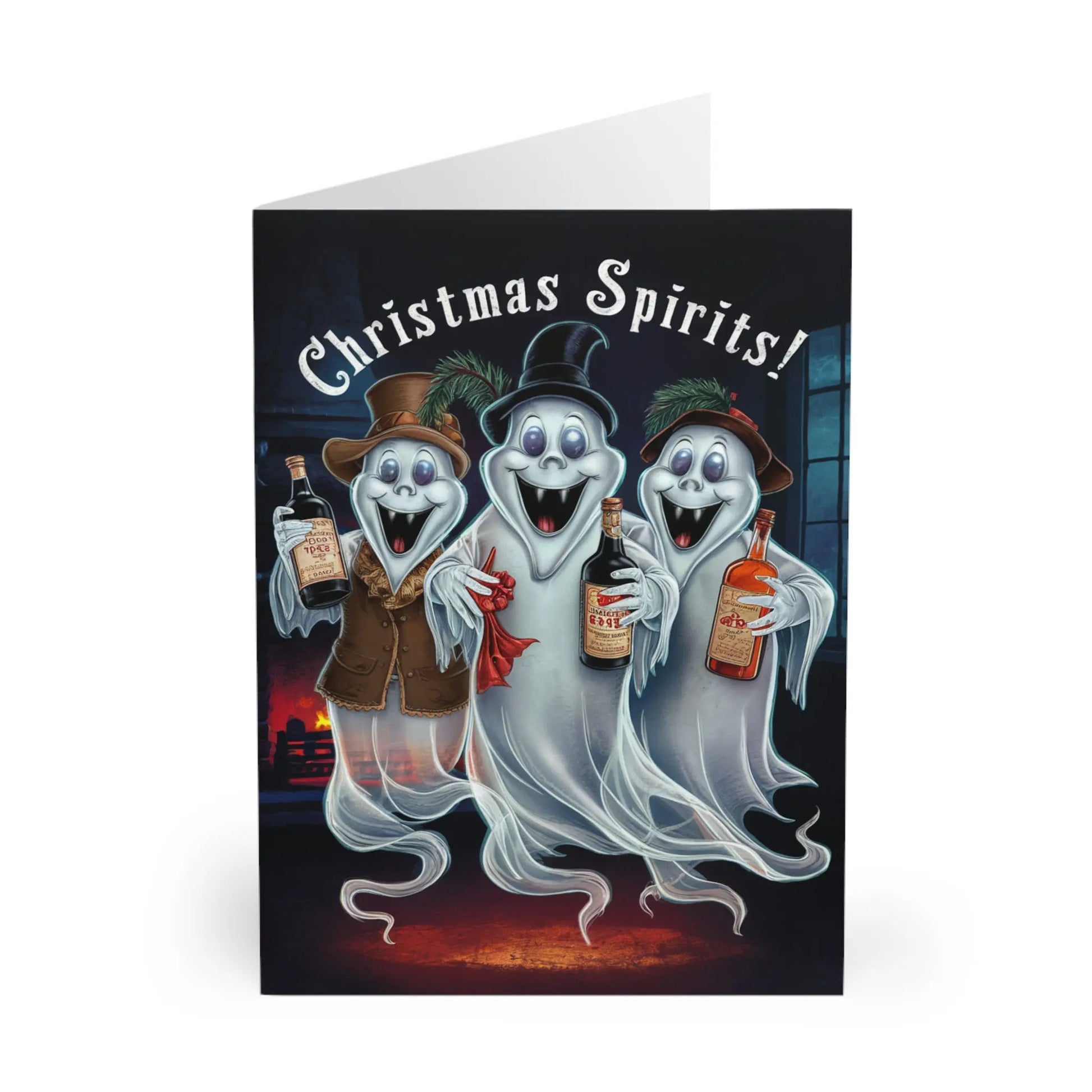 Funny Christmas Card, Spread holiday cheer with our Funny Christmas Spirits Ghosts card! These playful ghosts will have you laughing all season long. Perfect for those with a sense of humour and love for puns.