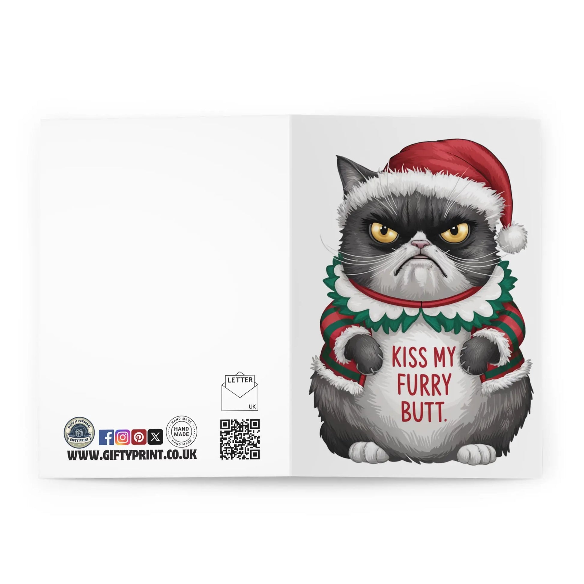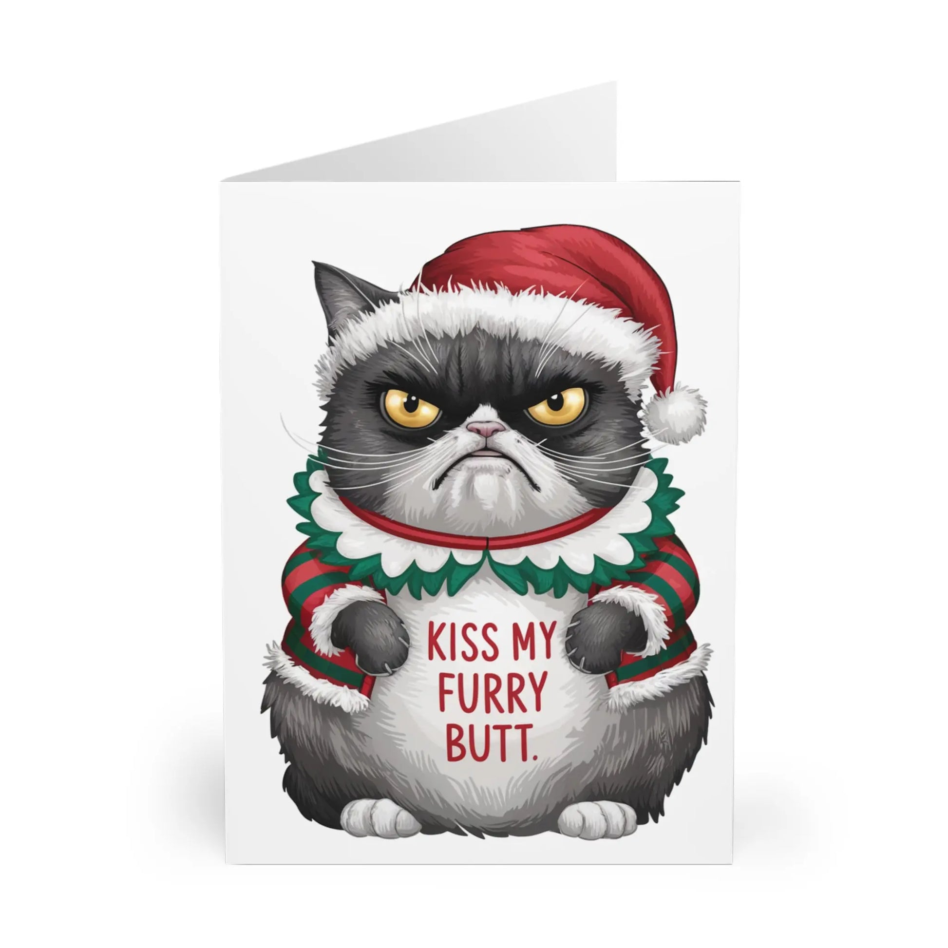 Funny Christmas Card Cute Grumpy Cat Kiss My Furry Butt