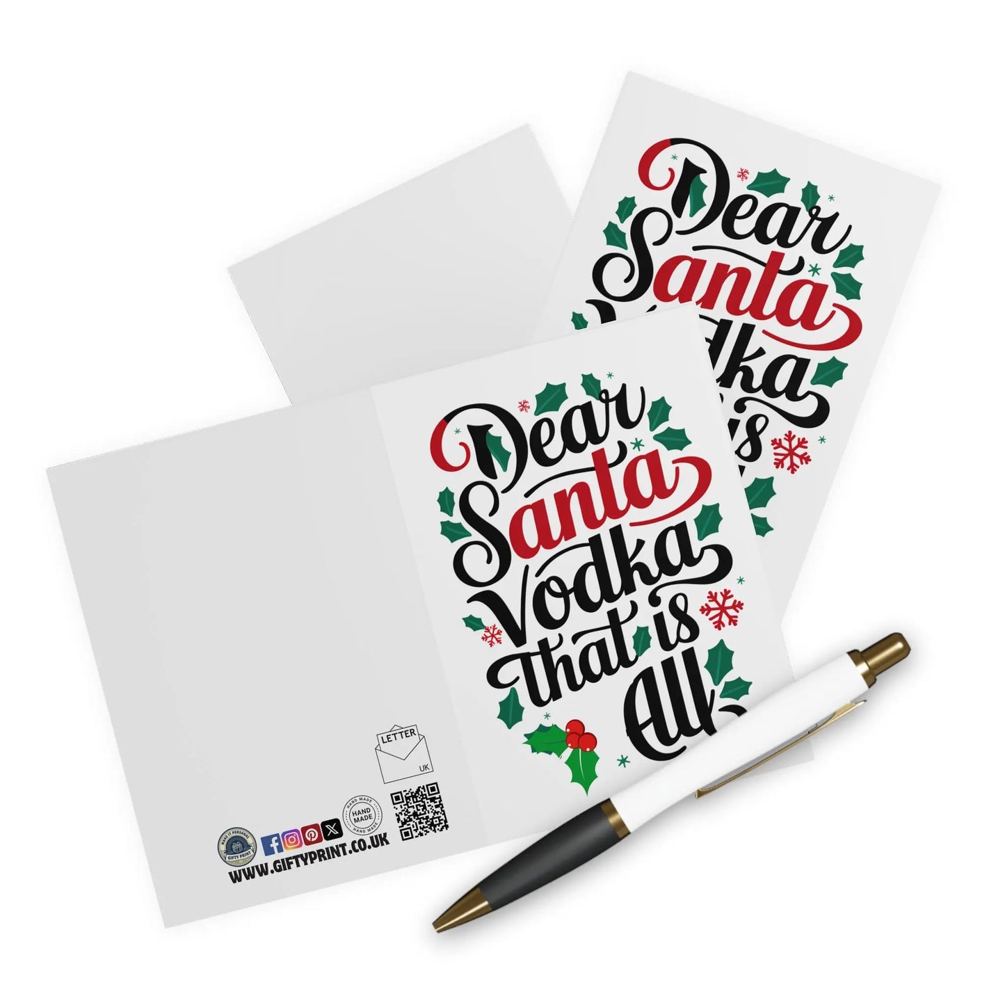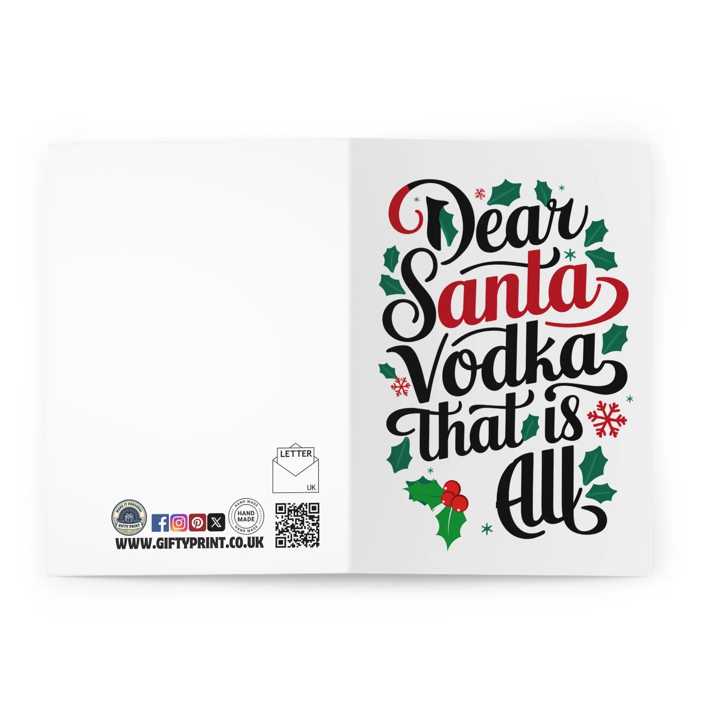 Funny Christmas Card, Spread some holiday cheer (or vodka?) with our Christmas Card Dear Santa Vodka That Is All. A unique and playful twist on the classic holiday card, this product is sure to bring a smile to anyone's face. Cheers to a merry and bright season!