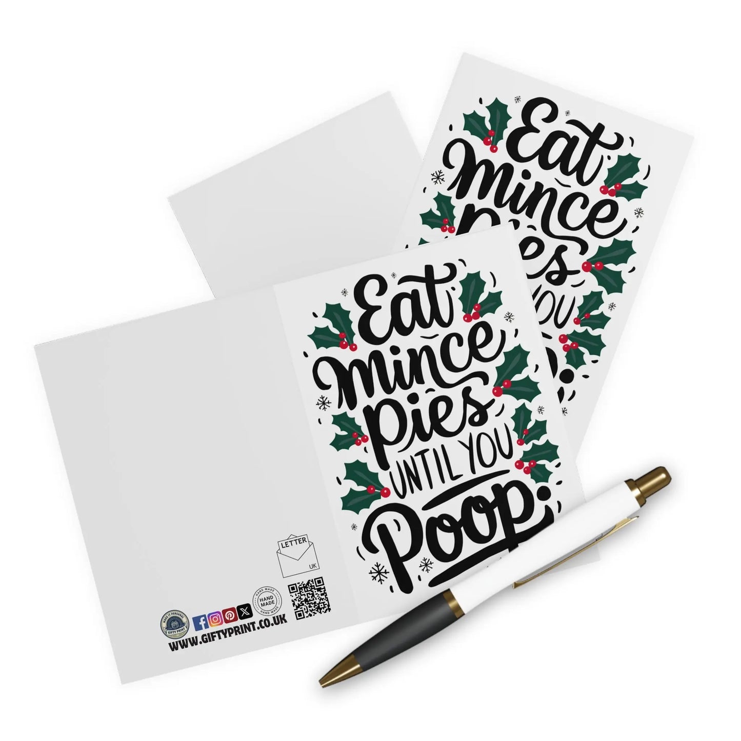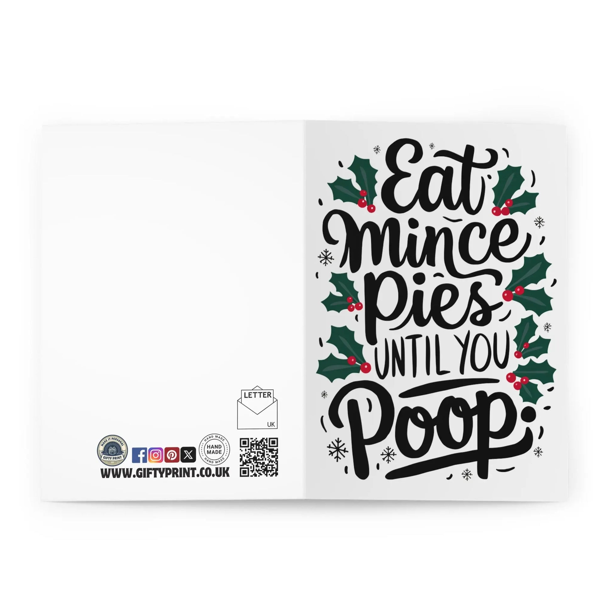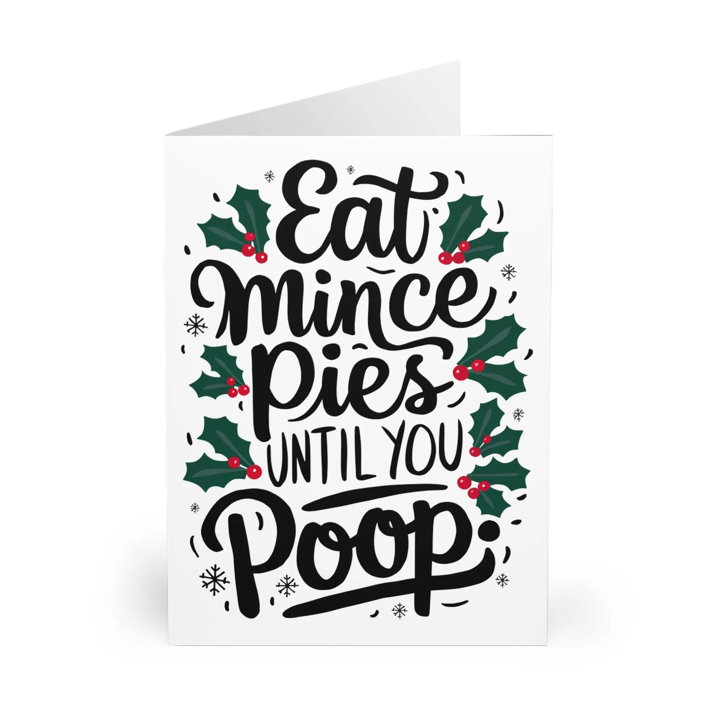 Funny Christmas Card, Spread holiday cheer (and a little humour) with the Eat Mince Pies Until You Poop Christmas Card. Perfect for any foodie or fan of word play, this card will surely elicit some holiday giggles. Give the gift of laughter this season!