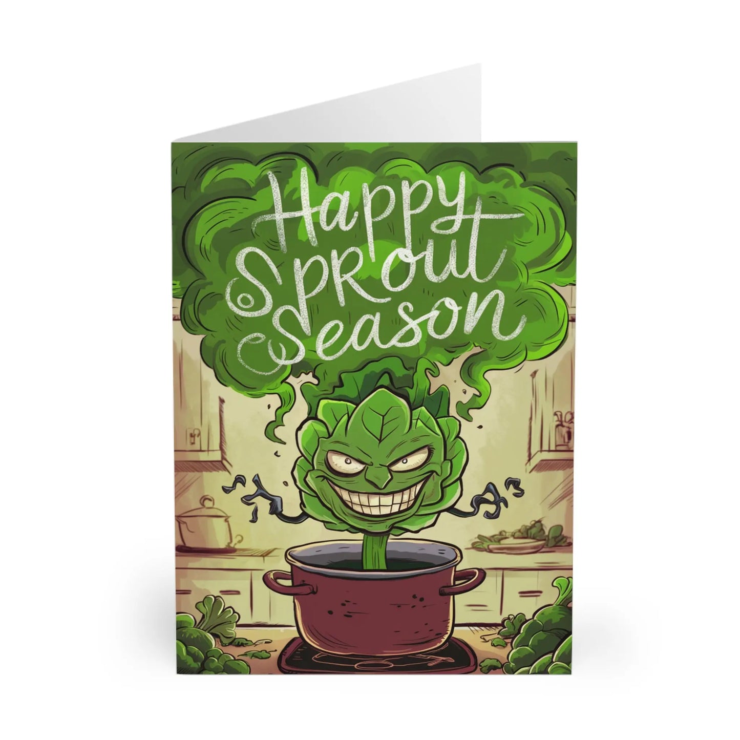 Funny Christmas Card, Spread some holiday cheer with our Christmas Card Happy Sprouts Season! Featuring a playful design and a touch of humour, this card is sure to make everyone smile. Plus, it comes with a fun and unique twist , delightful scent of fresh sprouts and...ahem...smelly farts! (Sorry, not sorry).