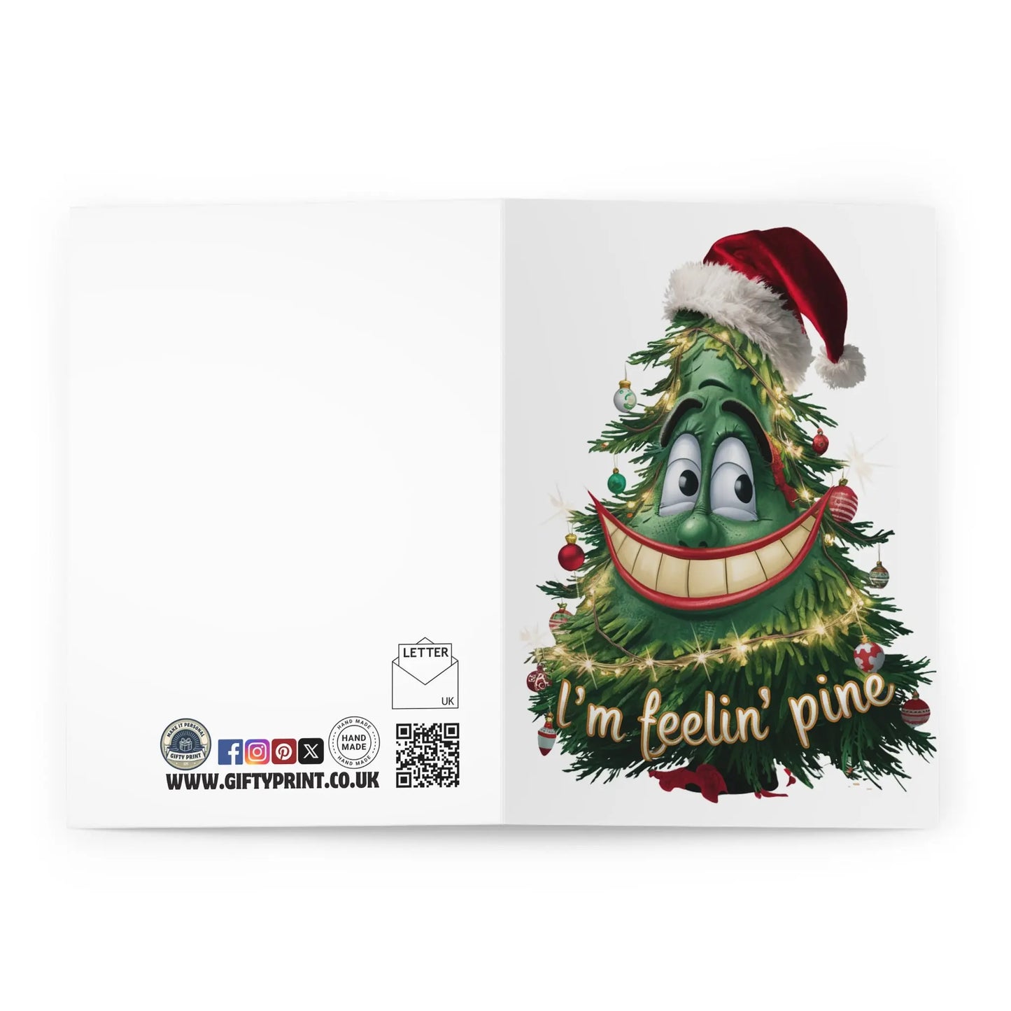 Funny Christmas Card, Spread some festive cheer with our I'm Feelin Pine Tree Christmas Card! This quirky and playful card is the perfect addition to your holiday greetings. With a unique and fun design, it's sure to make your loved ones laugh. Send a little humour and joy this Christmas.