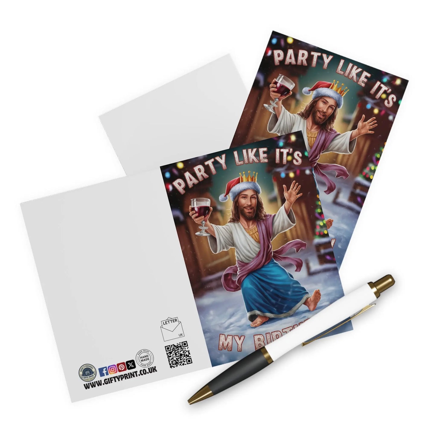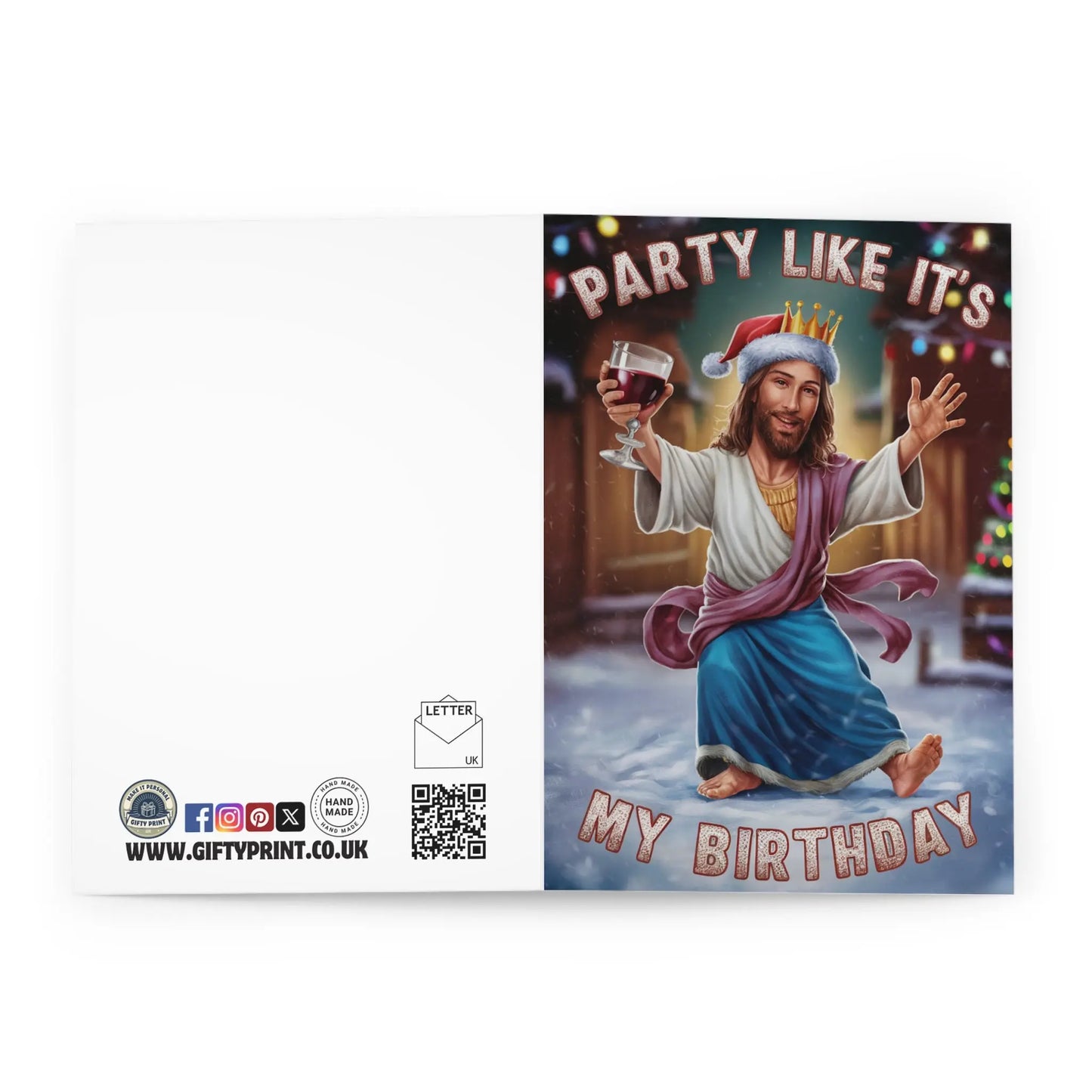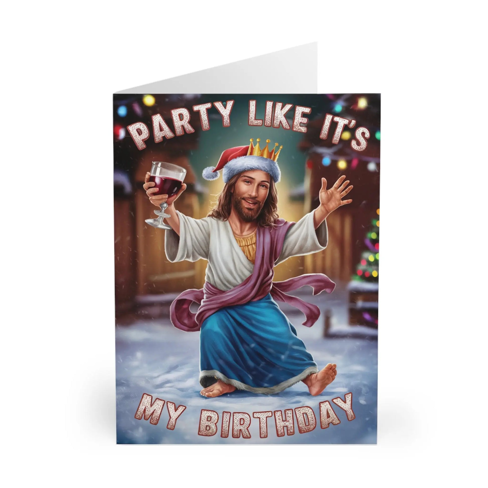 Funny Christmas Card, Celebrate the birth of Jesus in style with this quirky Christmas card. Featuring the playful message "Party Like It's My Birthday", this card is sure to make anyone smile. Spread some holiday cheer and laughter with this unique and fun card.