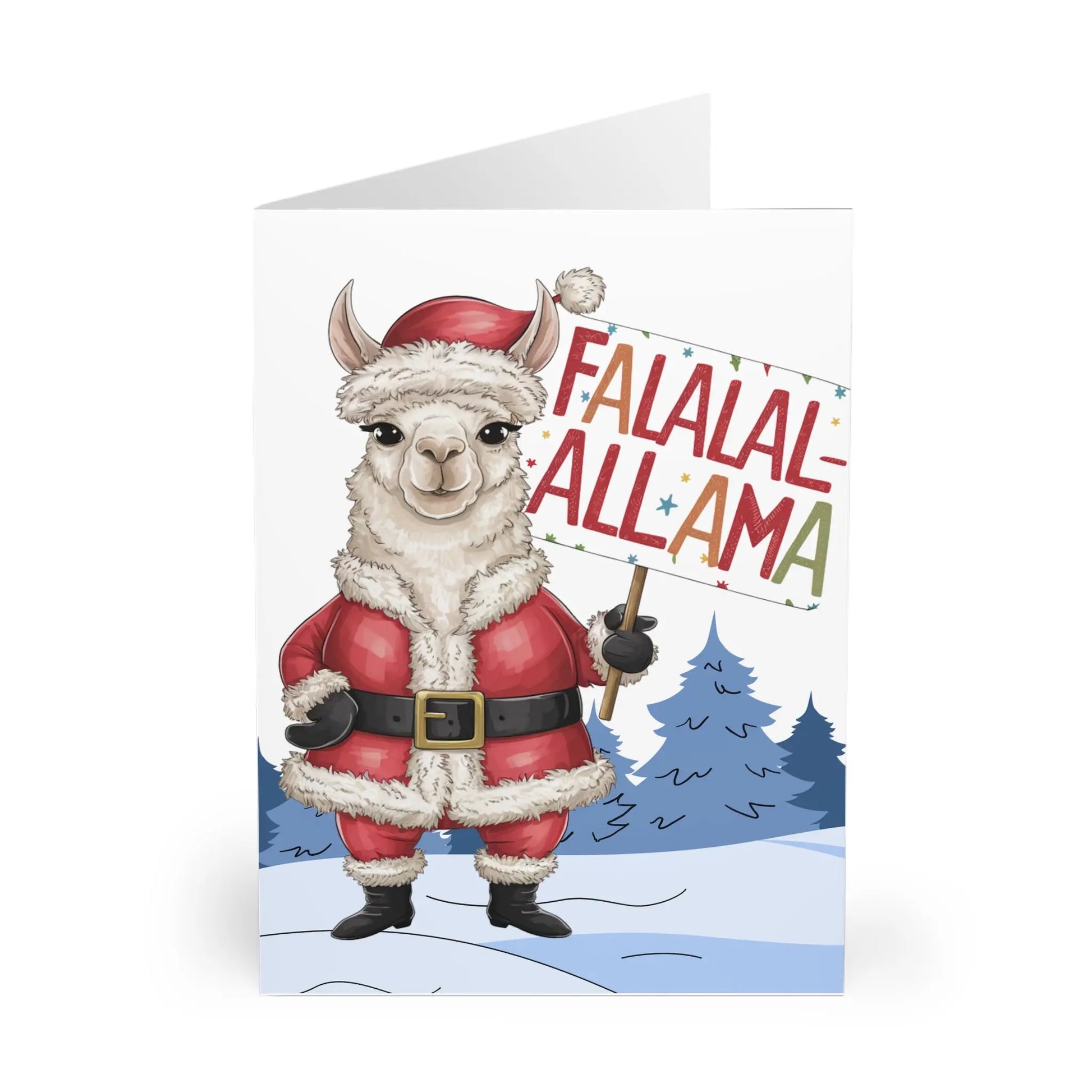 Funny Christmas Card, Spread some holiday cheer with the Llama Santa Fa la la Llama Christmas Christmas Card! This festive card features a whimsical llama dressed as Santa, guaranteed to bring a smile to anyone's face. Perfect for sending to loved ones near and far during the holiday season. Fa la la llama!