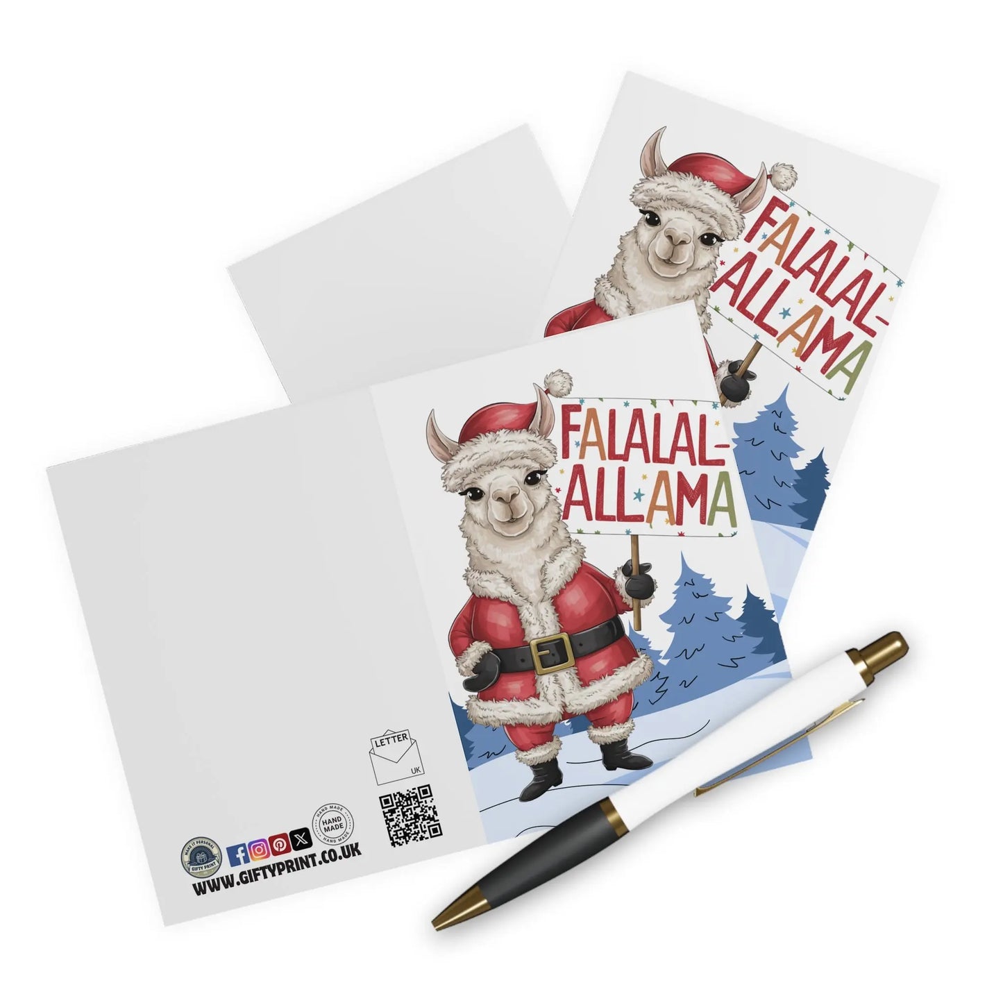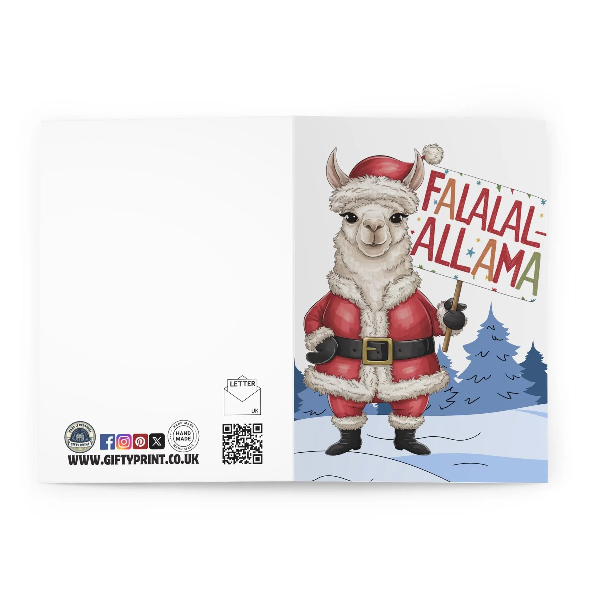 Product Details For Funny Christmas Card Llama Santa Fa la la Llama Christmas