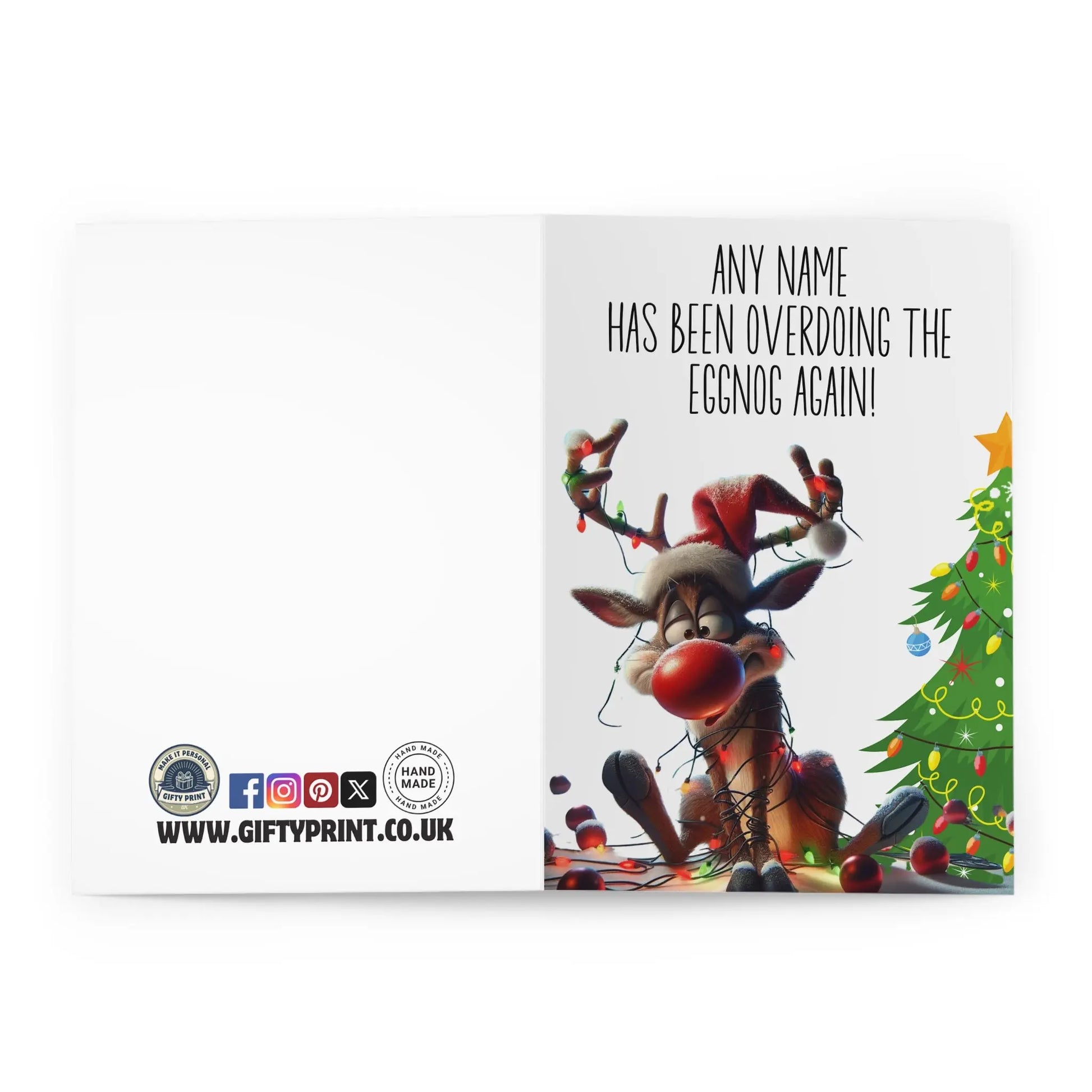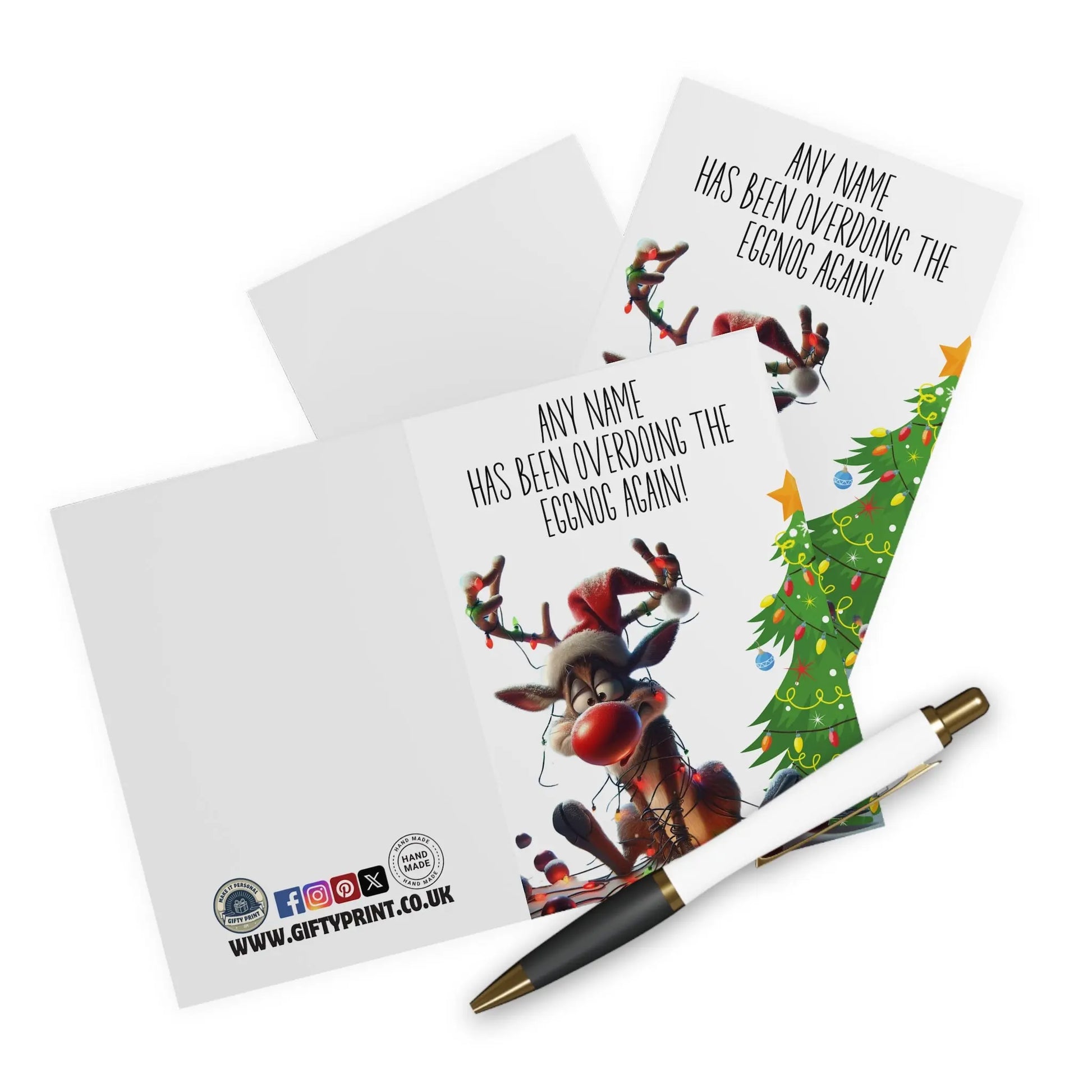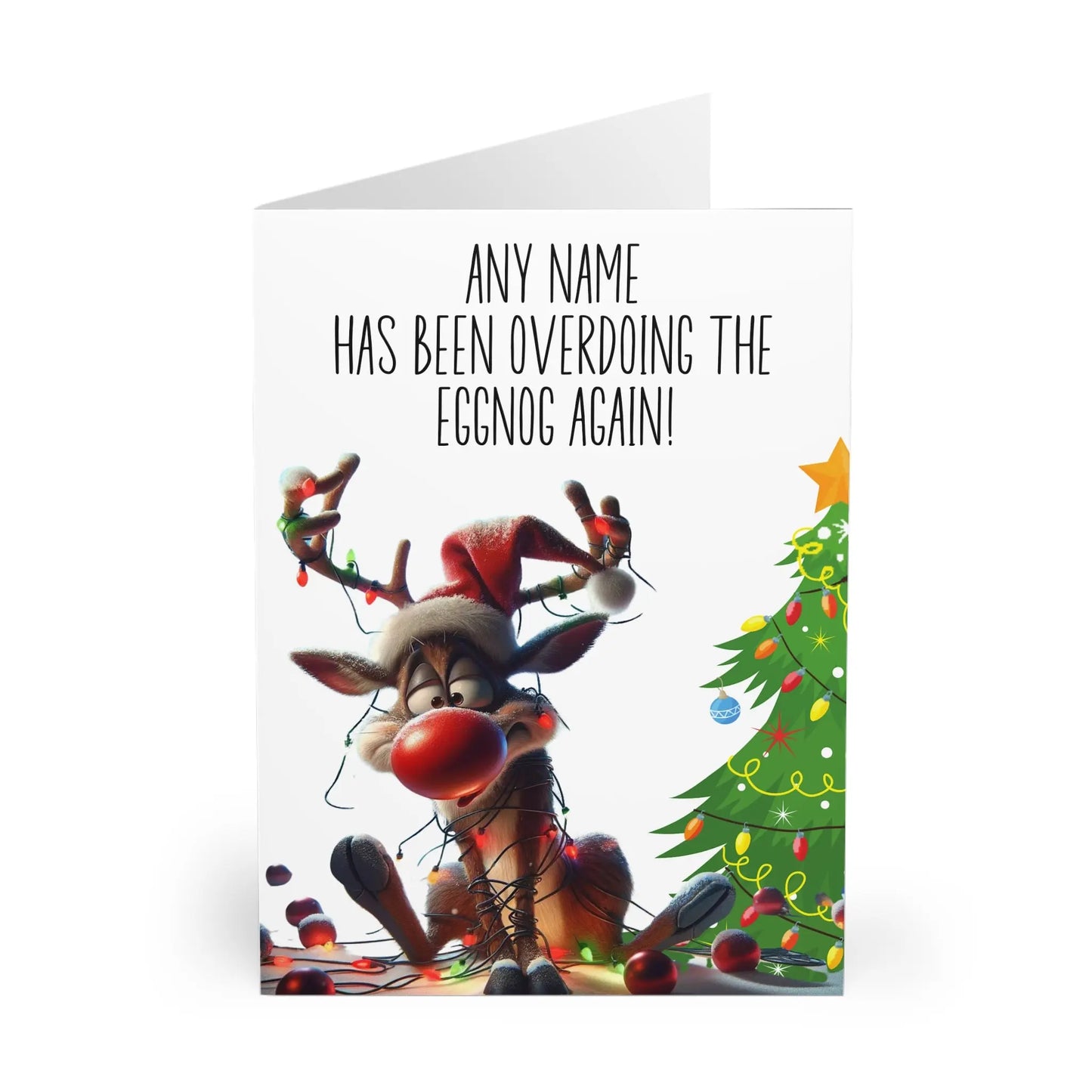 Funny Christmas Card Personalised Drunk Reindeer Been Over Doing The Eggnog Again