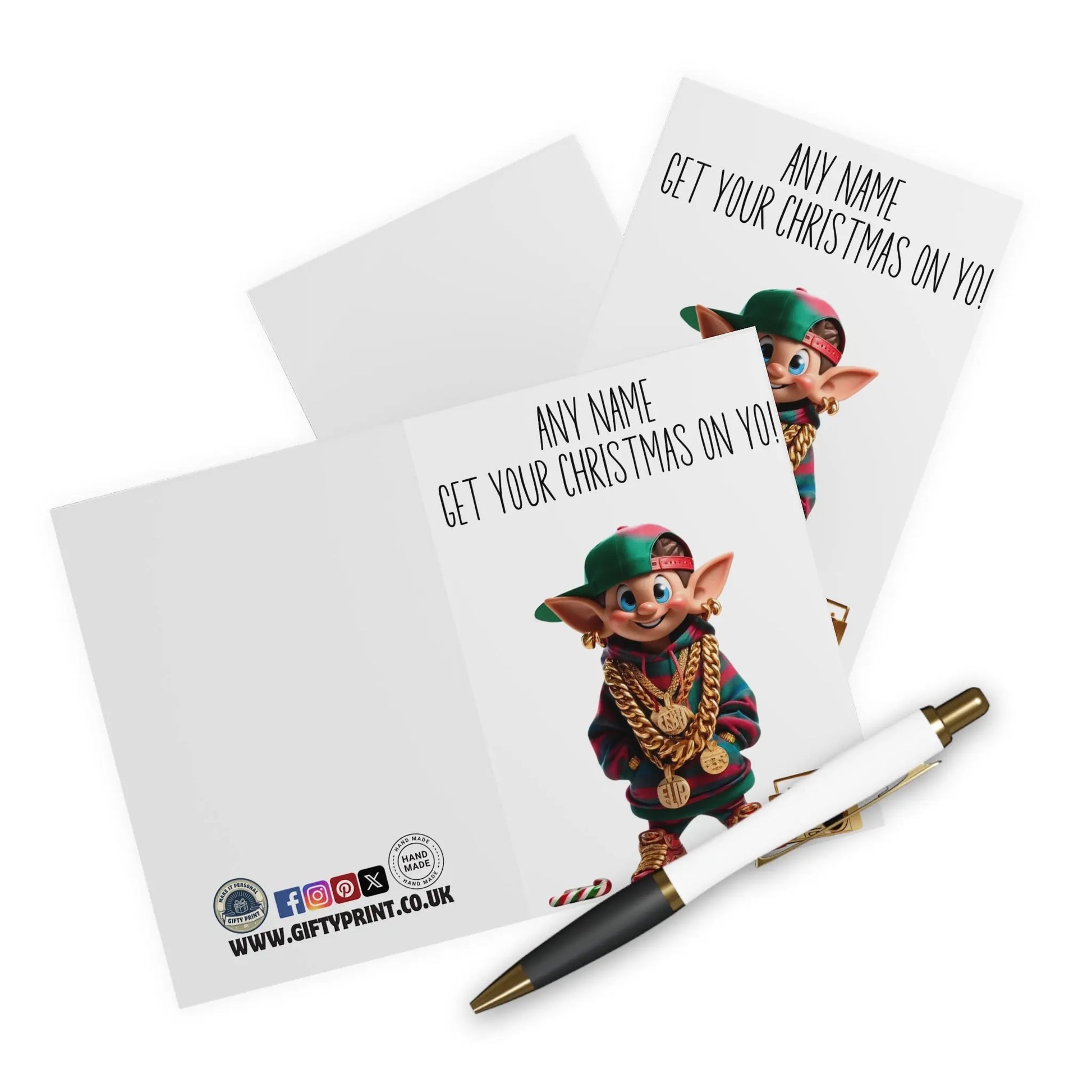 Funny Christmas Card Personalised Elf Card Get Your Christmas On Yo!