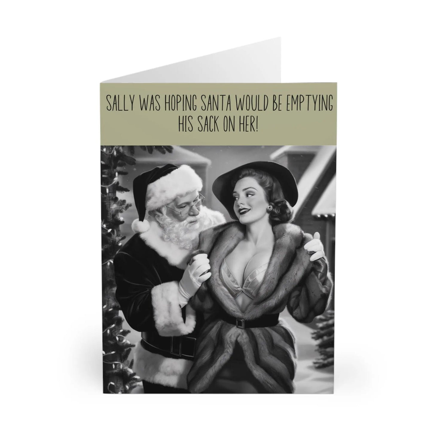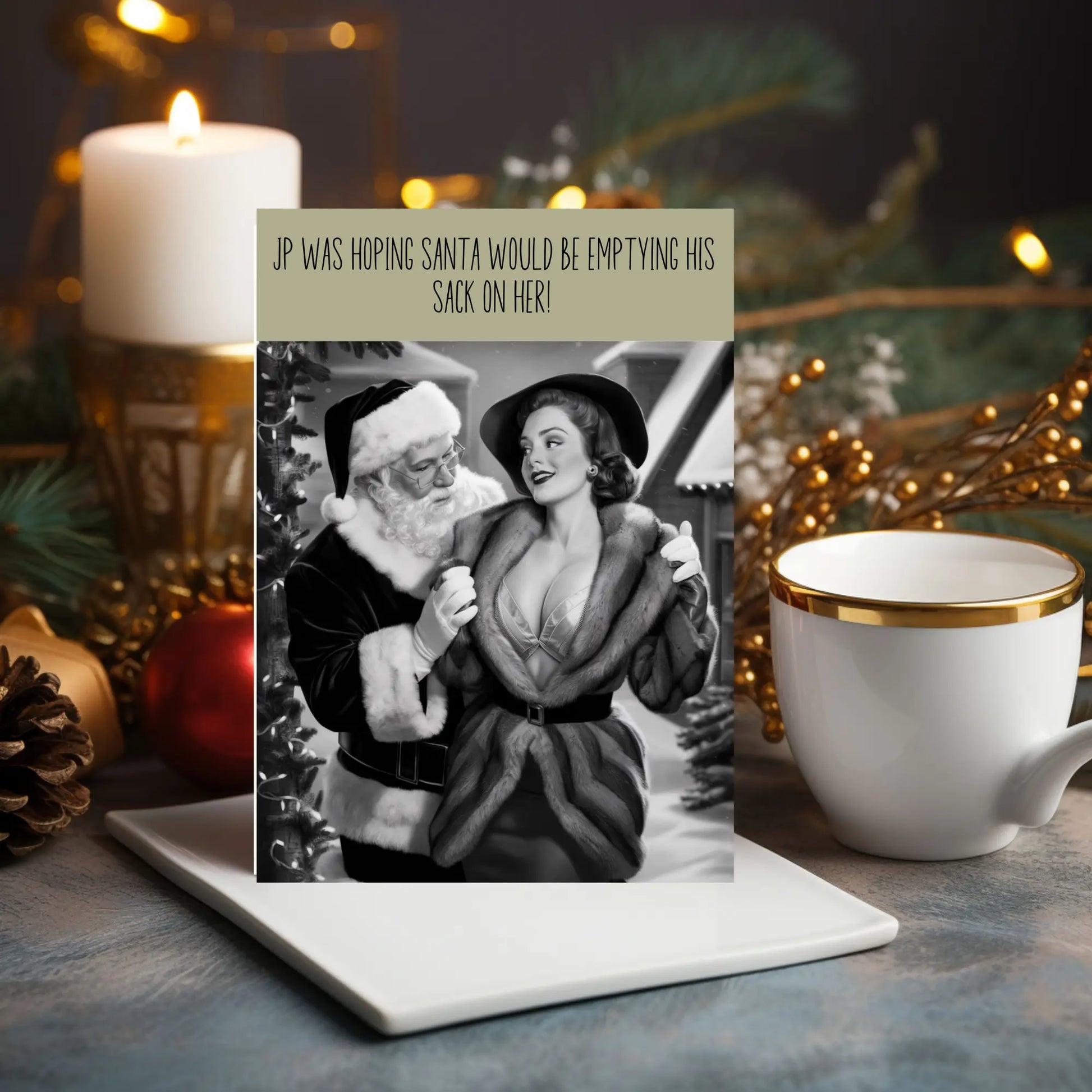 Funny Christmas Card Personalised Rude Santa Emptying Sack