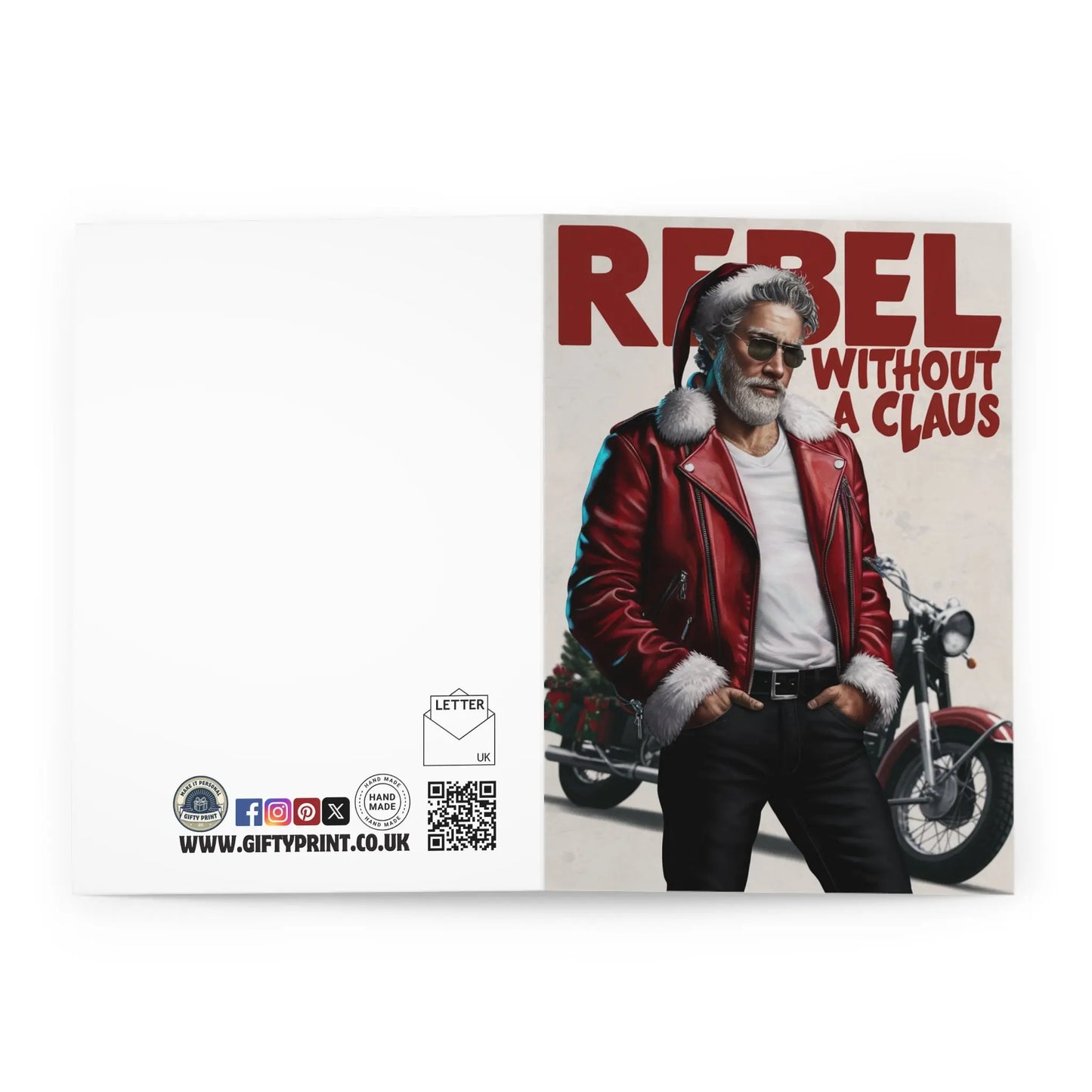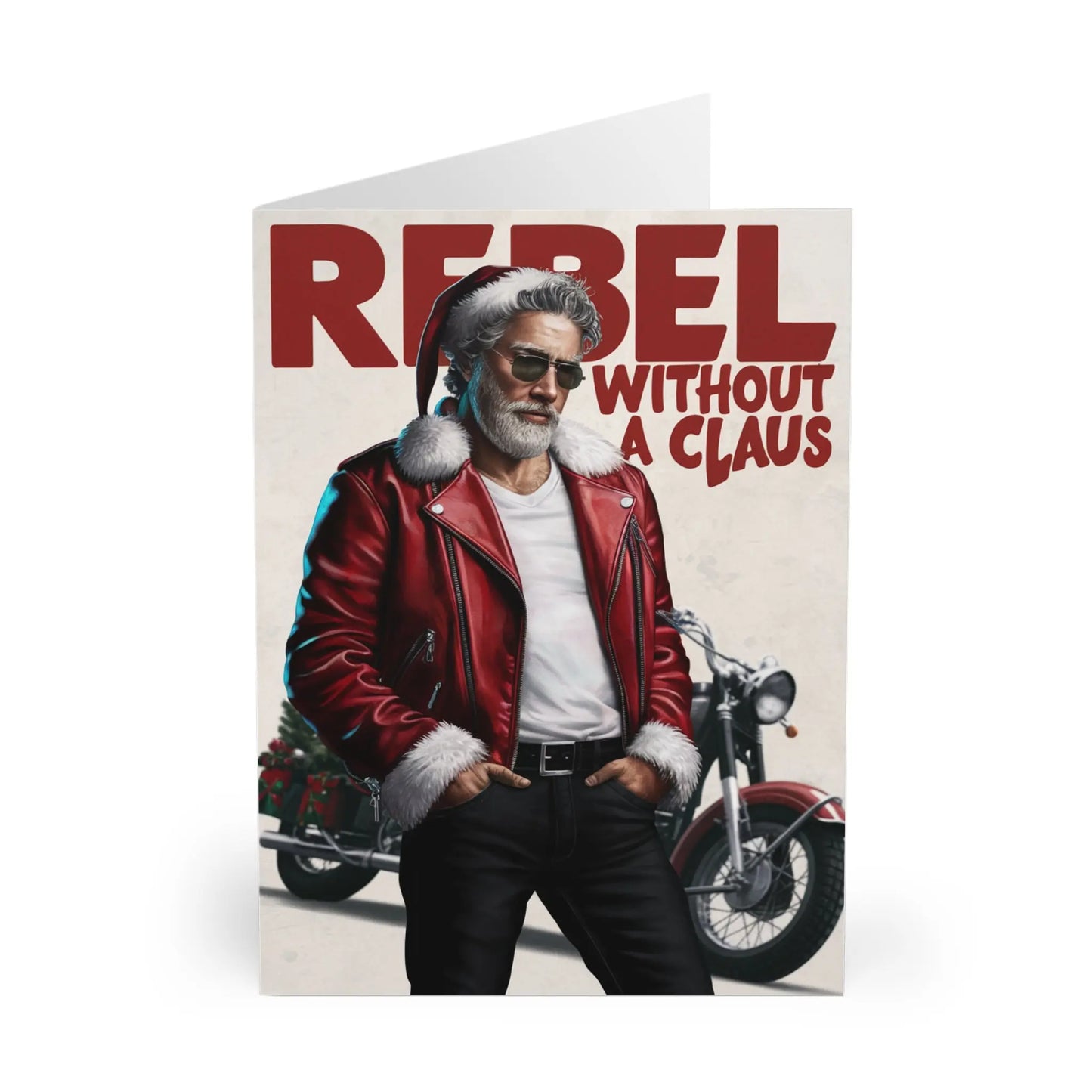 Funny Christmas Card, Spread some rebellious holiday cheer with our Rebel Without A Claus Funny Santa Christmas Card! This quirky card is perfect for those who don't take themselves too seriously. Featuring a playful tone and humorous word play, it's sure to make them chuckle.