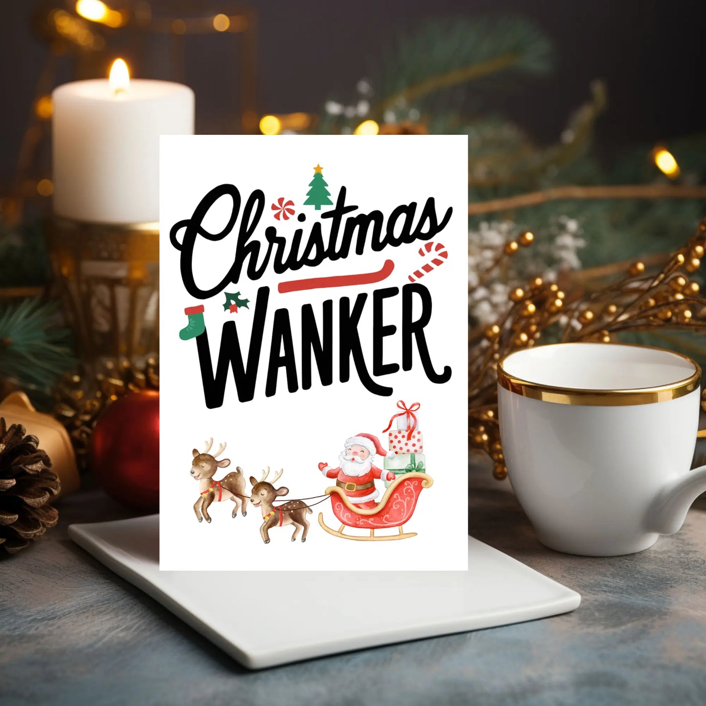 Funny Christmas Card, Wish a cheeky and hilarious Christmas to your loved ones with this Funny Rude Christmas Card. Featuring a festive "wanker" pun, it's sure to bring a smile and a laugh. Spread some holiday cheer with this playful and quirky card.
