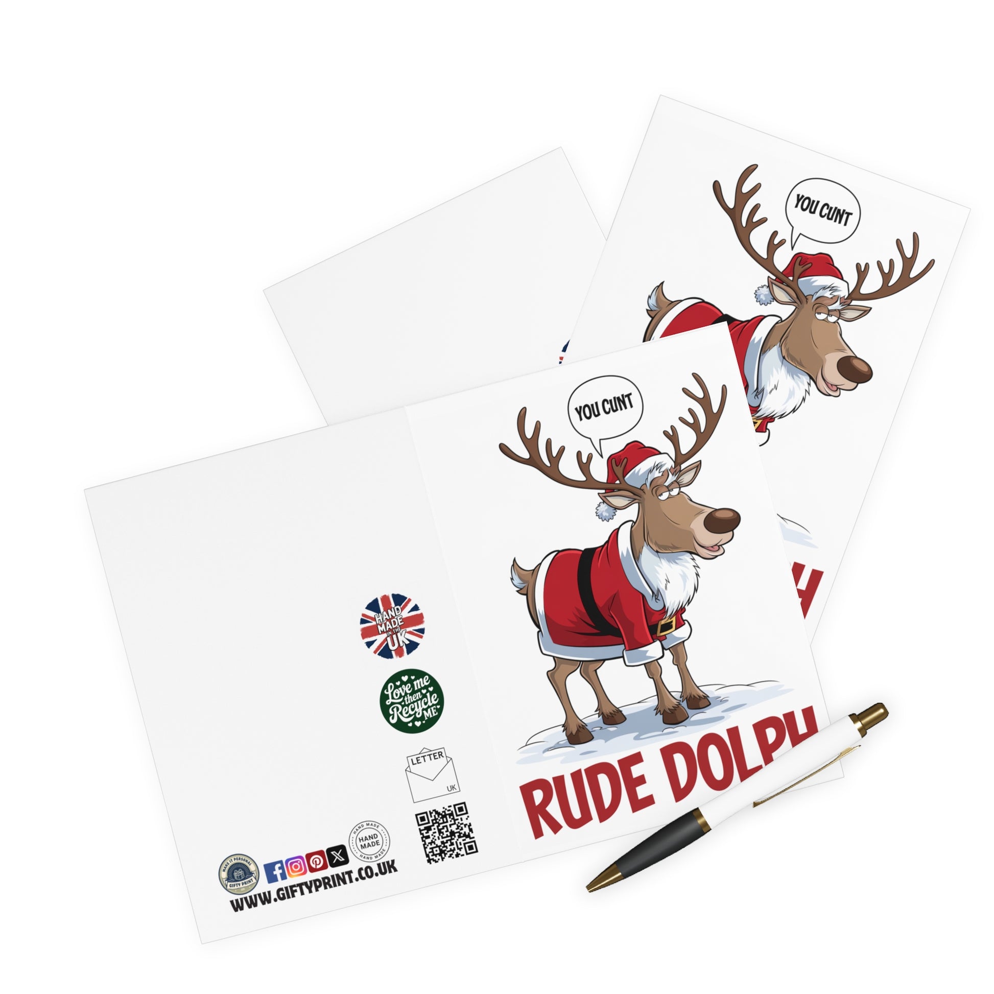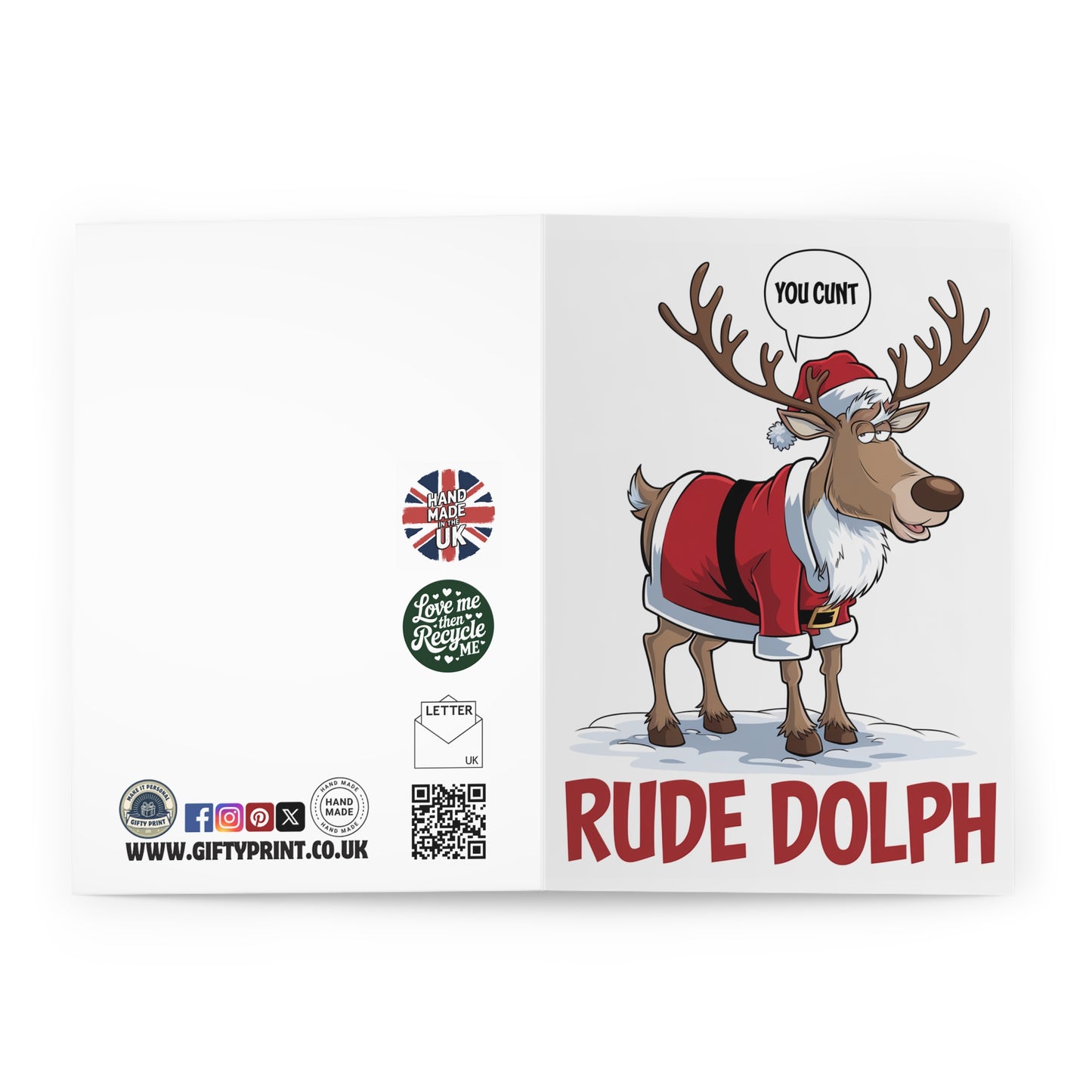 Funny Christmas Card, Add some humour to your holiday season with our Funny Christmas Card featuring a rude Dolph Reindeer. Perfect for those who appreciate a little sass and laughter during the festive time. Made with high-quality materials, this card is sure to make anyone's Christmas a jolly one.