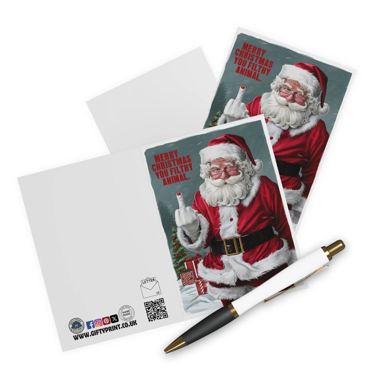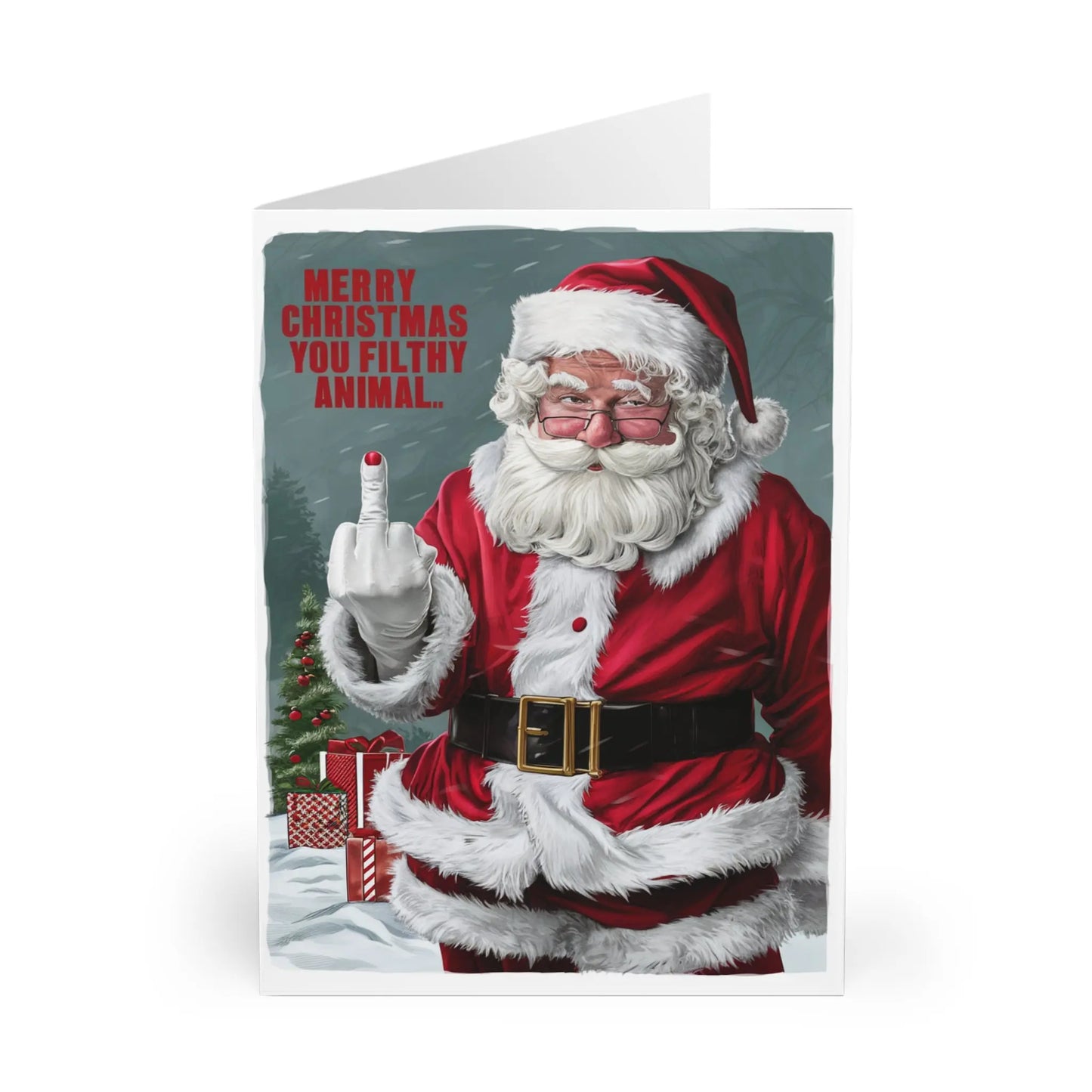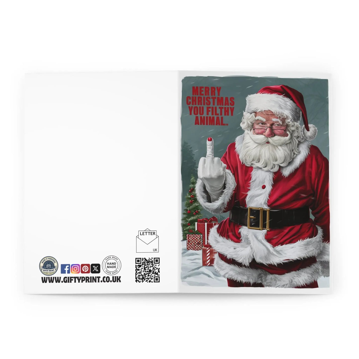 Funny Christmas Card, Wish your loved ones a cheeky and playful holiday with our Christmas Card featuring a rude Santa with the message "Merry Christmas You Filthy Animal!" Give the gift of laughter this Christmas and spread some holiday cheer with this quirky and humorous card.