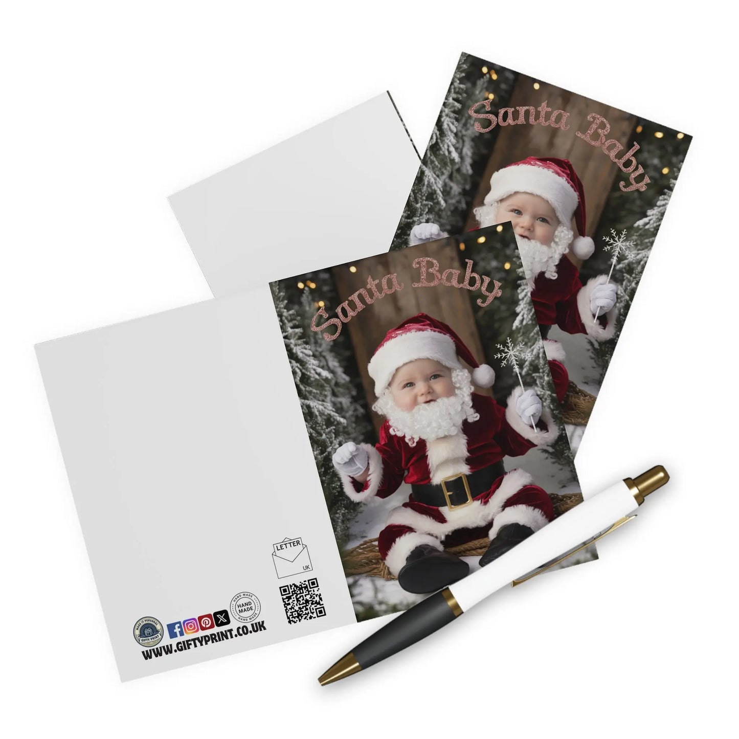 Funny Christmas Card, Get into the holiday spirit with our Christmas Card Santa Baby! This cute and playful card features a cute baby dressed as Santa, perfect for spreading joy and cheer to your loved ones. It's the perfect addition to your holiday card collection. (Ho ho ho!)