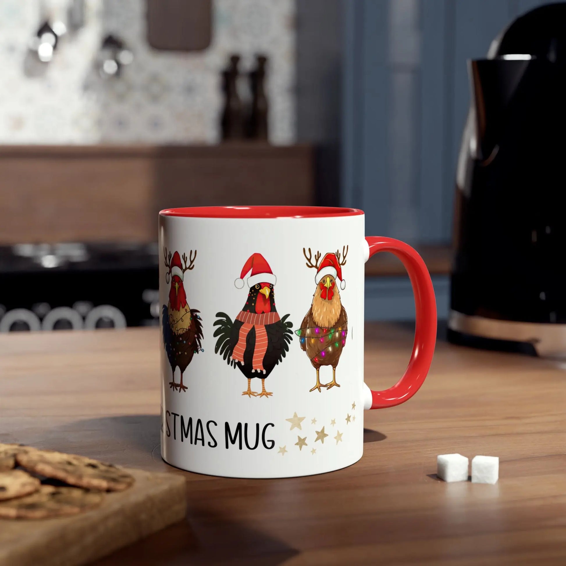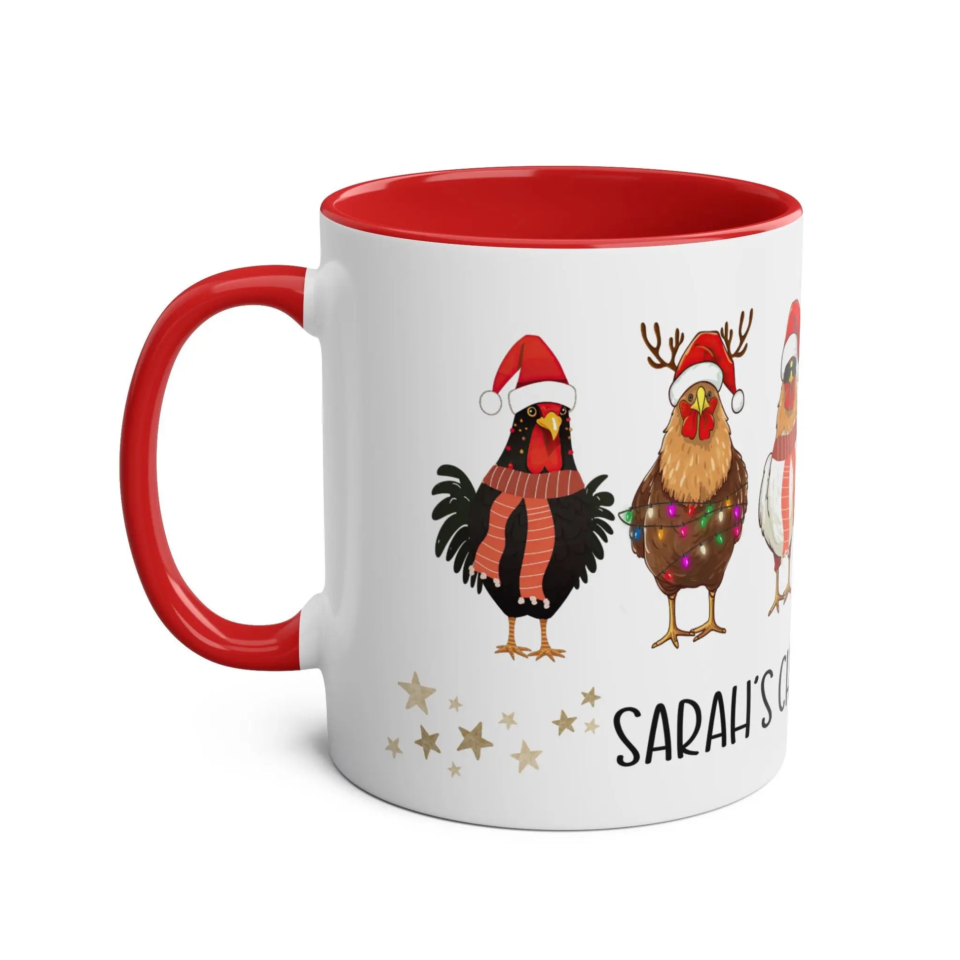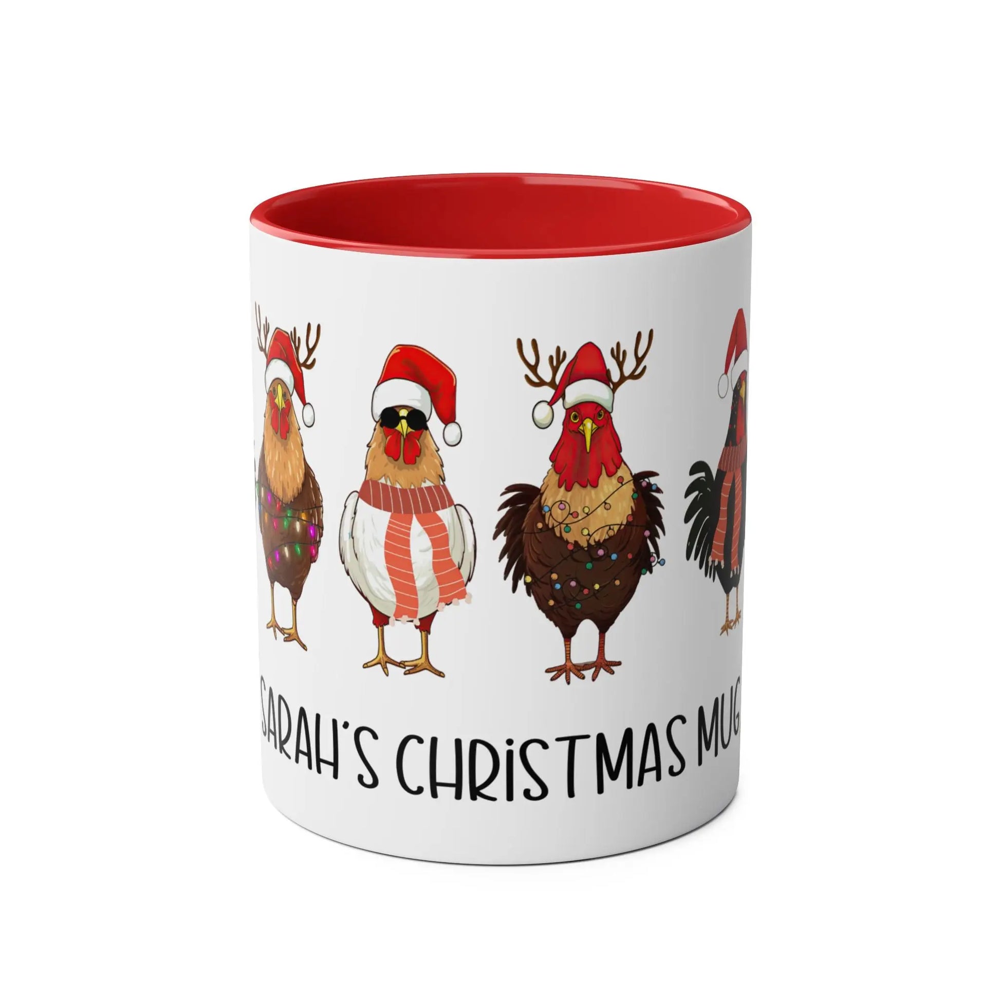 Funny Christmas Mug Personalised Red Christmas Chickens