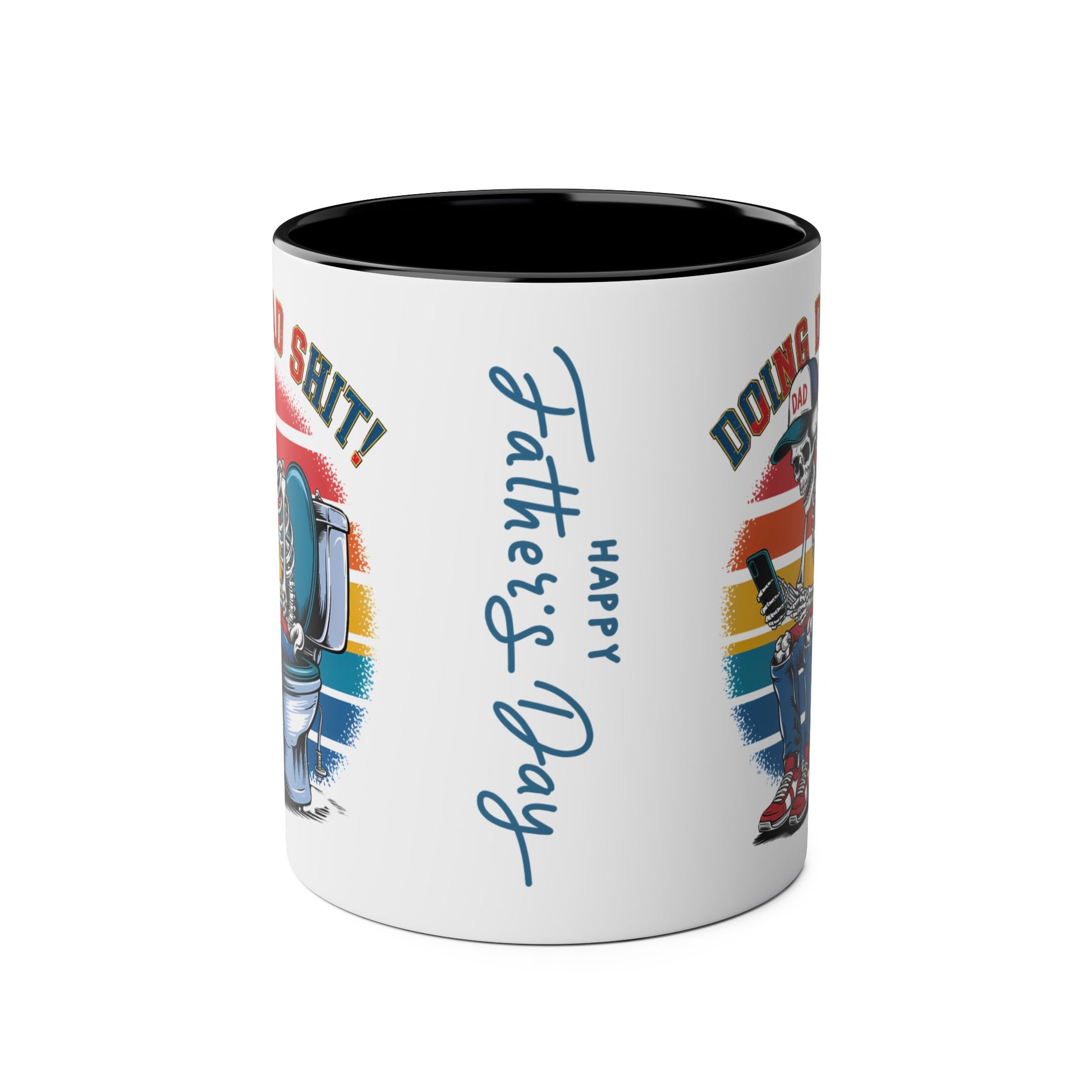 Celebrate the dad in your life with our Funny Fathers Day Mug! Featuring a humorous "Doing Dad Shit" design with a cool skeleton, this mug is the perfect way to show your appreciation. Made of durable ceramic and holds up to 11 ounces of their favorite hot beverage. Order now for a guaranteed smile!