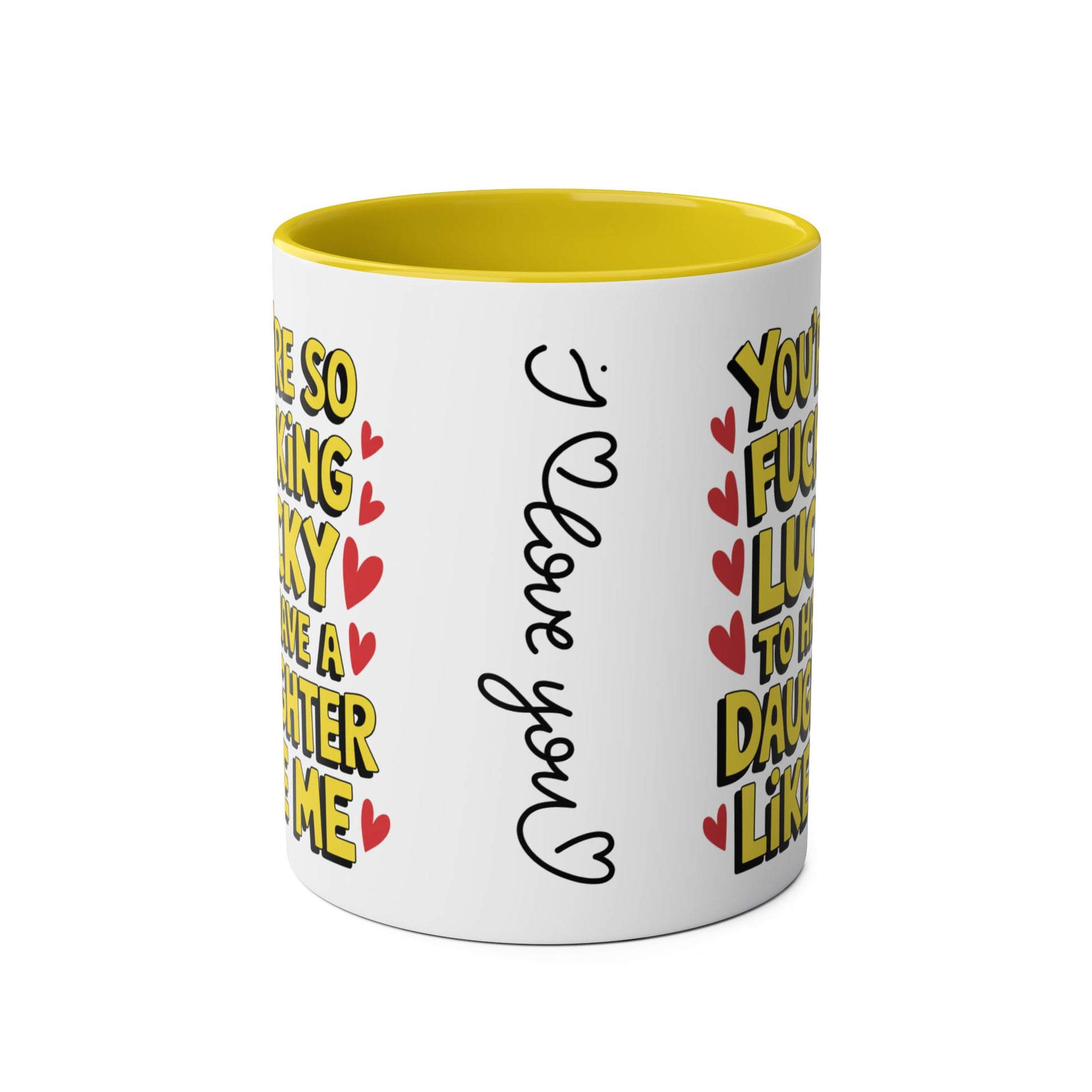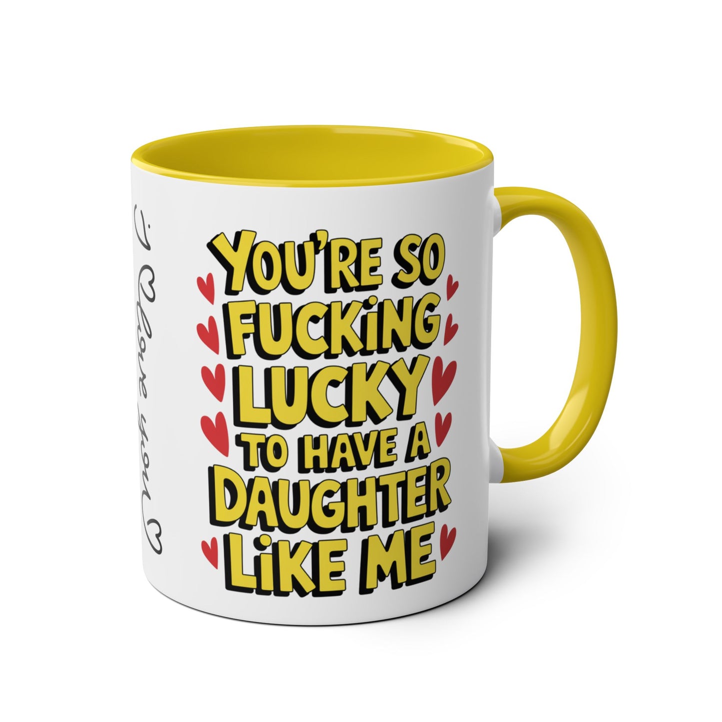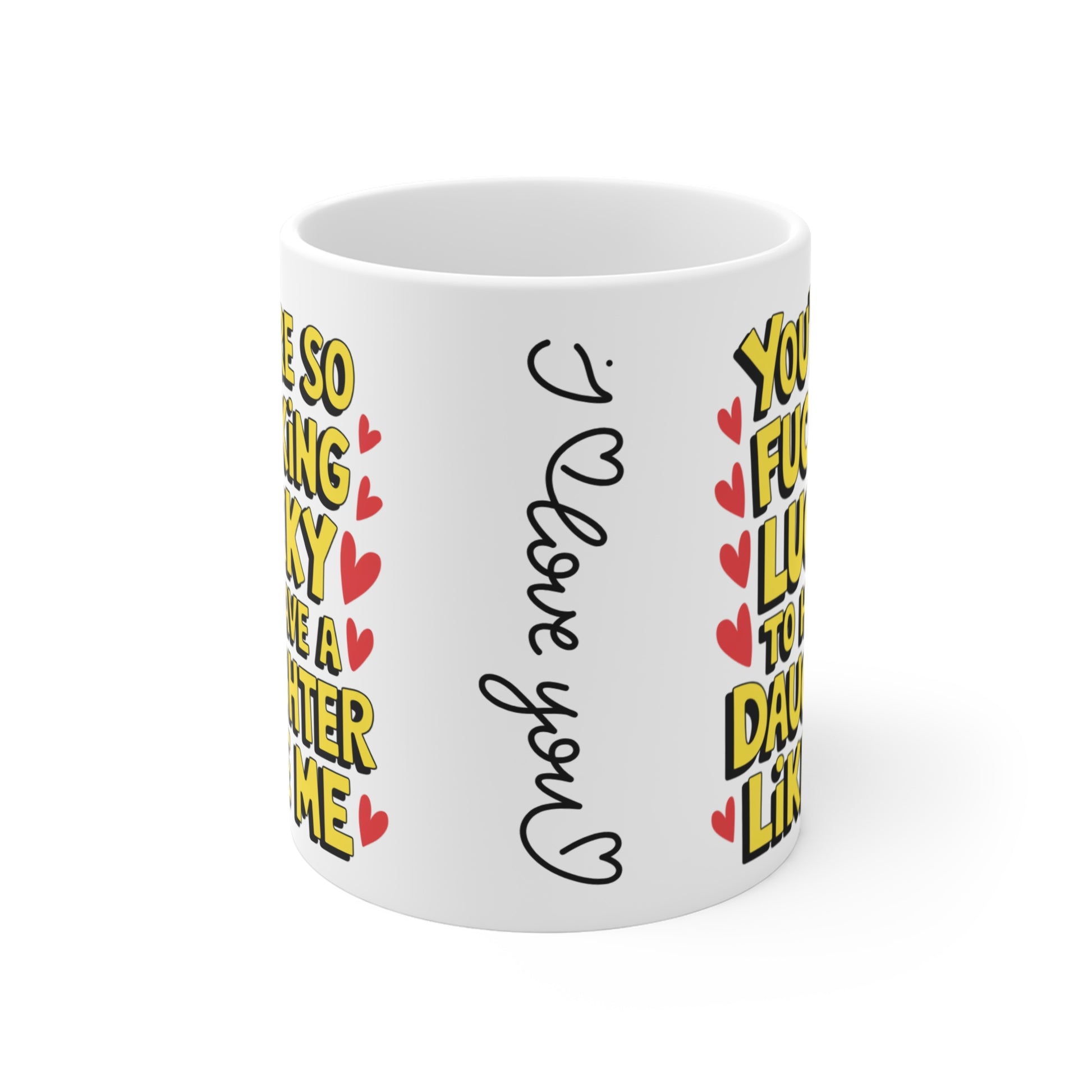 Funny Fathers Day Mug, Make Dad's day with this hilarious mug! Perfect for Father's Day, it features the phrase "Your Fucking Lucky To Have A Daughter Like Me" in bold letters, reminding him just how lucky he is to have you. Guaranteed to bring a smile to his face every morning!