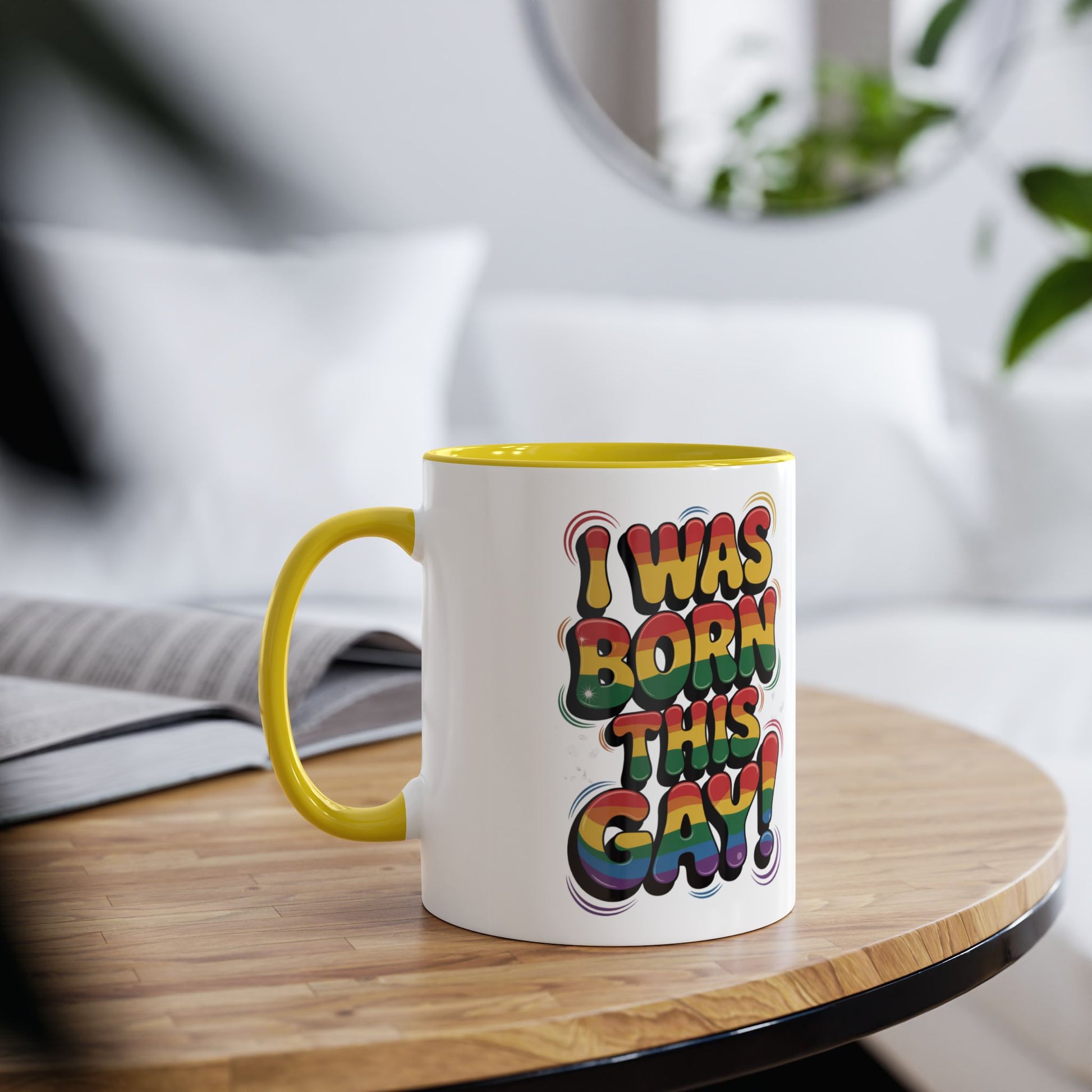 Celebrate your authentic self with this cheeky ceramic mug that proudly declares "I Was Born This Gay." Perfect for morning coffee, afternoon tea, or just making your coworkers smile. This playful pride accessory makes a fabulous gift for coming out celebrations, pride month, or just because fabulousness deserves to be displayed daily!