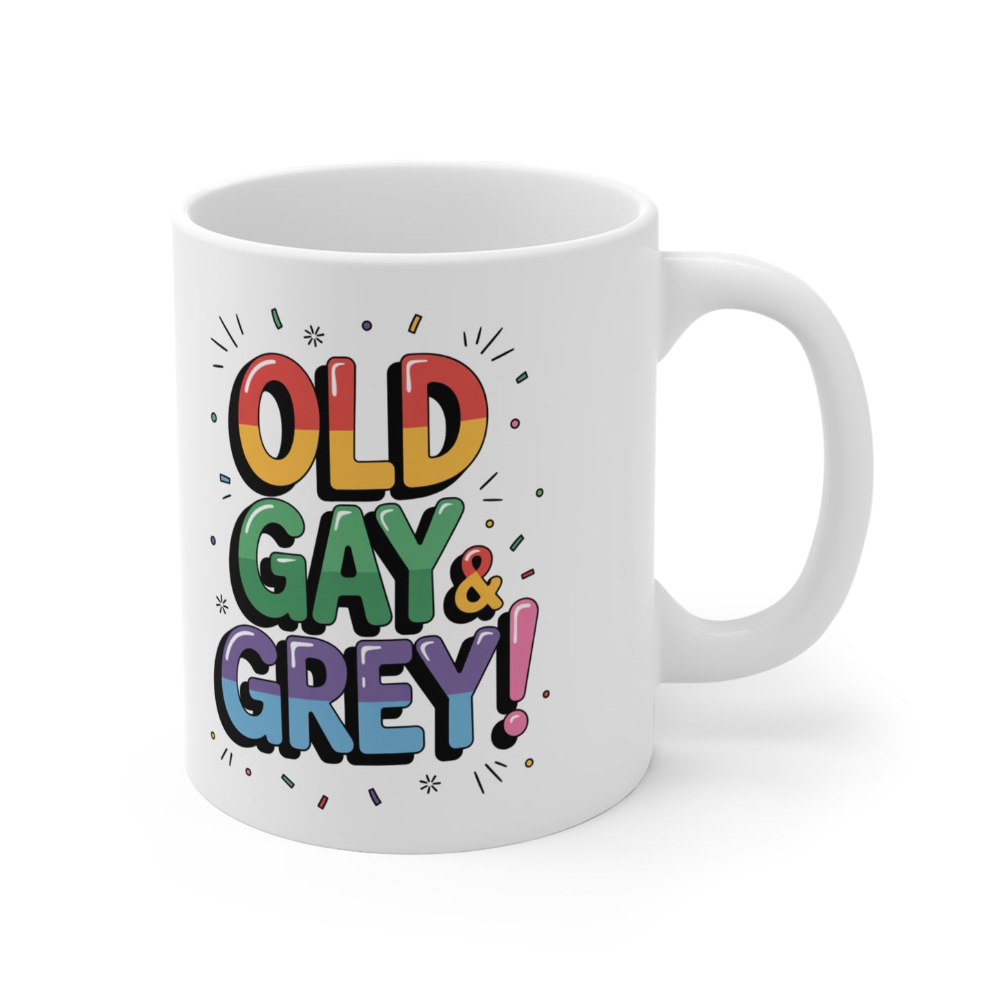 Embrace your fabulous journey with our "Old Gay & Grey" mug! Perfect for the LGBTQ+ legend who's aging like fine wine and proud of every silver strand. This cheeky ceramic companion turns morning coffee into a celebration of living authentically – wrinkles, wisdom, and all the rainbow-colored memories included!