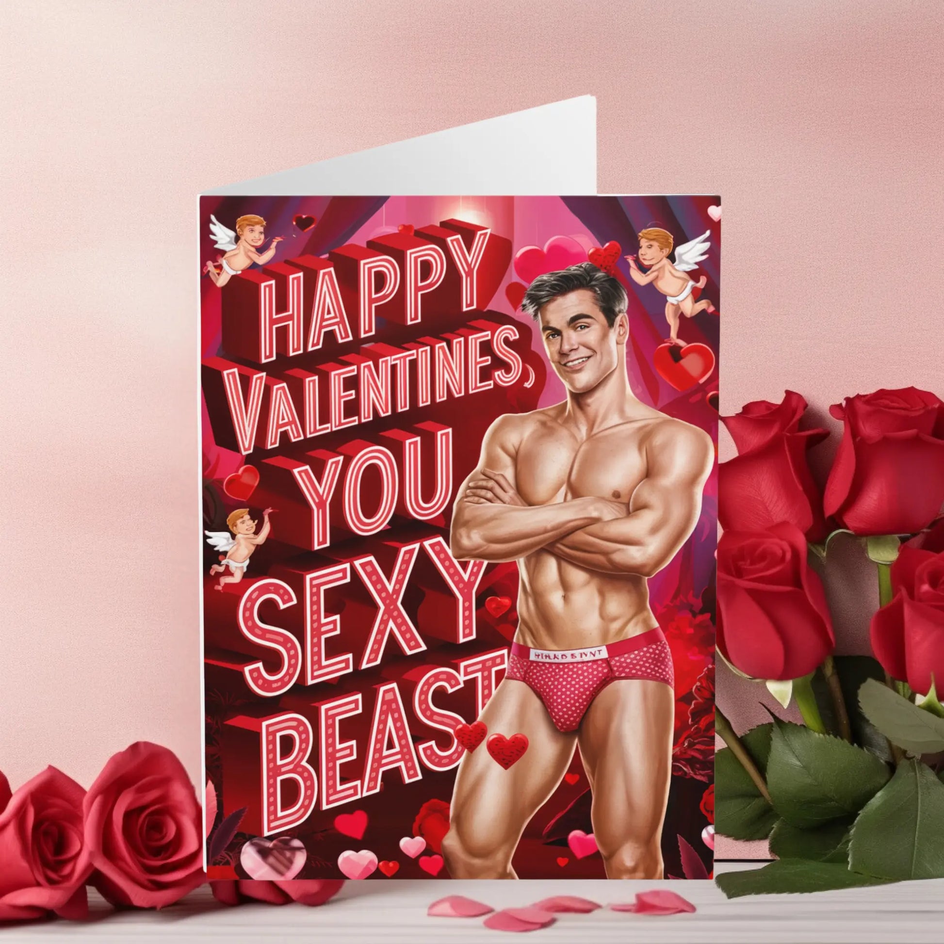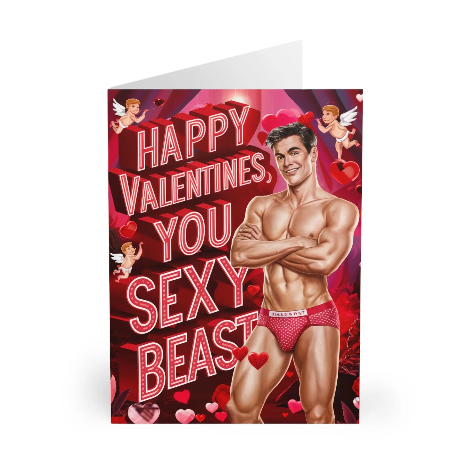 Gay Valentines Day Card. Send some love to your favourite sexy beast with this Funny Gay Valentine's Day card. Let them know they're truly a rare and special catch, with a playful and quirky tone that'll have them smiling all day (and night) long!