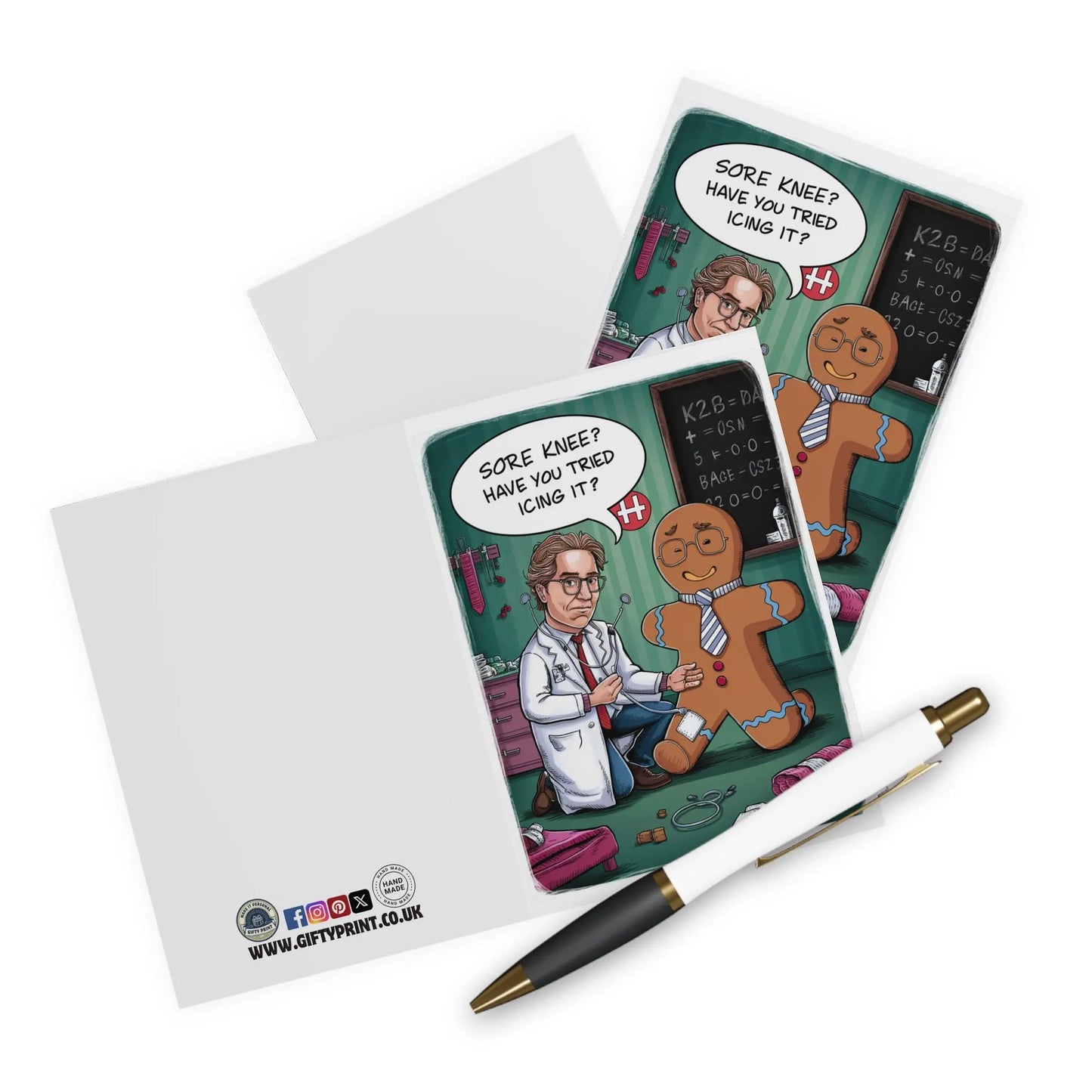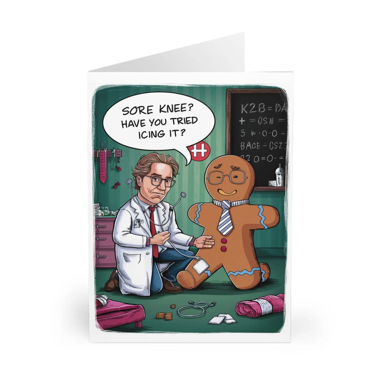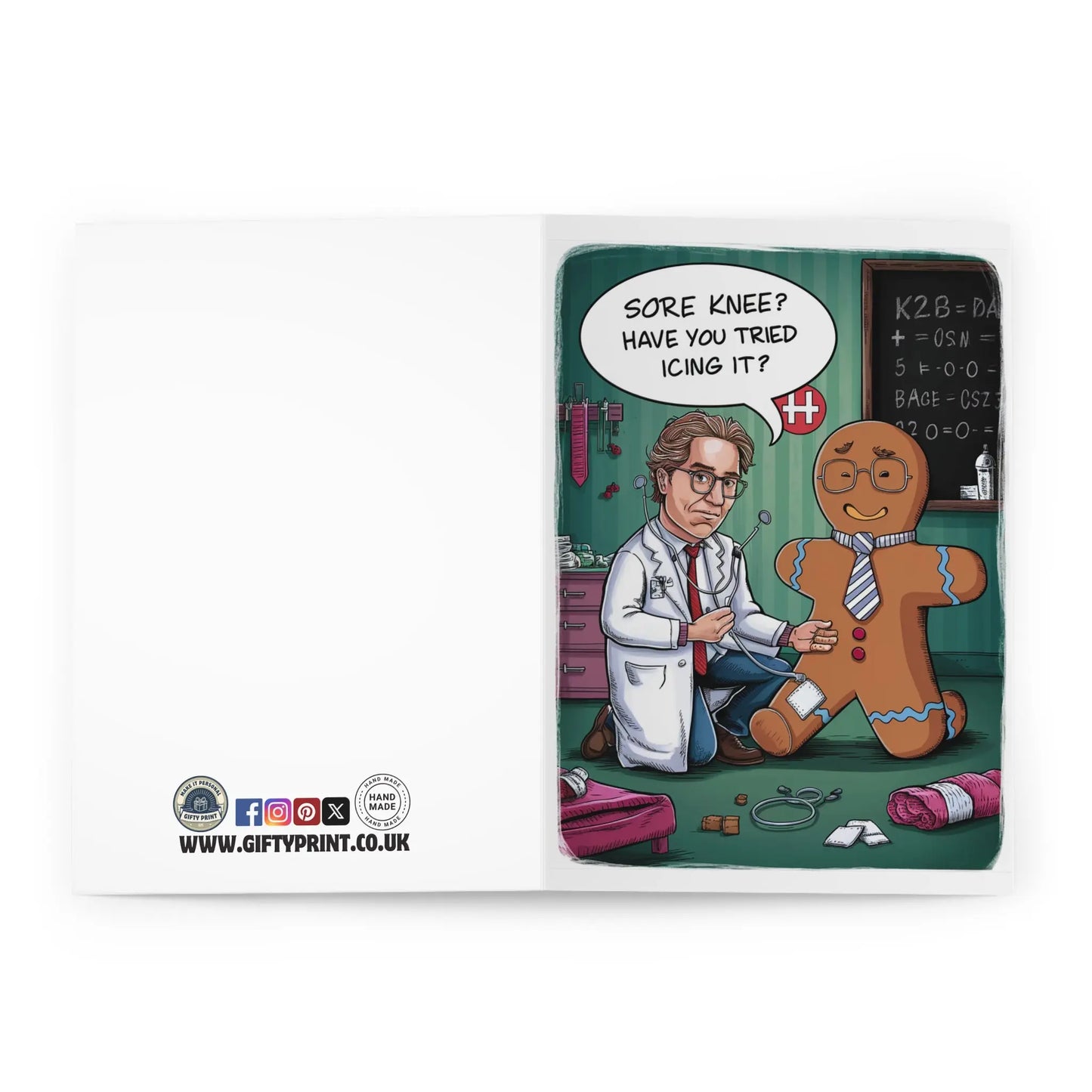Funny Get Well Soon Card Ginger Bread Man Sore Knee Tried Icing It