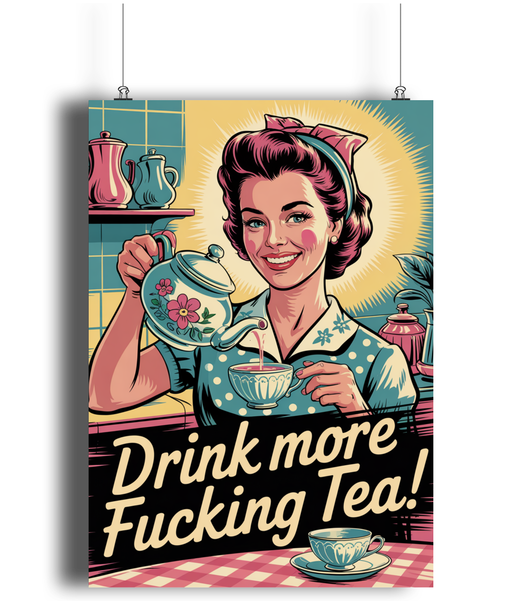 Funny Kitchen Wall Art Drink More Fucking Tea