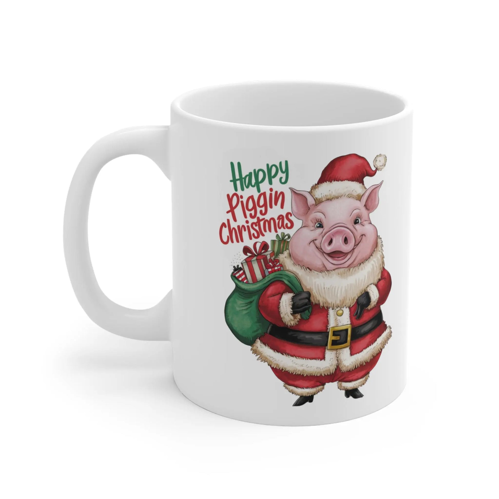Funny Pig Christmas Mug, Get ready to snort with laughter this holiday season with our Funny Christmas Mug! Featuring a jolly Santa pig and the punny phrase "Happy Piggin Christmas", this mug is sure to bring joy to any pig lover's face. Start your mornings with a smile and a cup of cheer!
