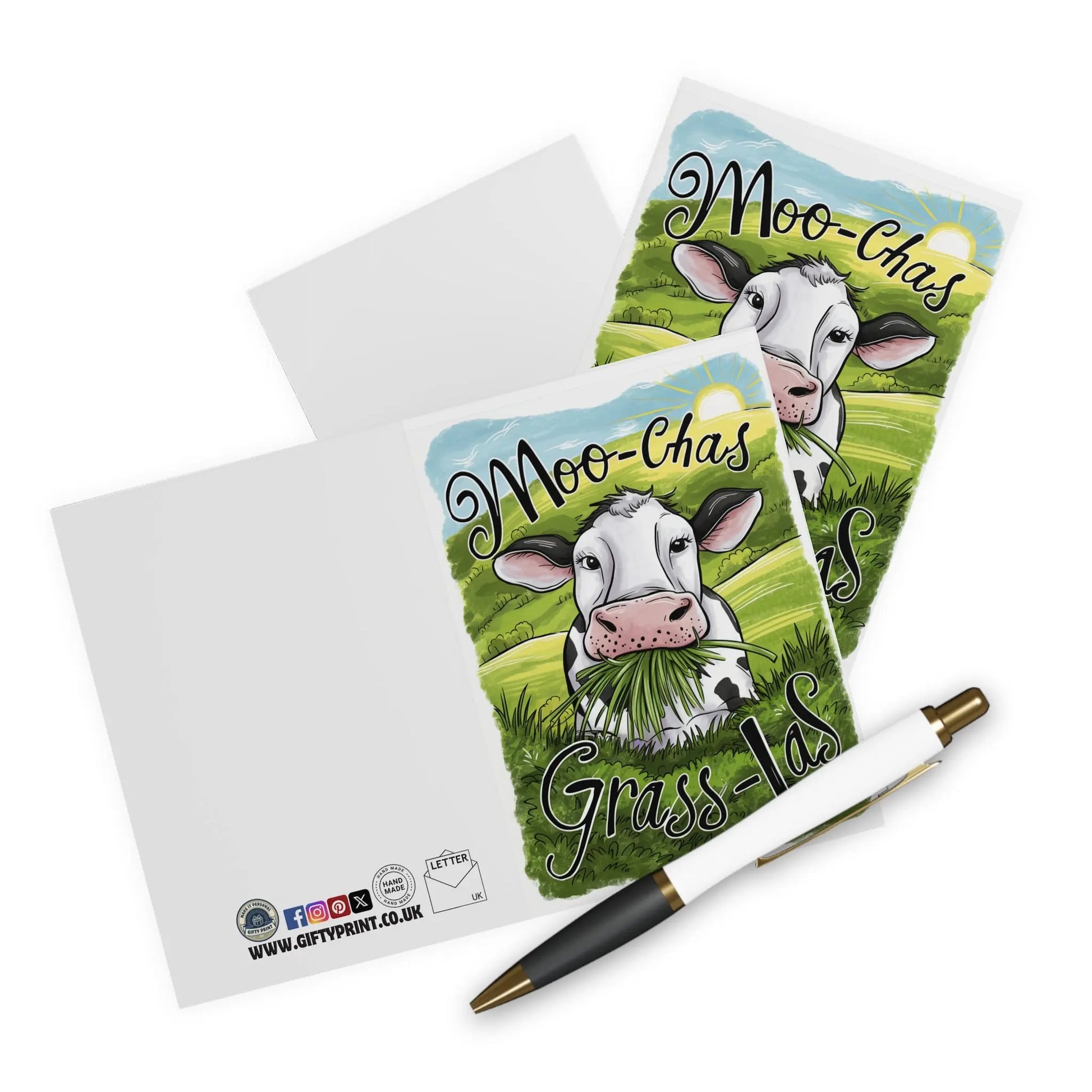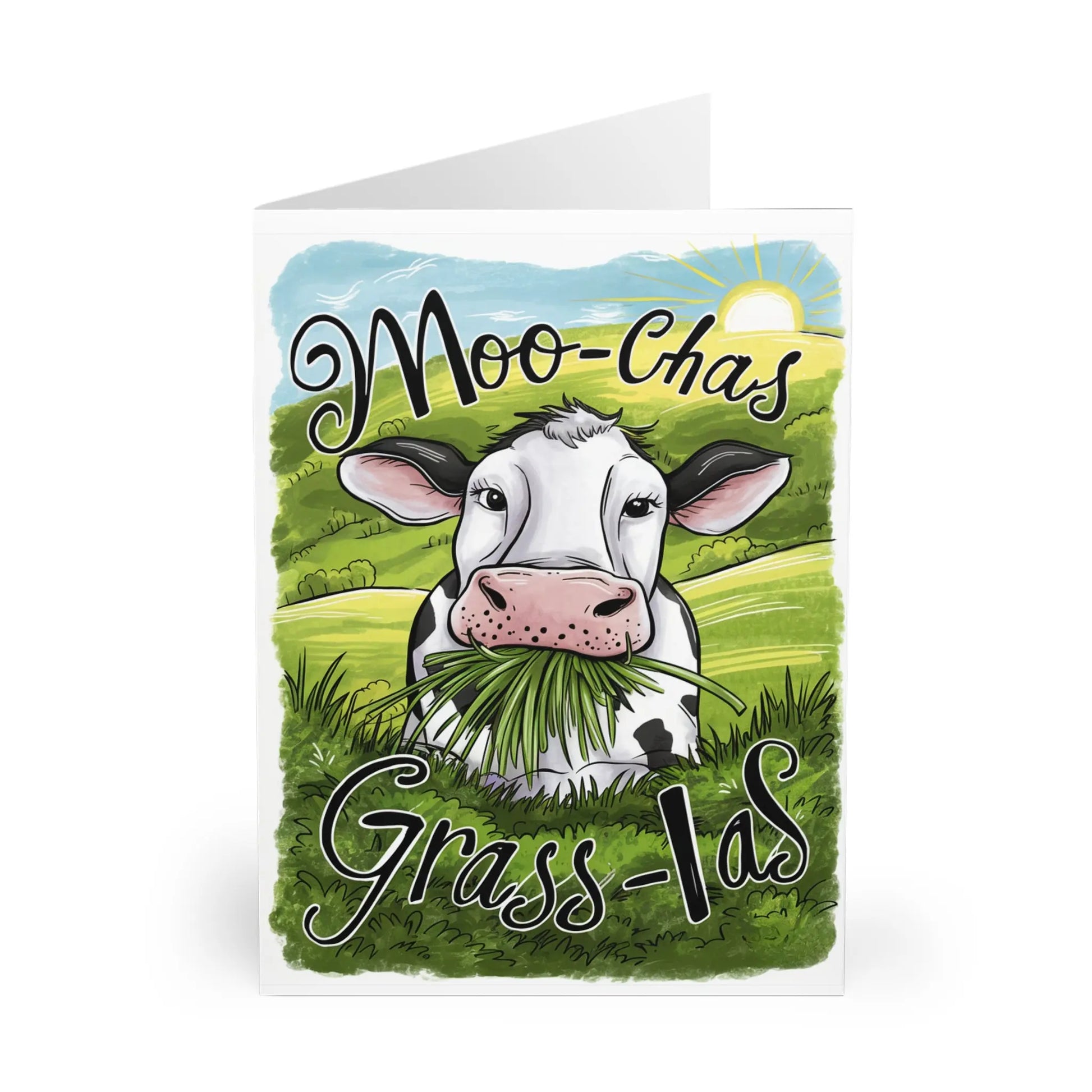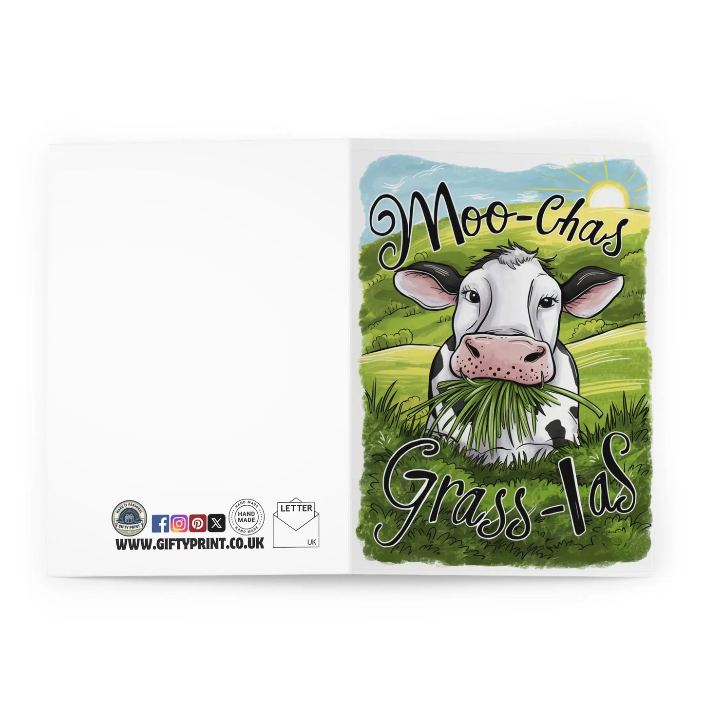 Funny Thank You Card Cow Moo-Chas Grass-Ias